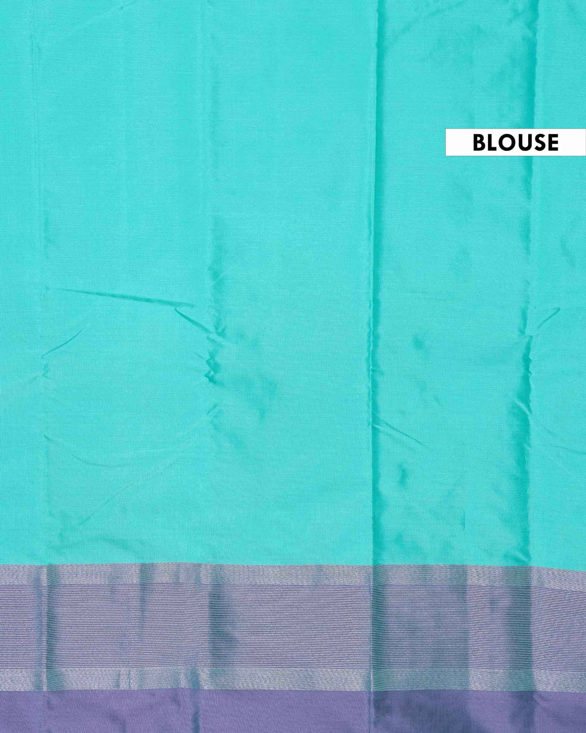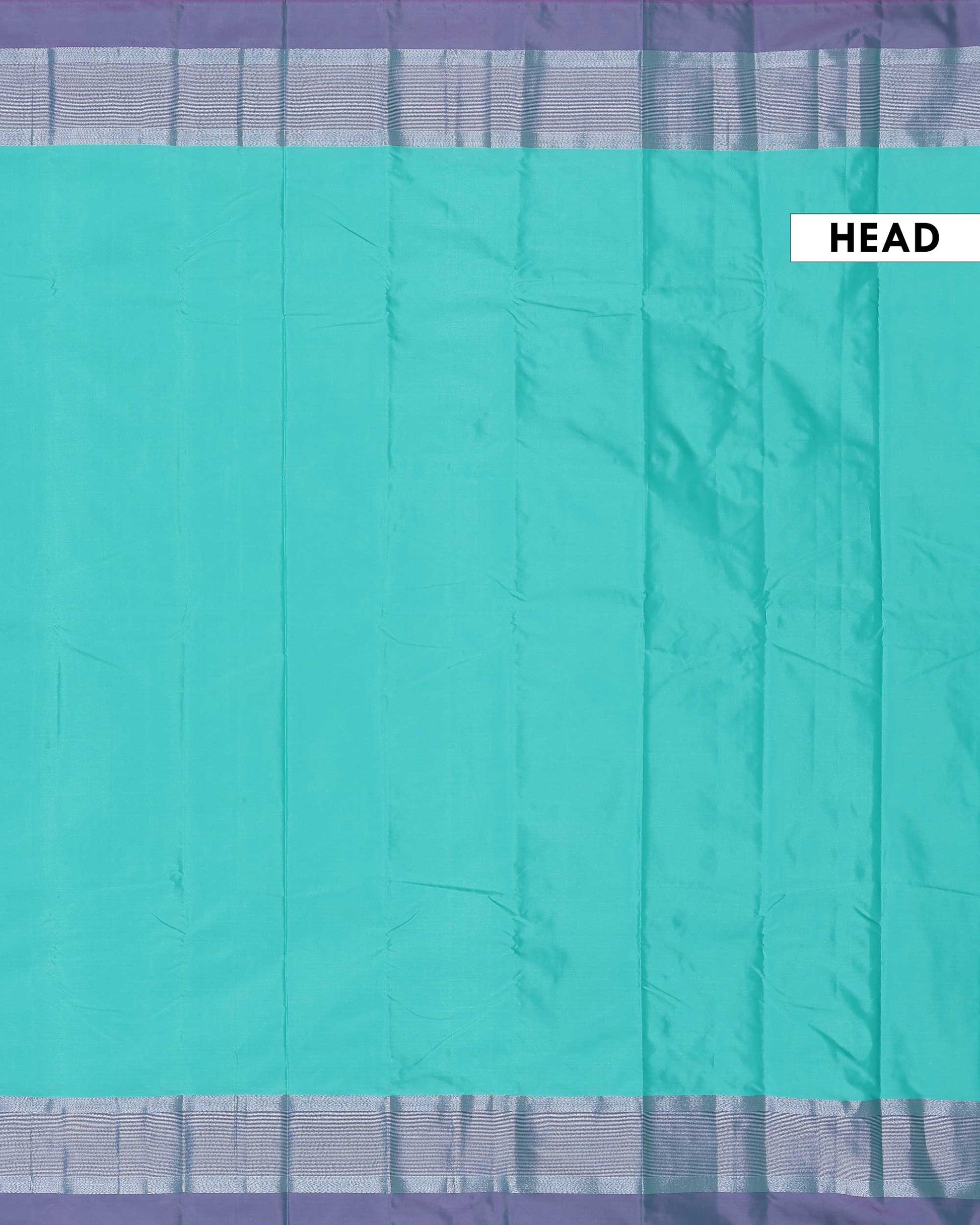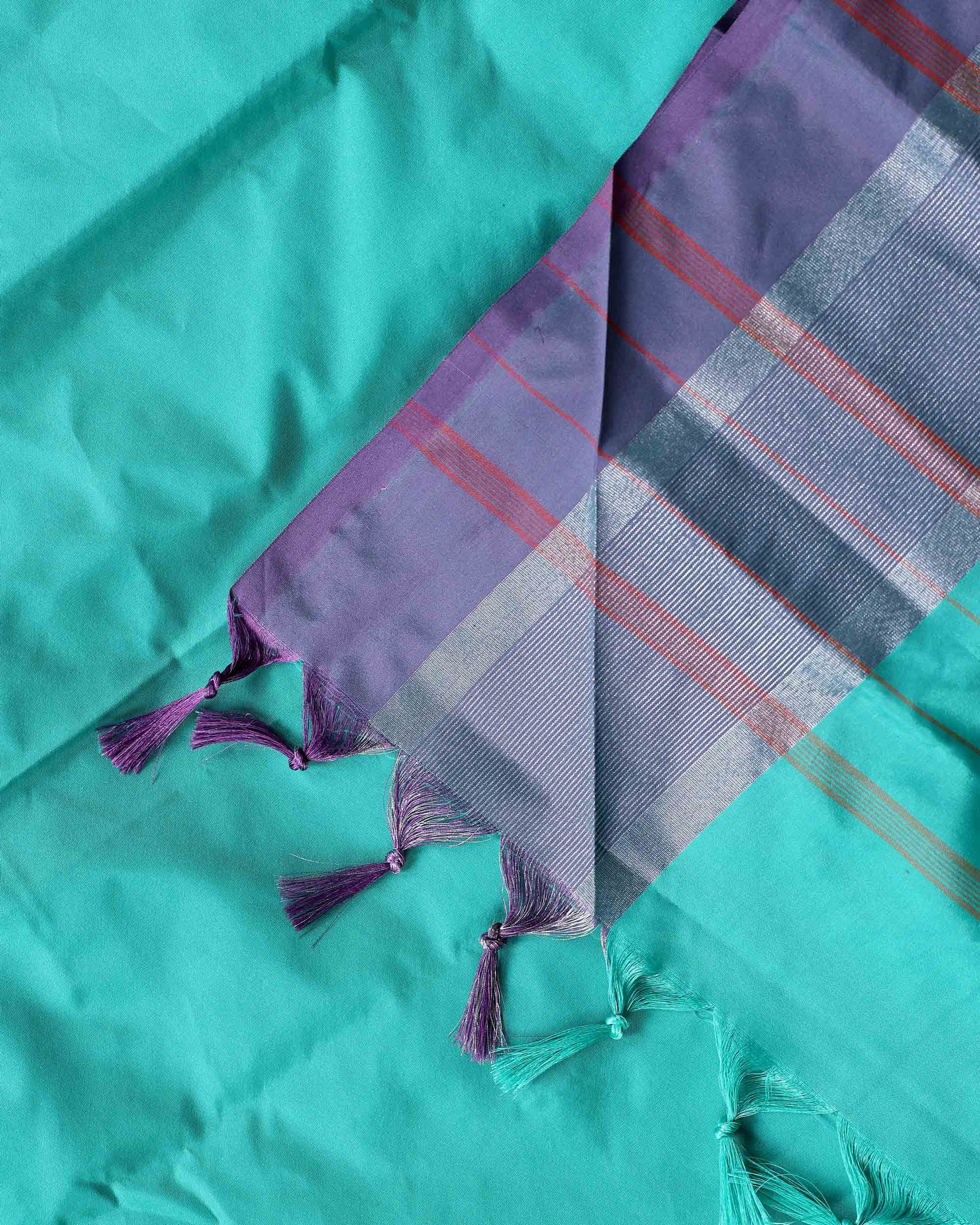Elegant Semi Soft Silk Saree with Plain Body and Contrast Zari Woven Border - Turquoise Blue