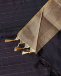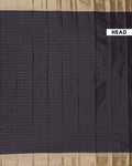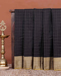 - Discover the elegance of this handwoven black Soft silk saree celebrated for its soft texture and classic check pattern