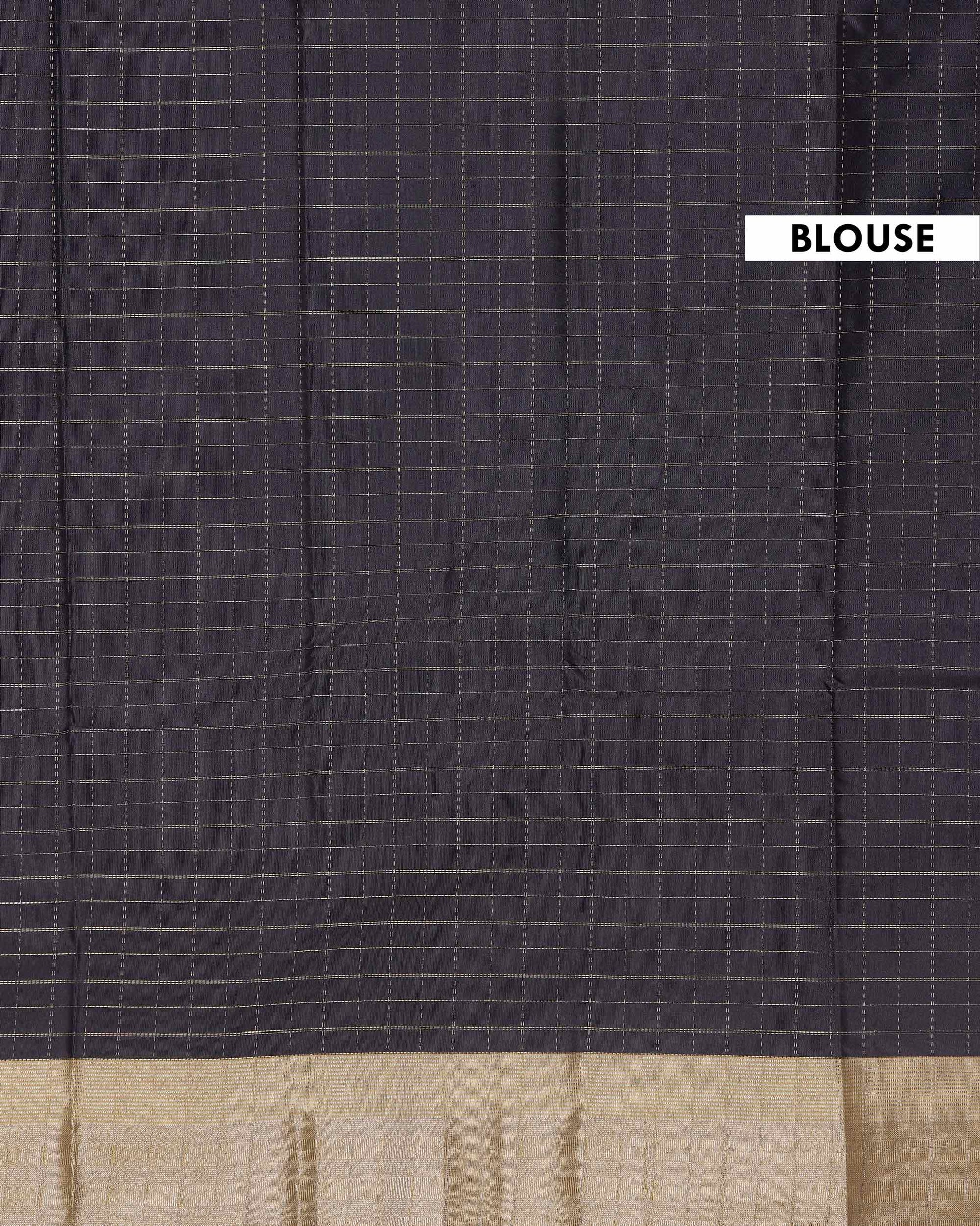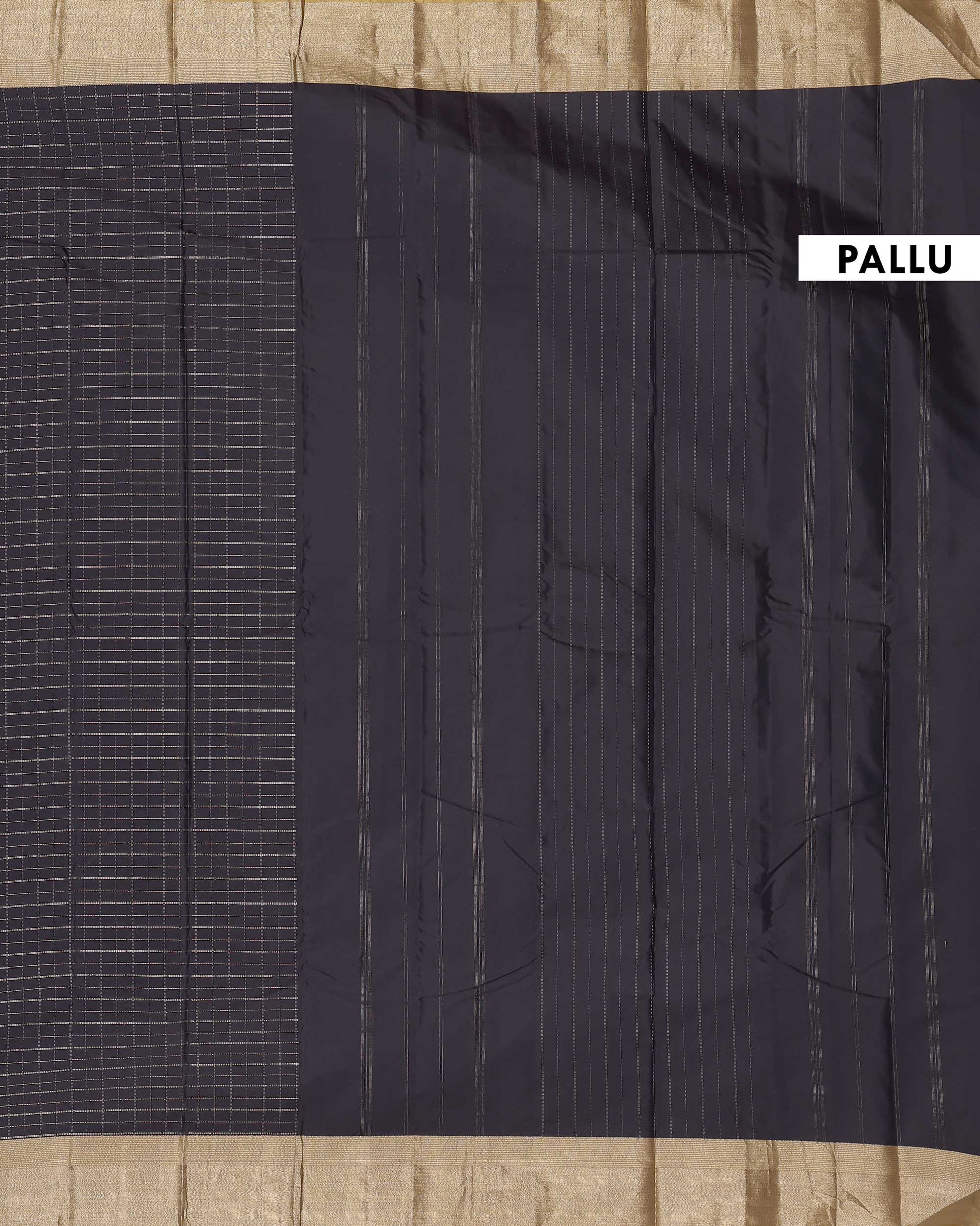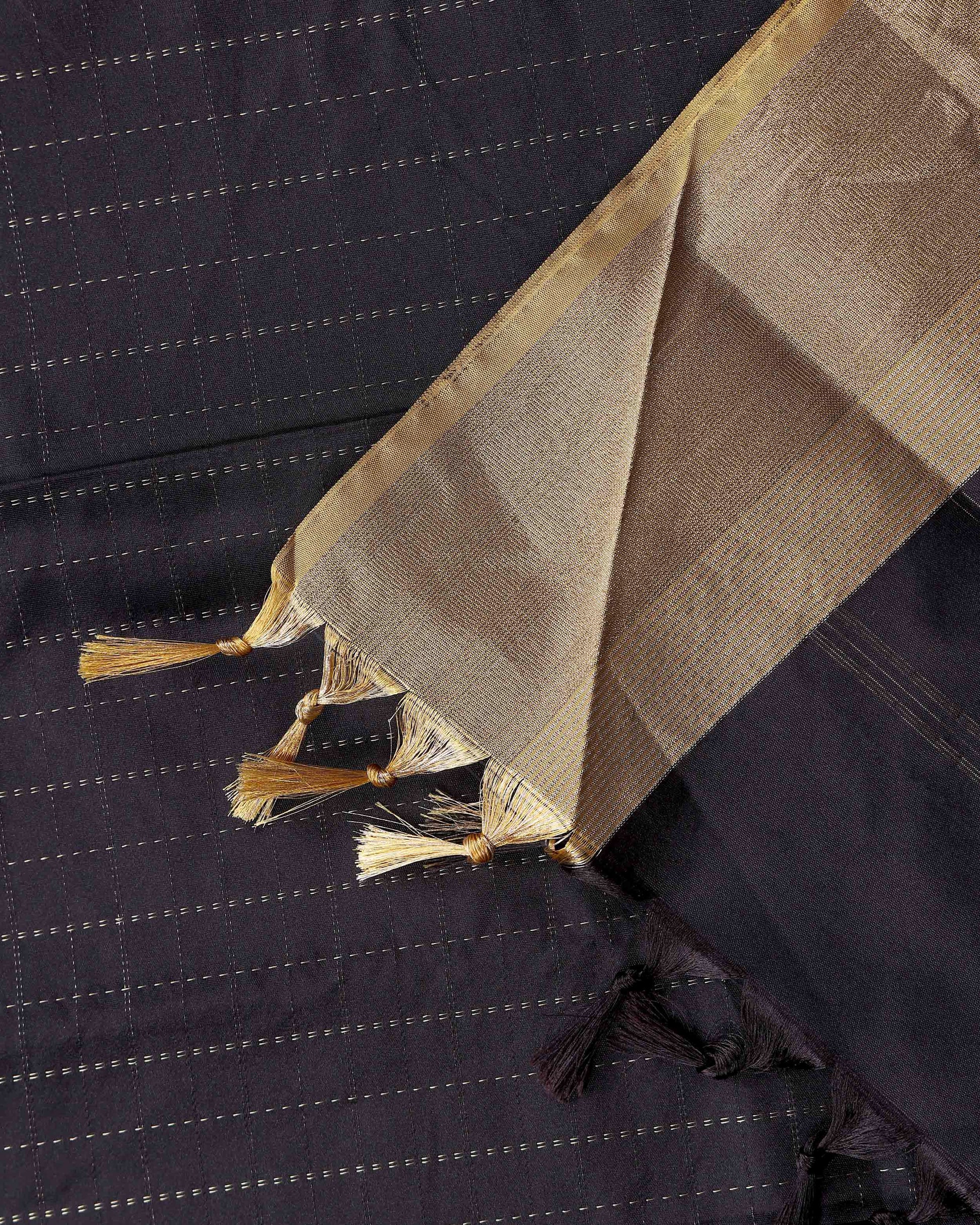 Elegant Semi Soft Silk Saree with Plain Body and Zari Woven Checked Pattern with Classic Contrast Border - Black