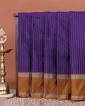 Elegant Semi Soft Silk Saree with Vertical Stripes and Classic Woven Contrast Border - Purple