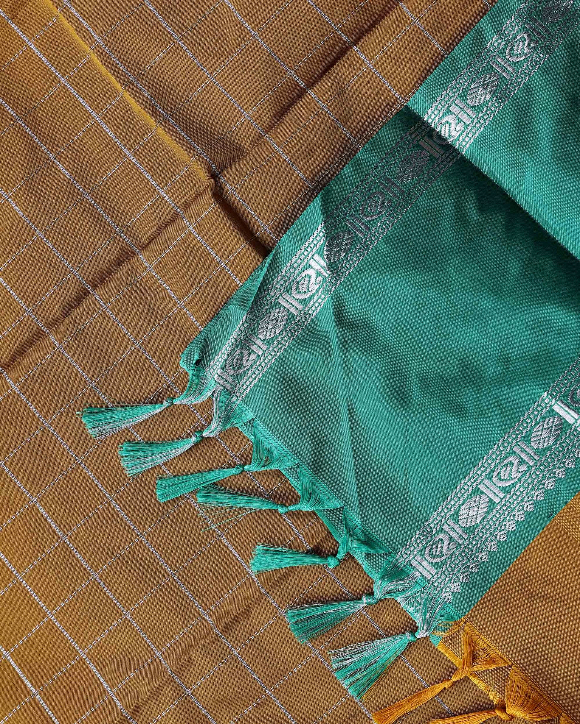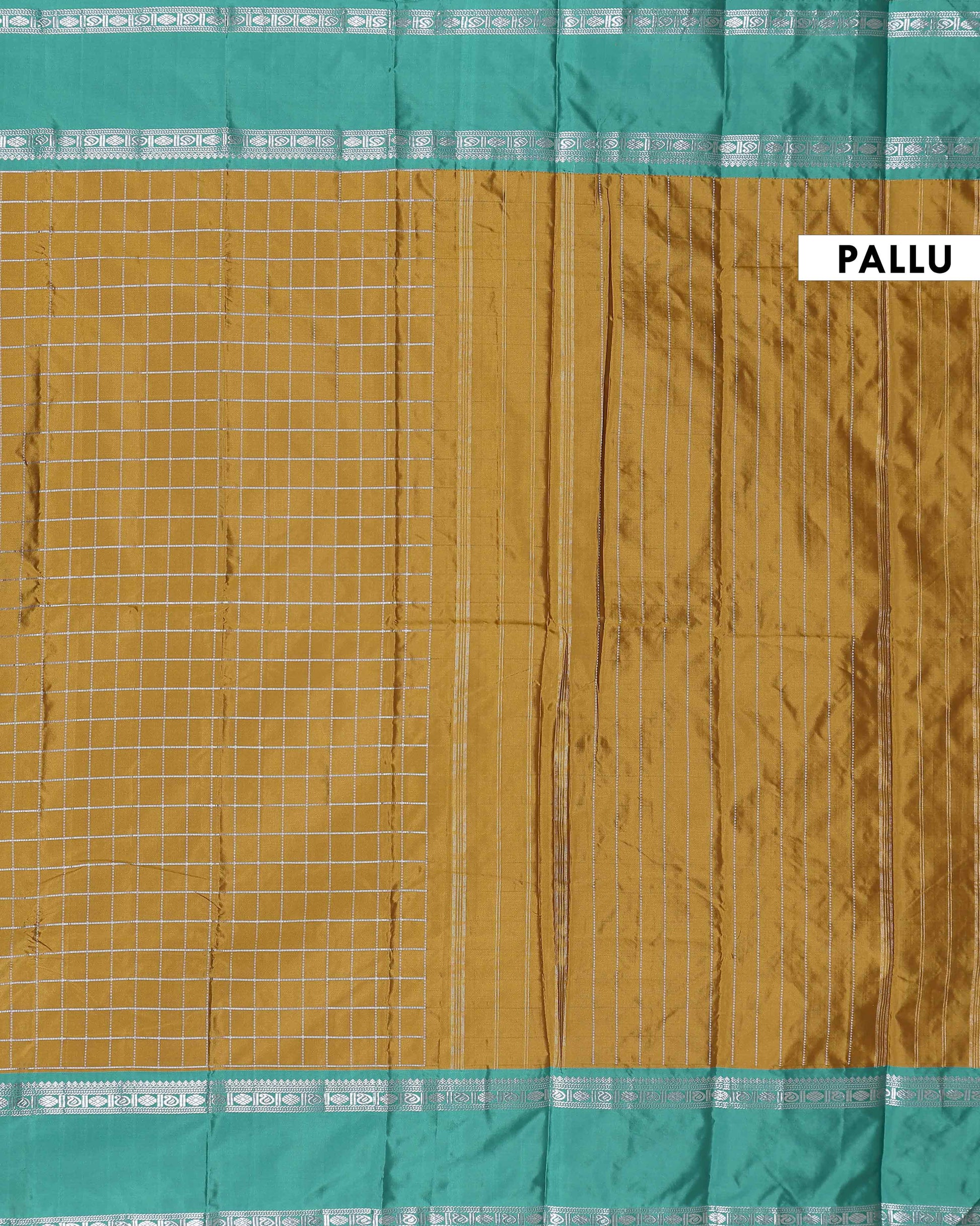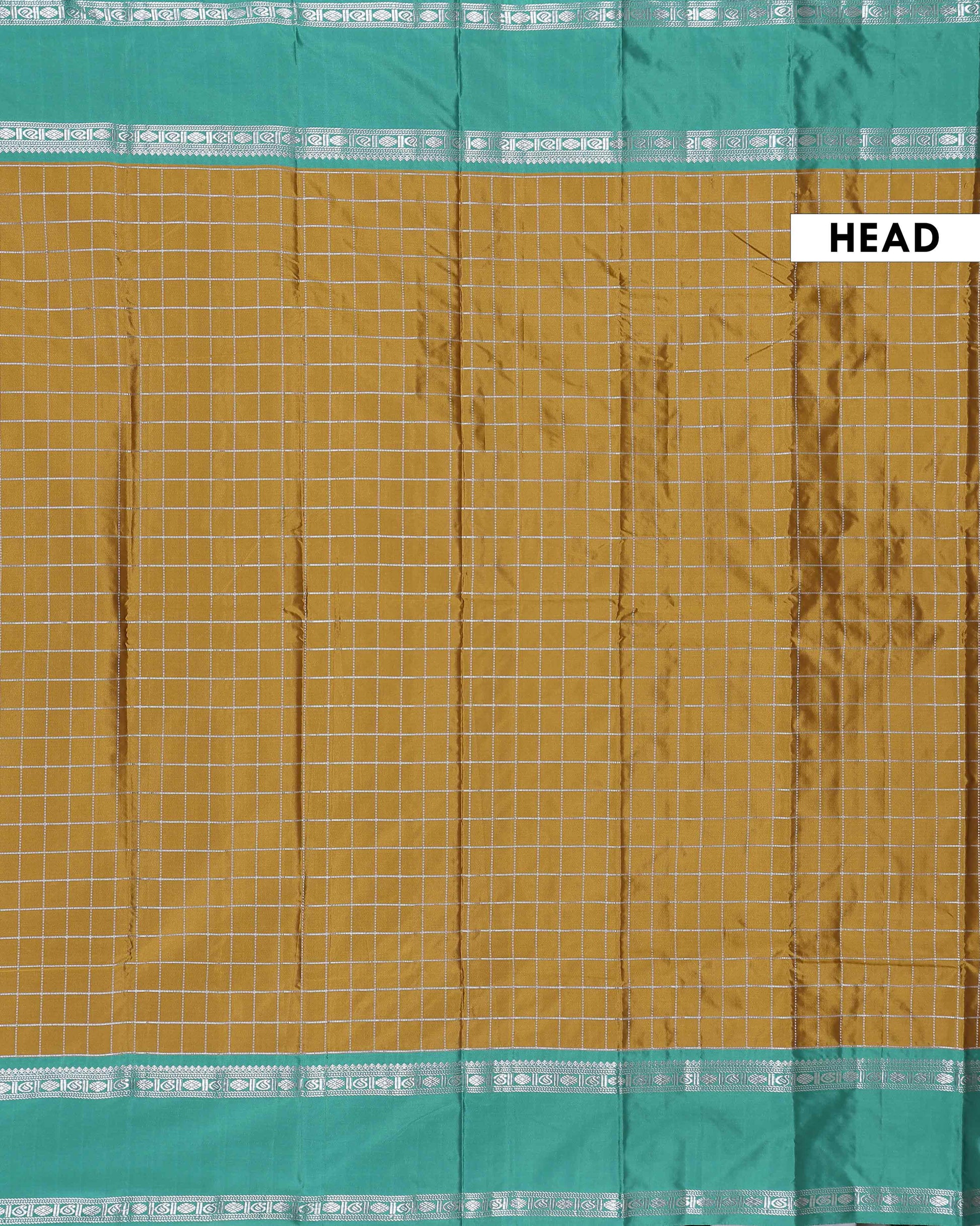 Elegant Semi Soft Silk Saree with Zari Checkered Body and Traditional Silver Zari Woven Contrast Border - Mustard