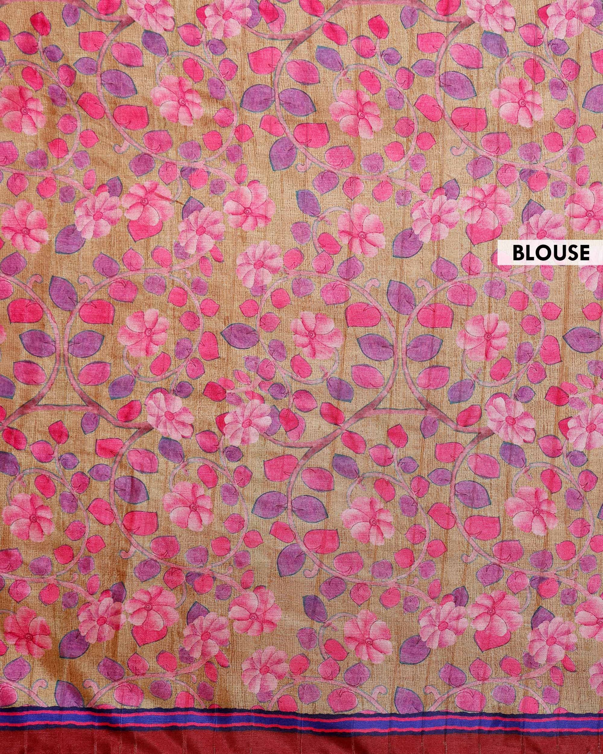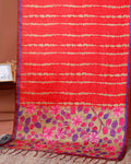 Elegant Semi Tussar Silk Saree with Intricate Floral Patterns and Textured Stripes - Red