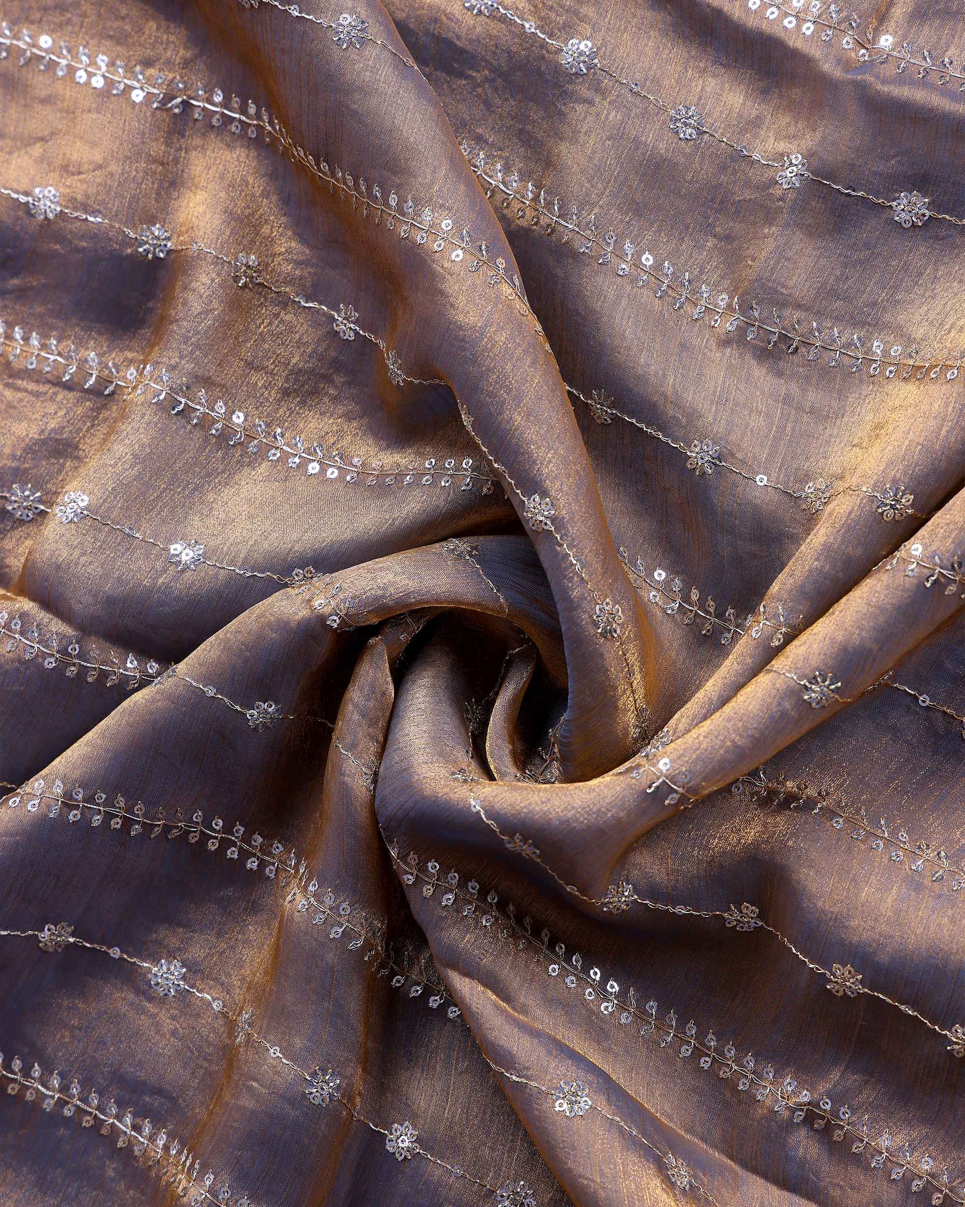 Elegant Sequence Embellished Fancy Saree With a Scalloped Border - Light Brown