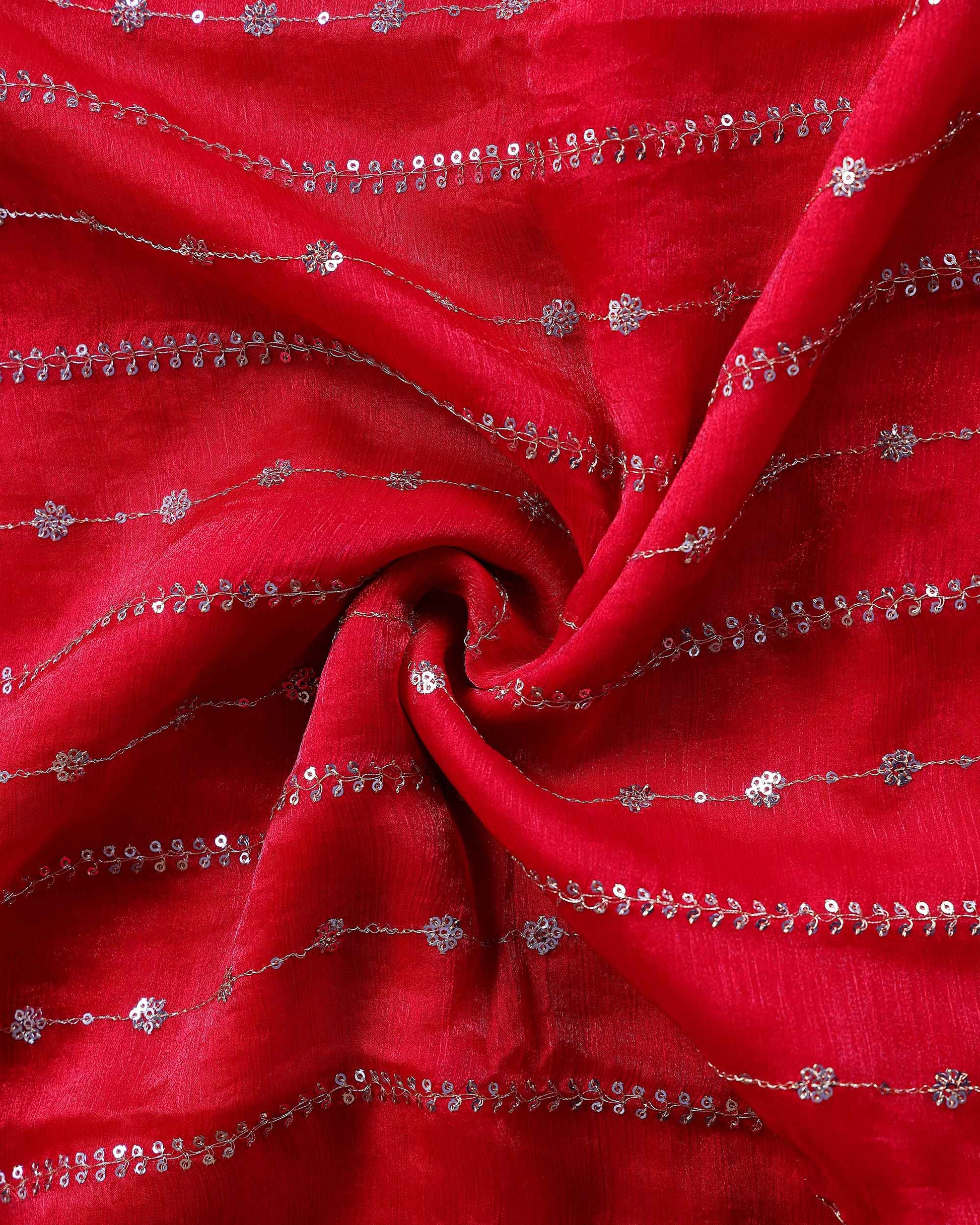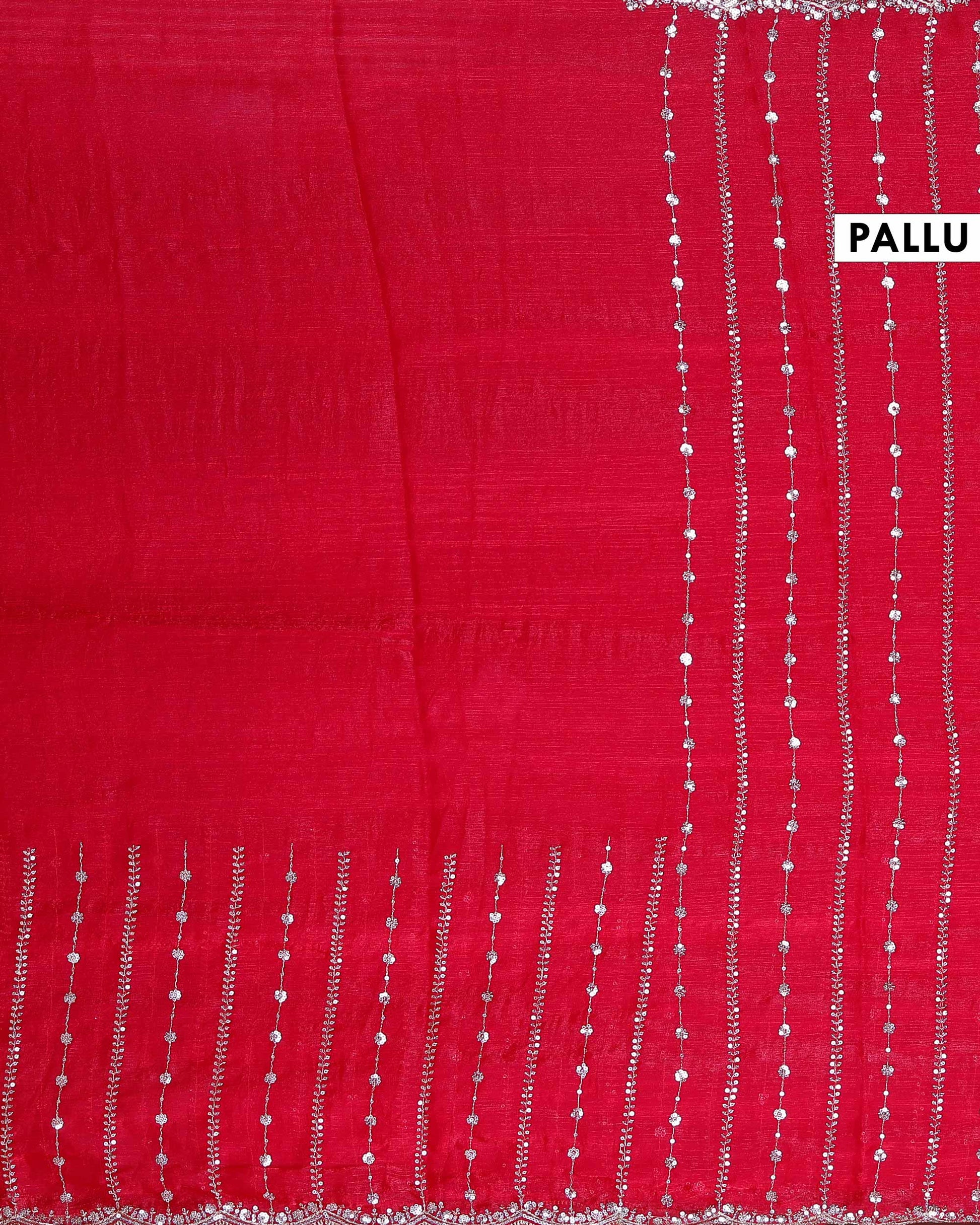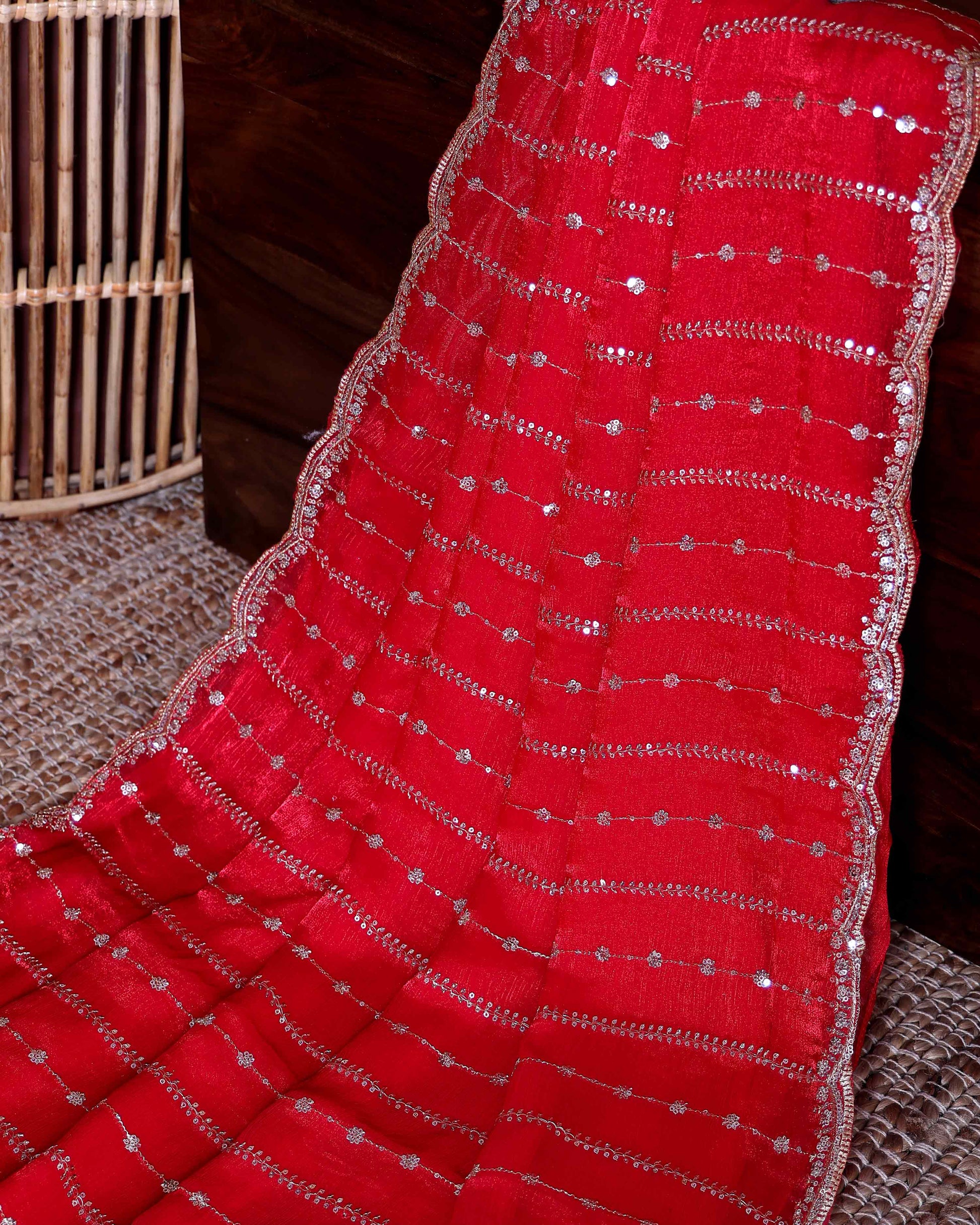 Elegant Sequence Embellished Fancy Saree With a Scalloped Border - Red