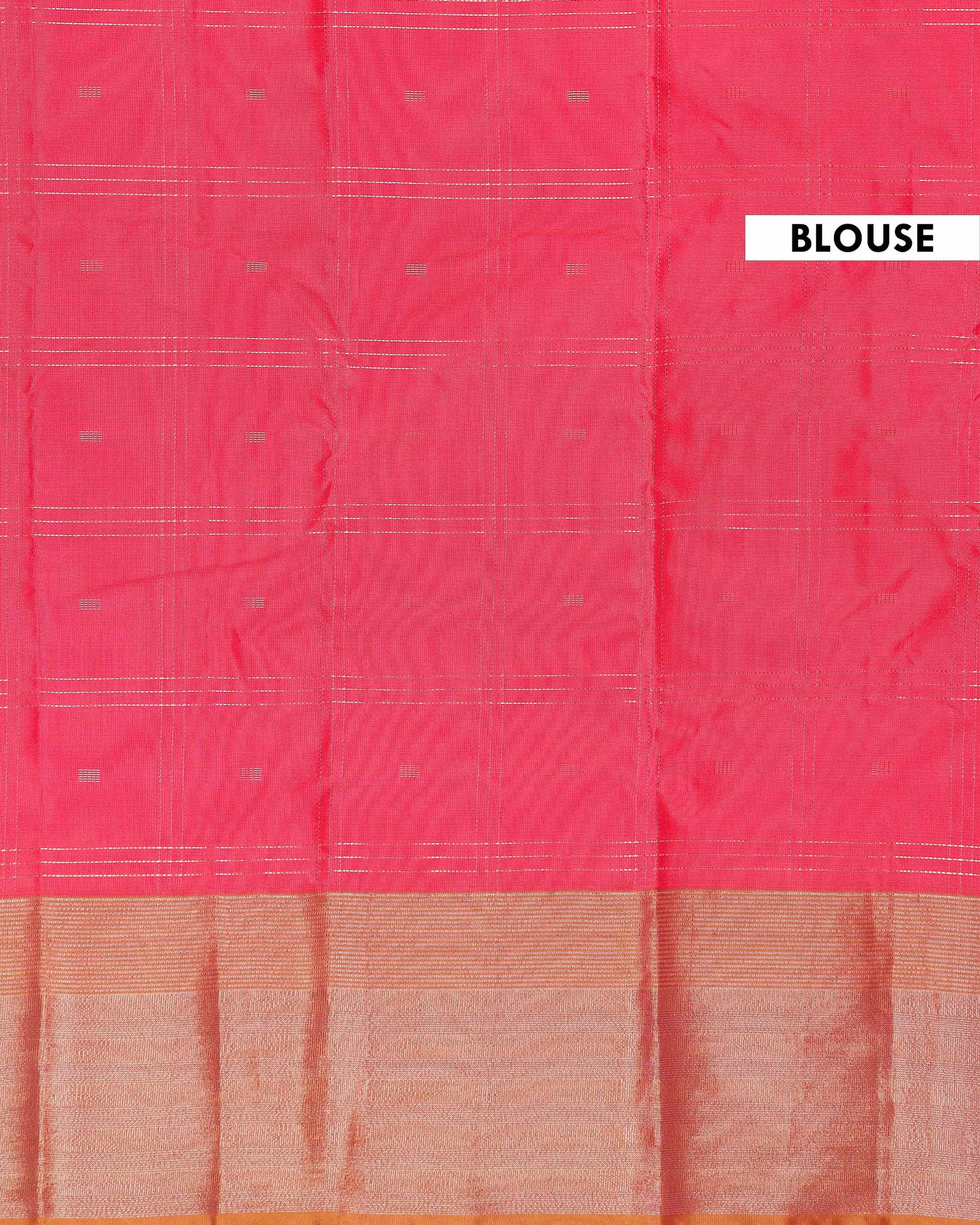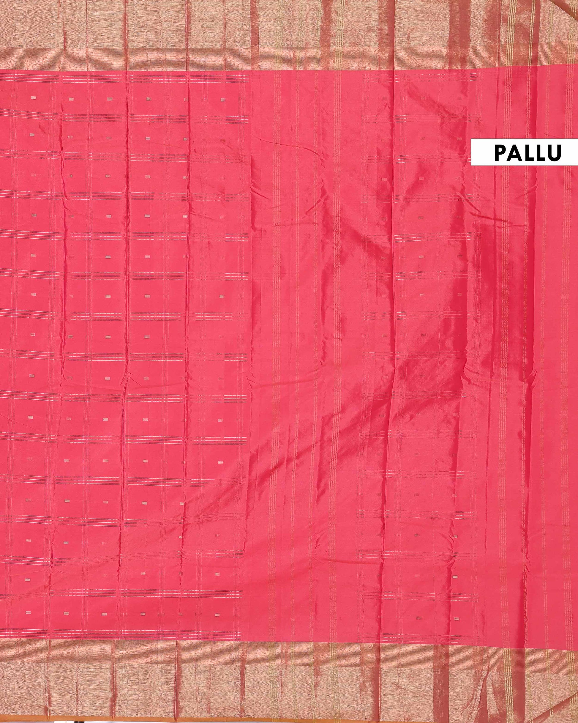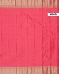 Elegant Soft Silk Saree with Checkered Zari Pattern and Woven Contrast Border - Pink