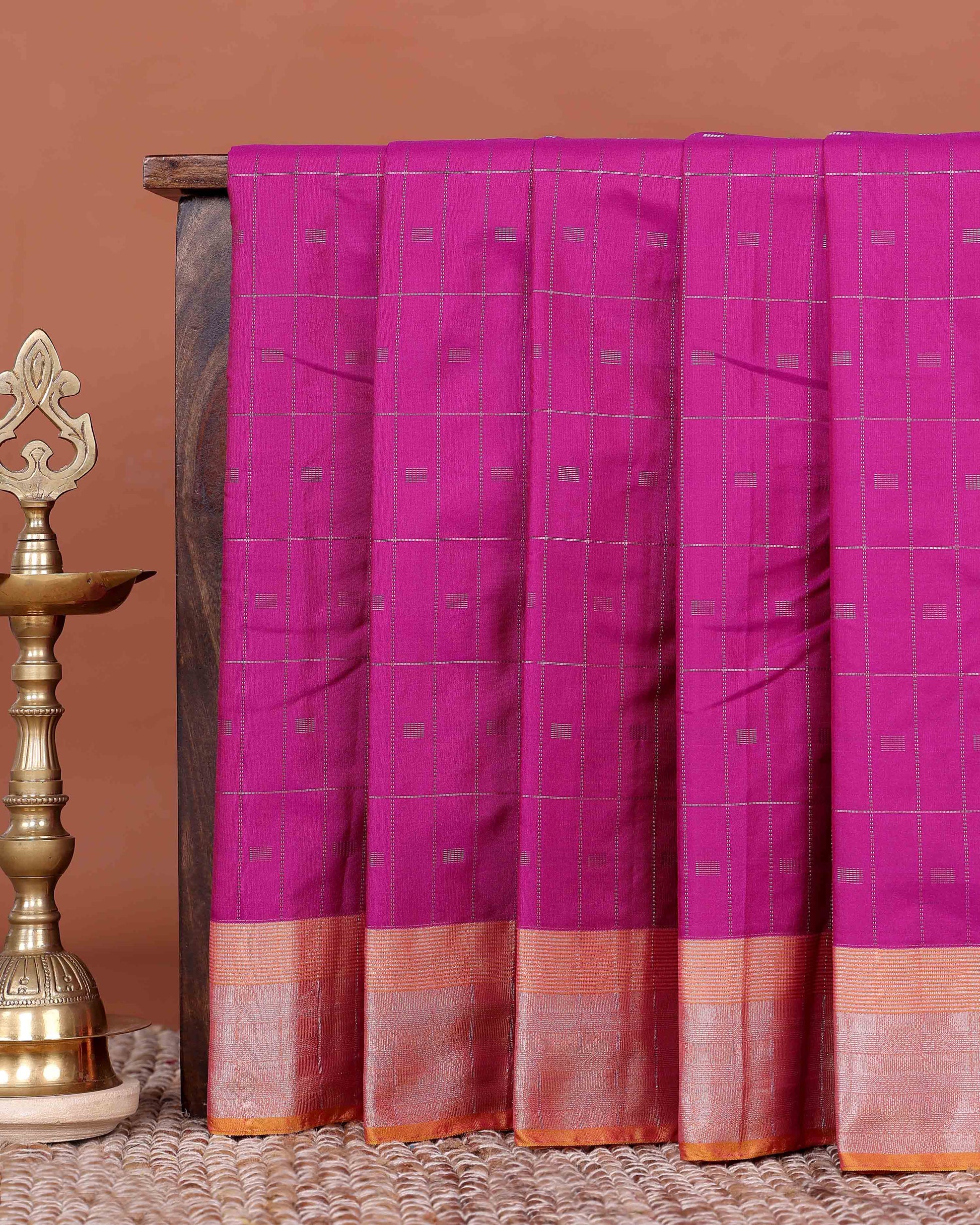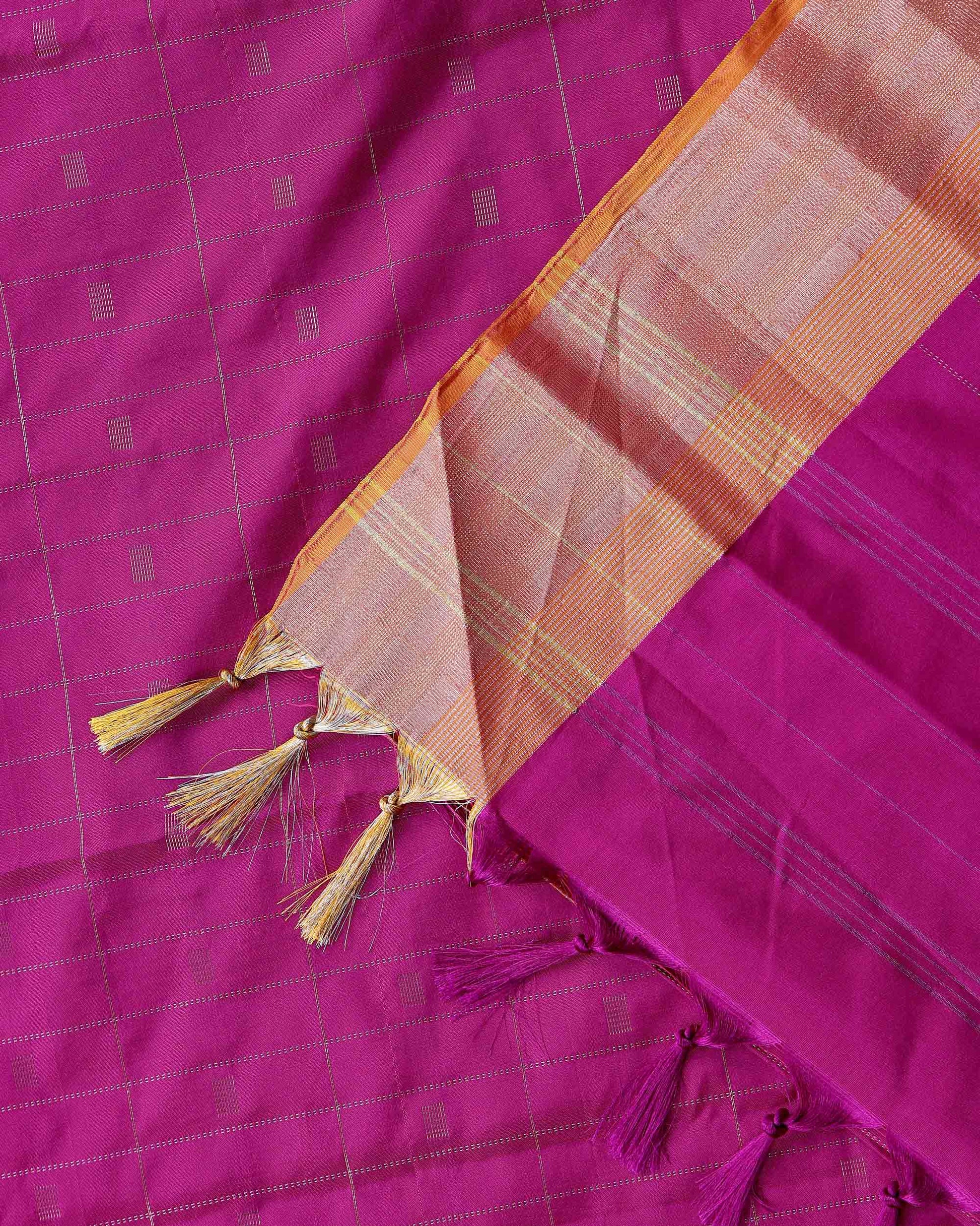 Elegant Soft Silk Saree with Graceful Plain Body and Zari Woven Checked Pattern with Traditional Border - Purple