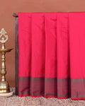 Elegant Soft Silk Saree with Plain Body and Classic Woven Contrast Border - Dark Pink