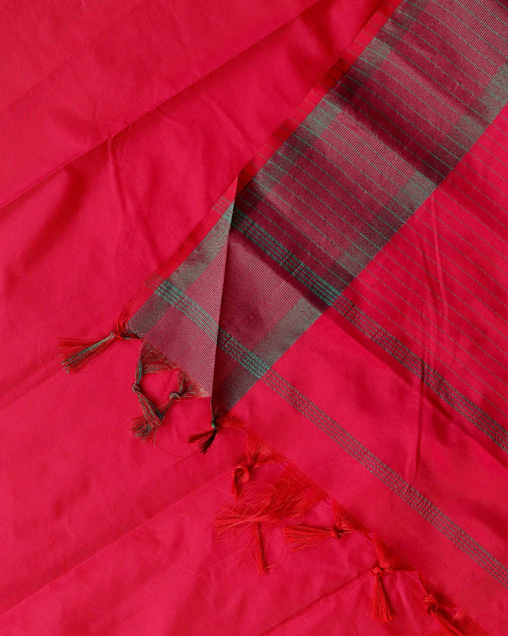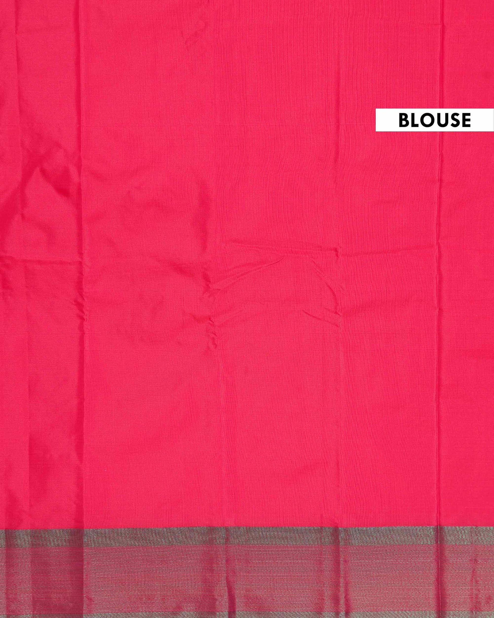 - This elegant soft silk saree in a vibrant Dark Pink a contrasting zari border with intricate weaving.
