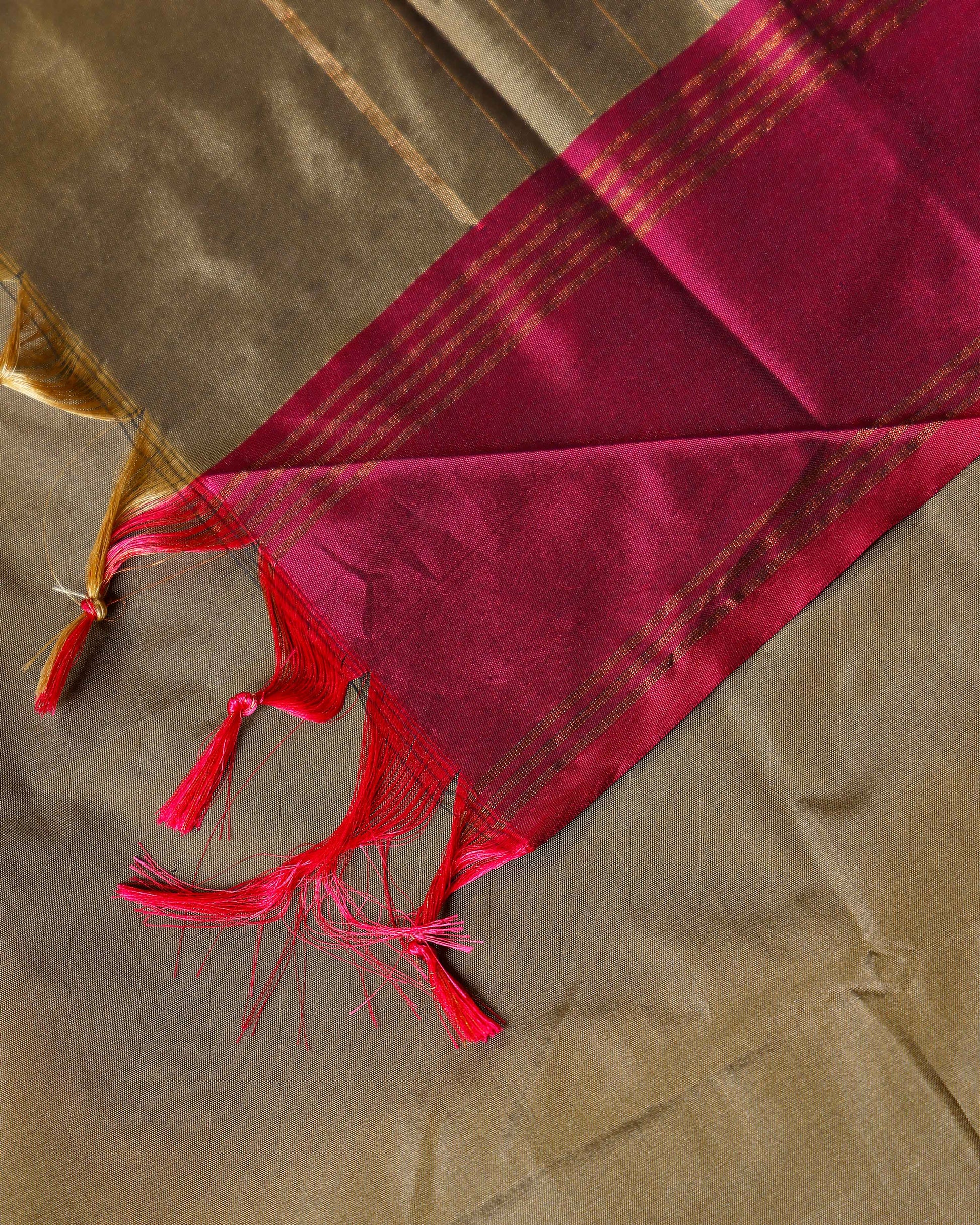 Exquisite Handloom Soft Silk Saree with Zari Woven Border and Pallu - Olive Green