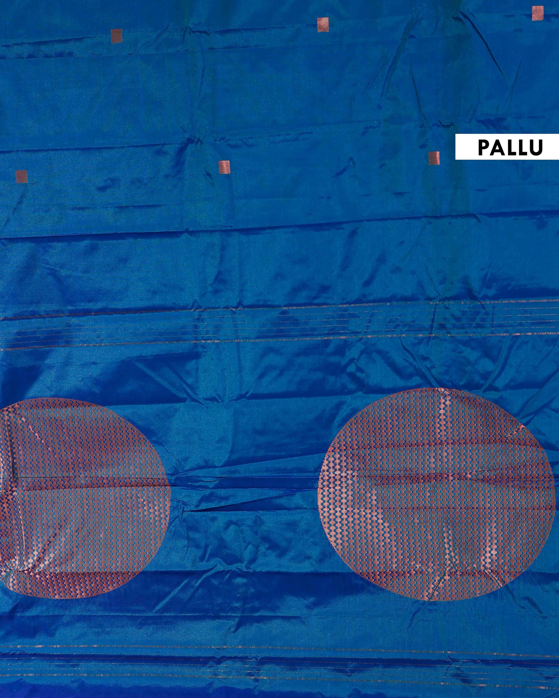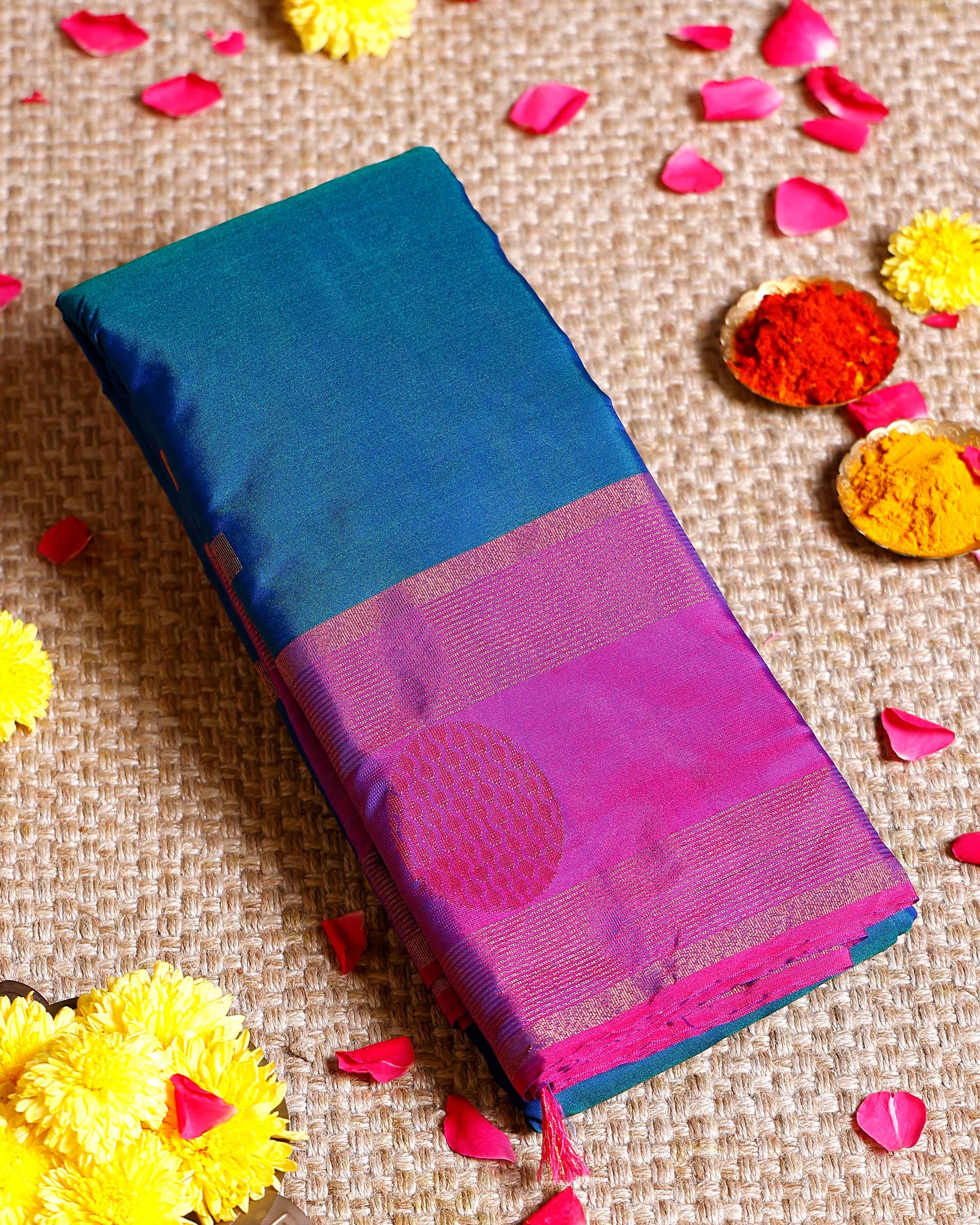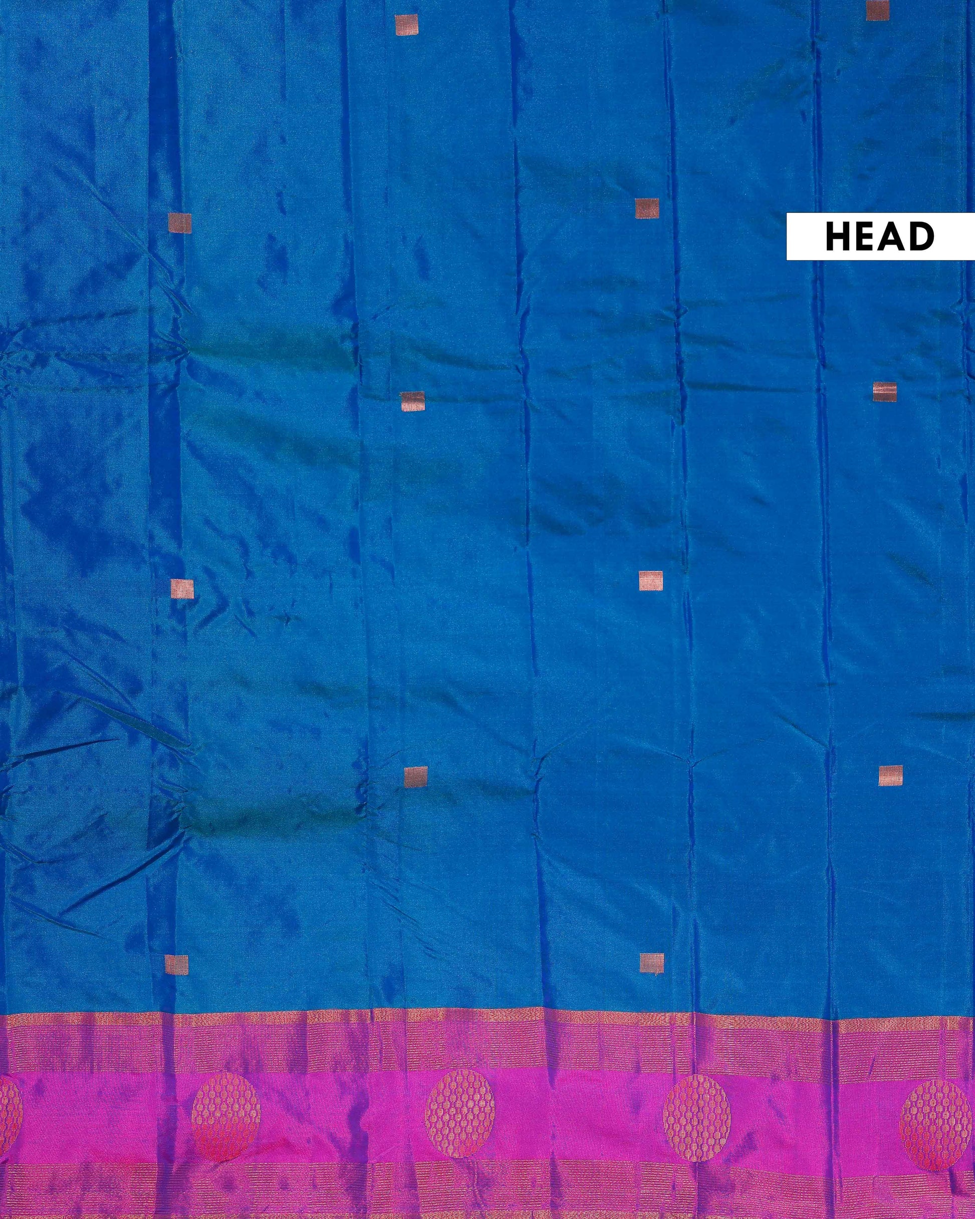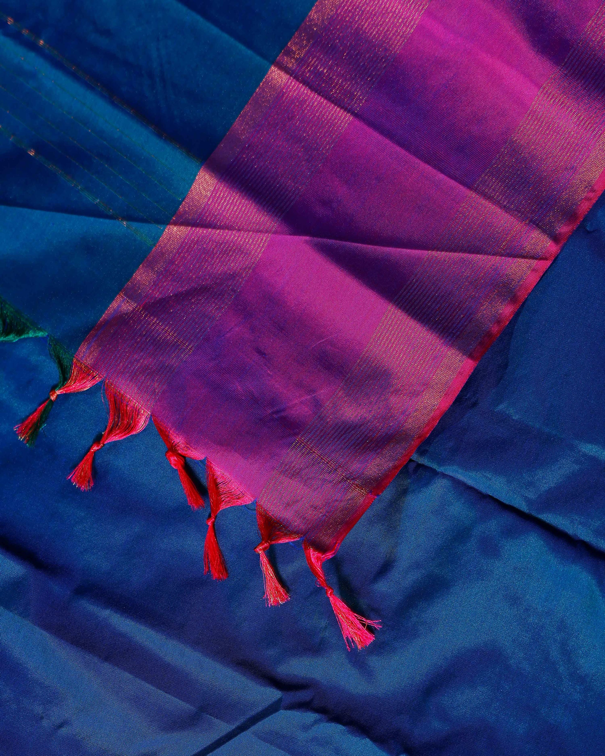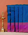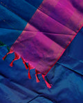 Elegant Handloom Soft Silk Saree with Traditional Motifs & Contrasting Border - Blue
