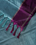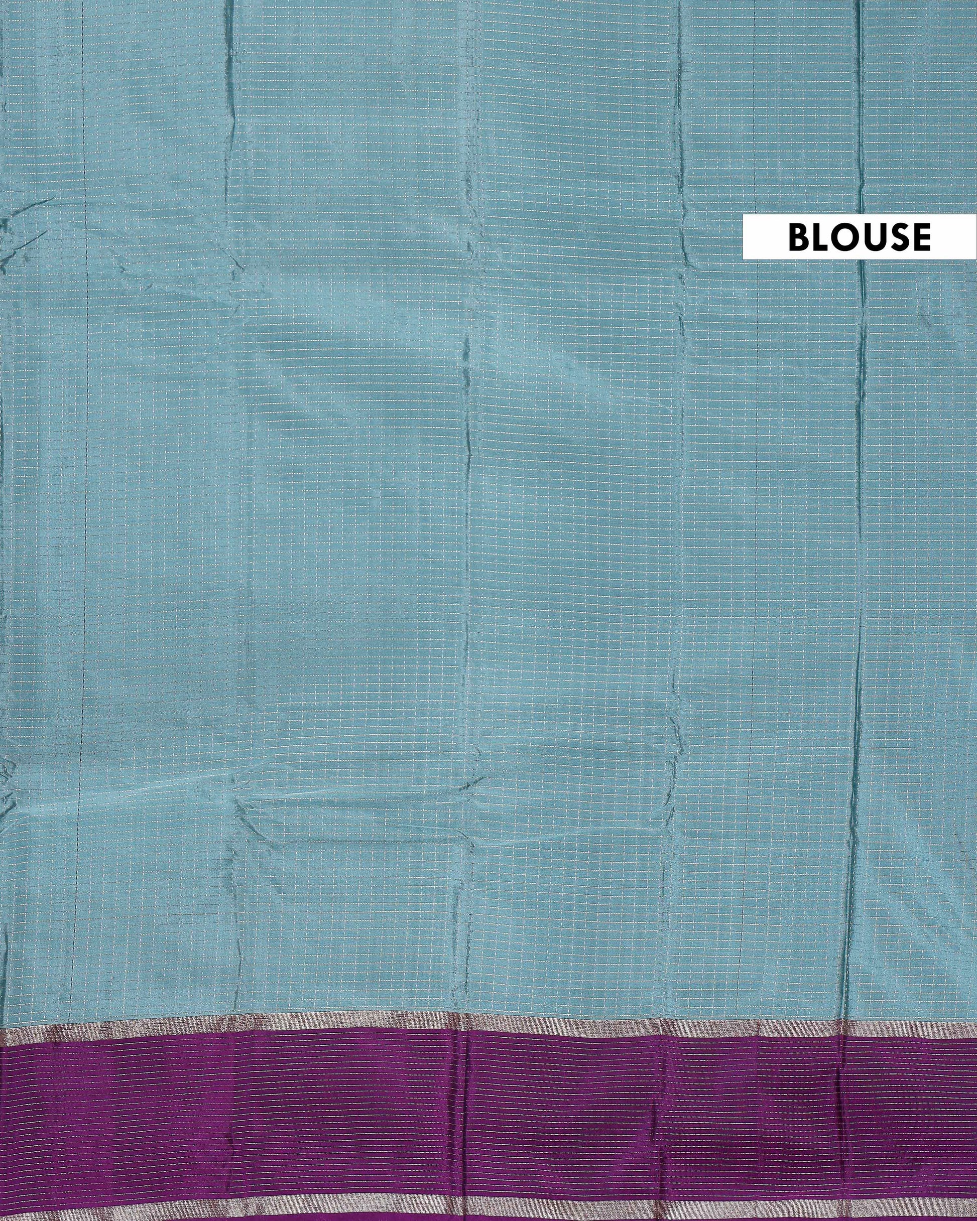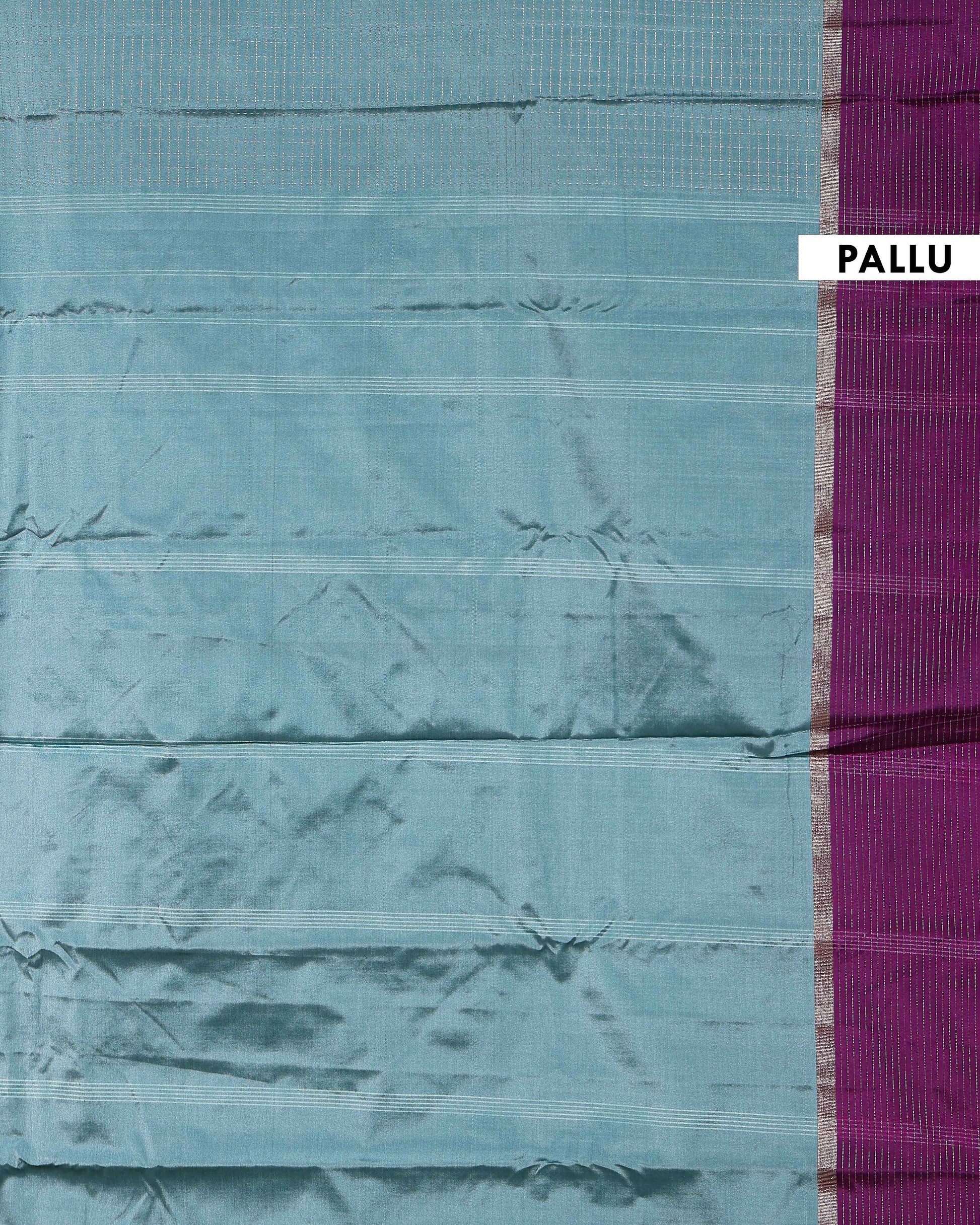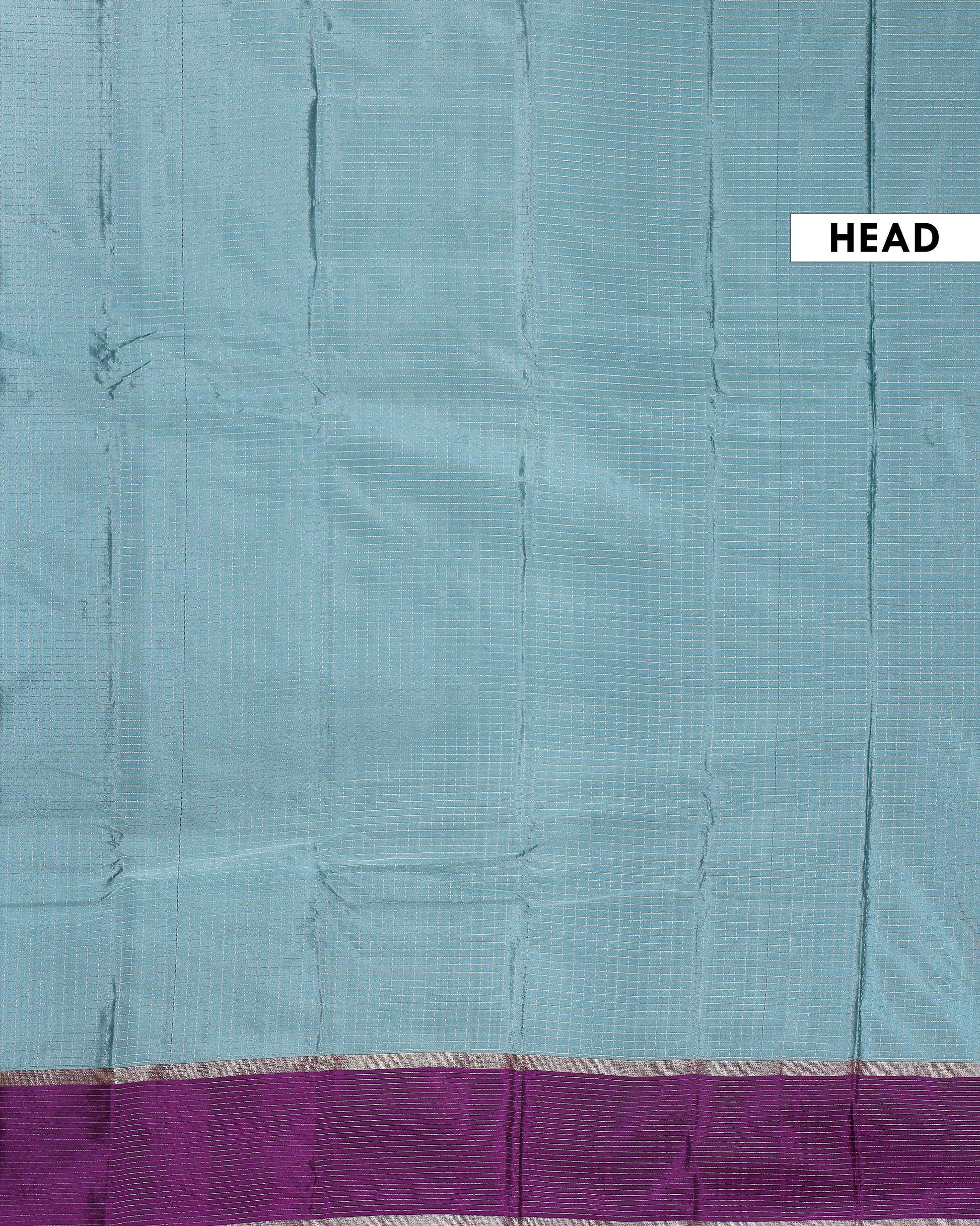 Elegant Soft Silk Saree with Woven Checks and Contrast Border - Light Blue