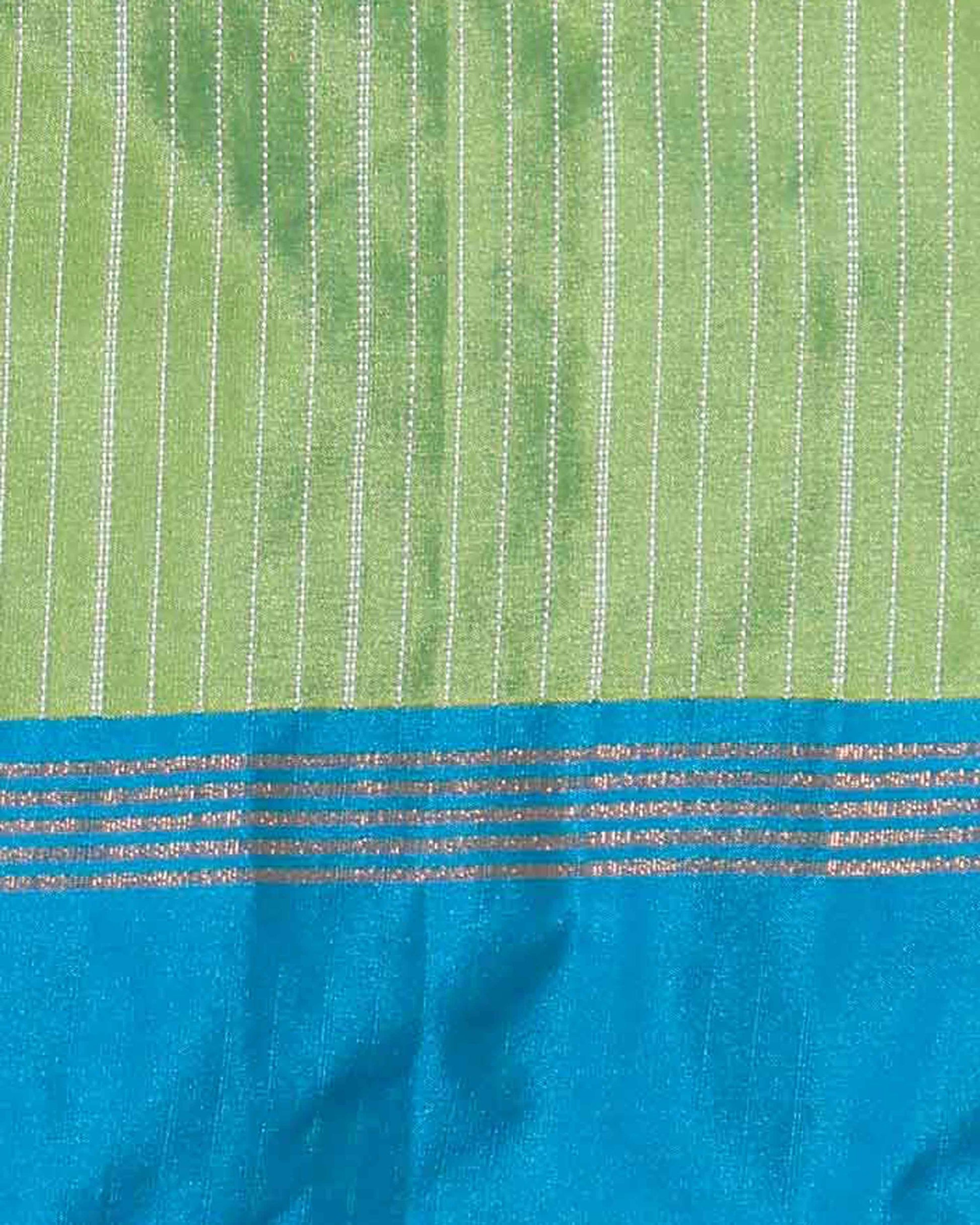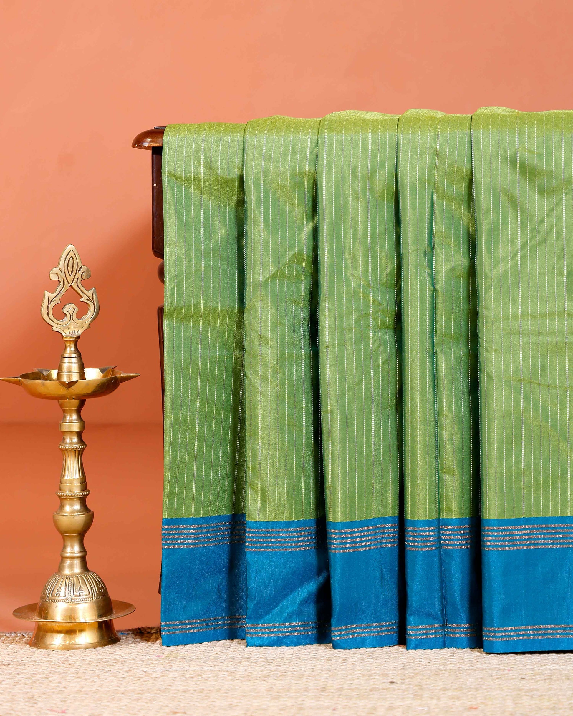 Elegant Soft Silk Saree with Striped Body and Contrast Border - Green