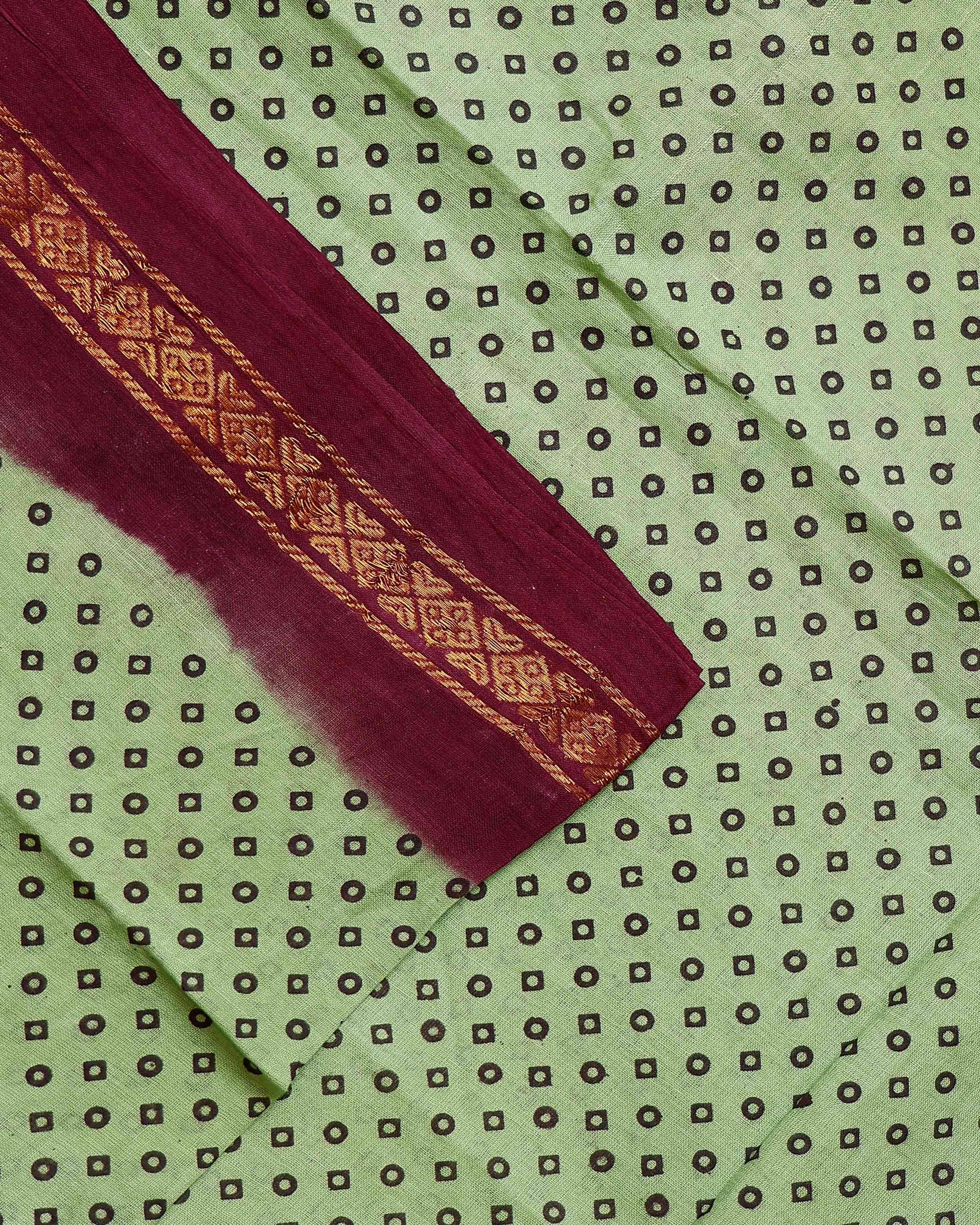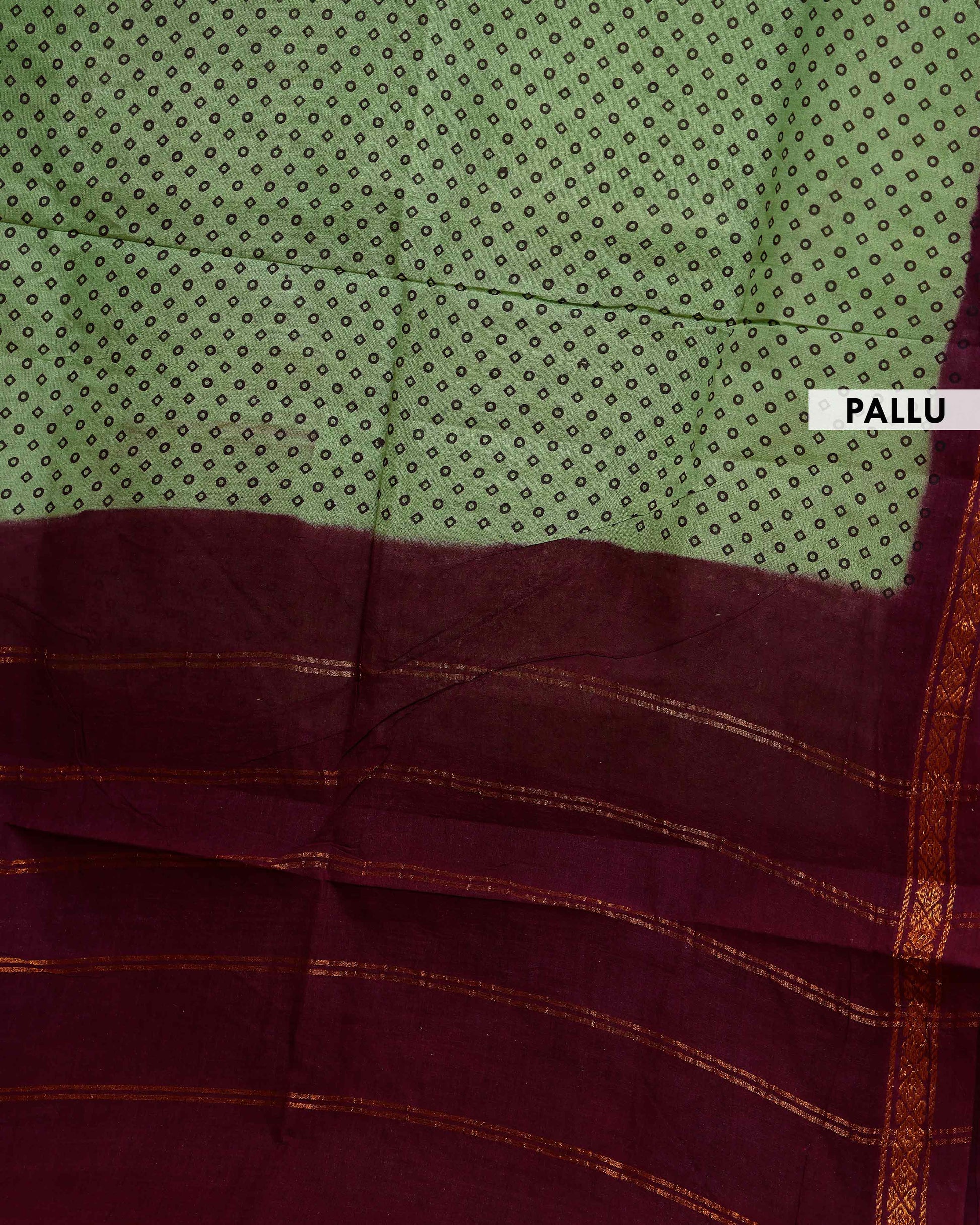 Elegant Sungudi Cotton Saree with Traditional Bandhani Inspired Print - Green