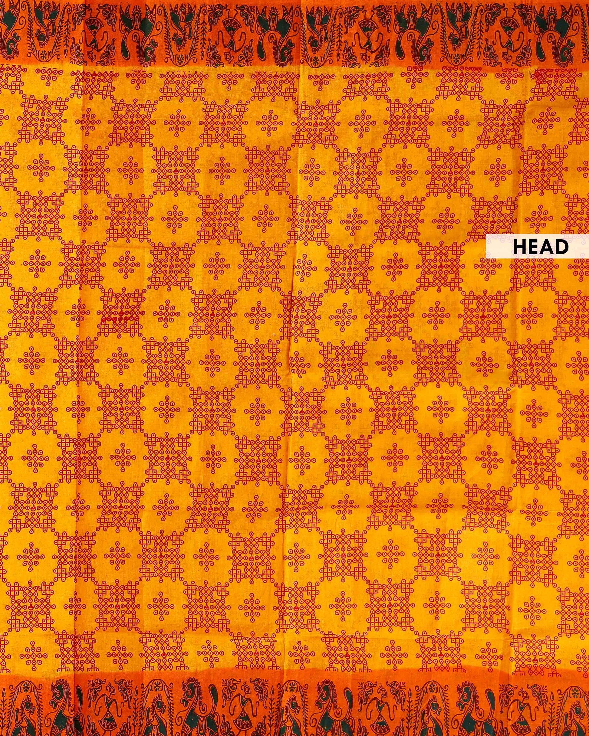 Elegant Sungudi Cotton Saree with Traditional Pattern Design - Yellow