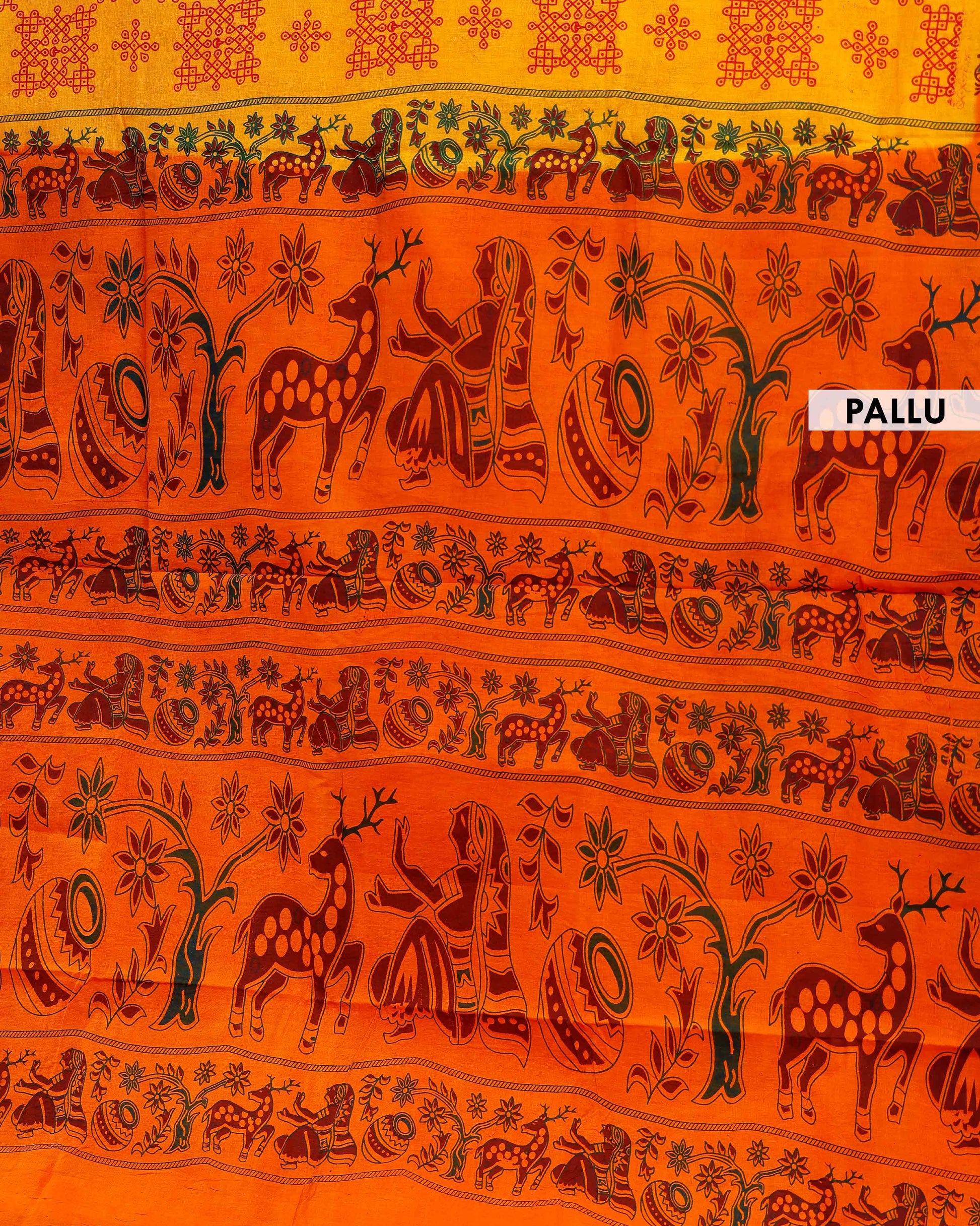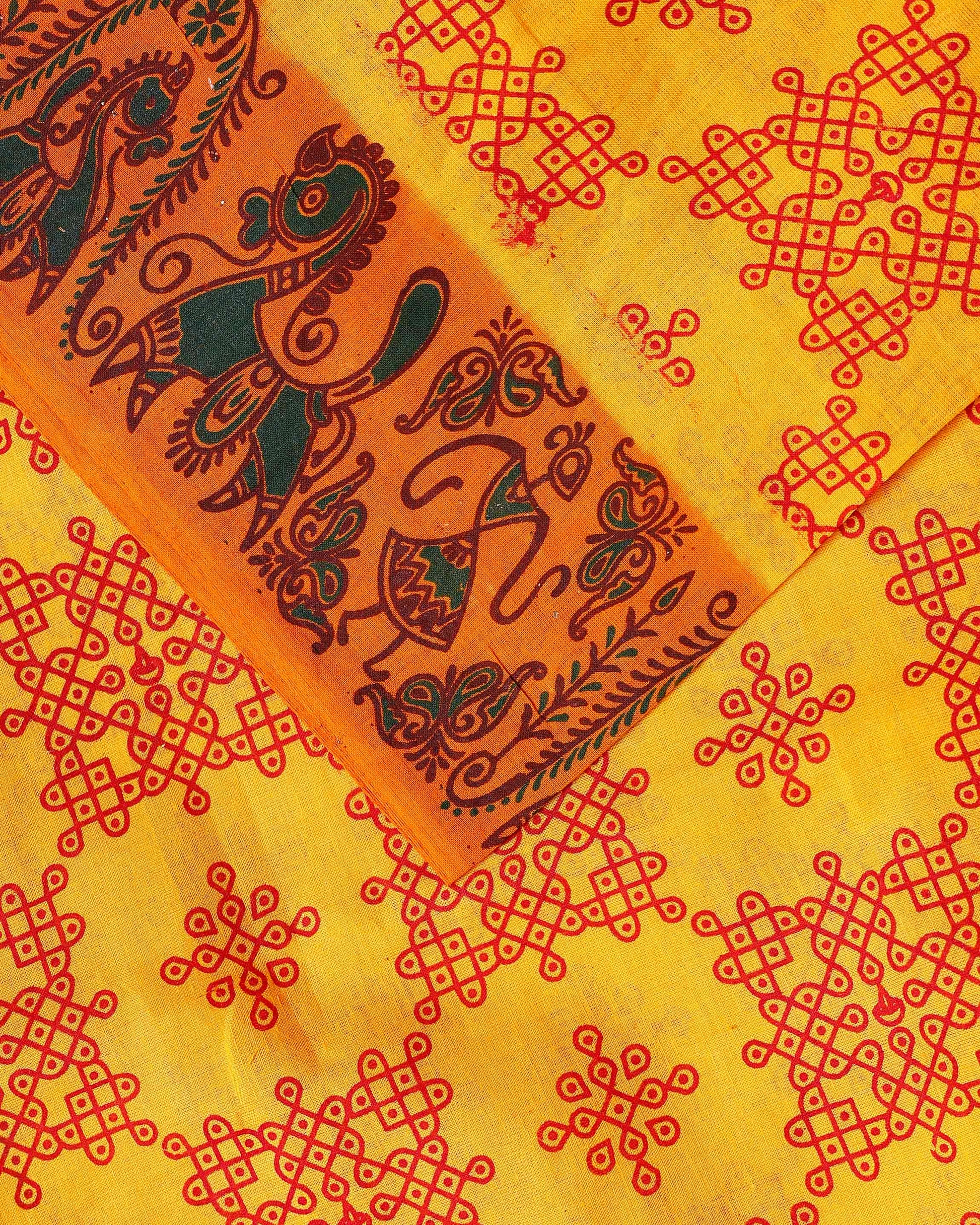 - Traditional Sungudi Cotton Saree adorned with elegant block prints and a classic border.