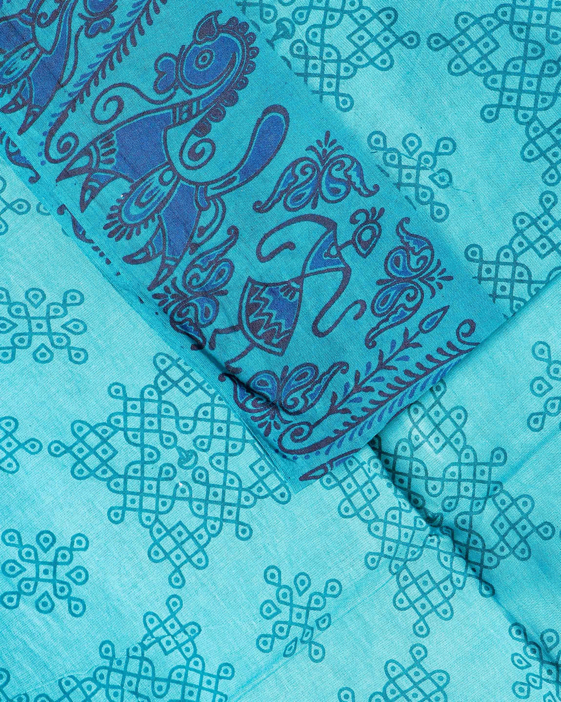 - Traditional Sungudi Cotton Saree motifs and a beautifully detailed folk art border.