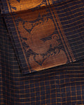 Elegant Sungudi Saree with Intricate Golden Zari Peacock Border and Fine Check Pattern Without Blouse - Black
