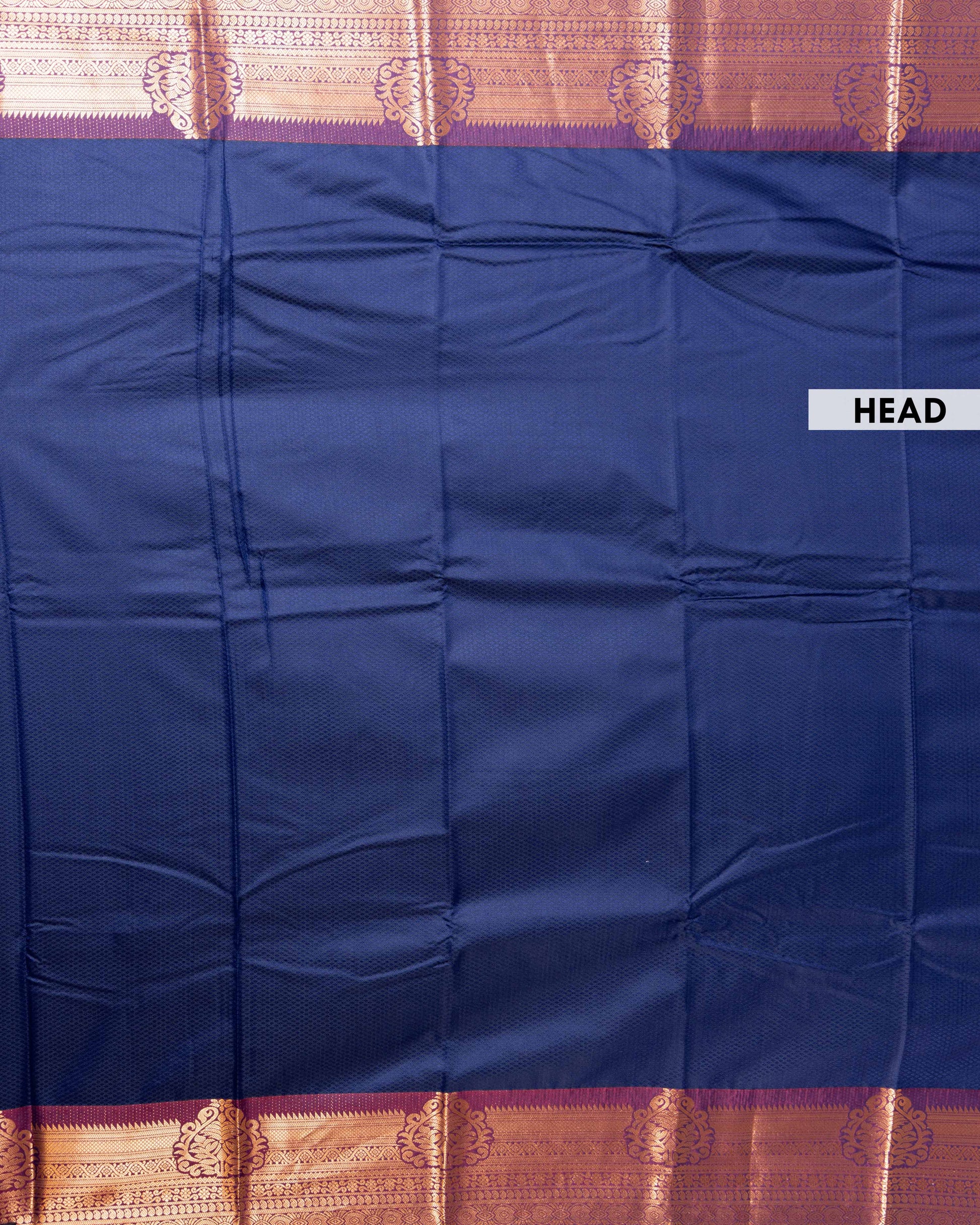 Elegant Traditional Elampillai Silk Cotton Saree with Temple Inspired Motifs - Navy Blue