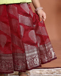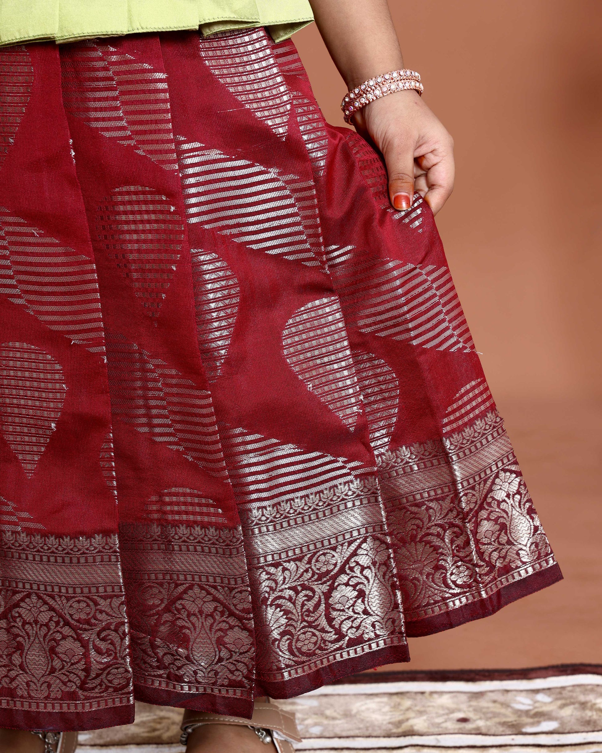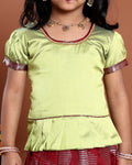 Classic Kids Readymade Pattu Pavadai with Contrast Blouse and Zari Woven Skirt - Green