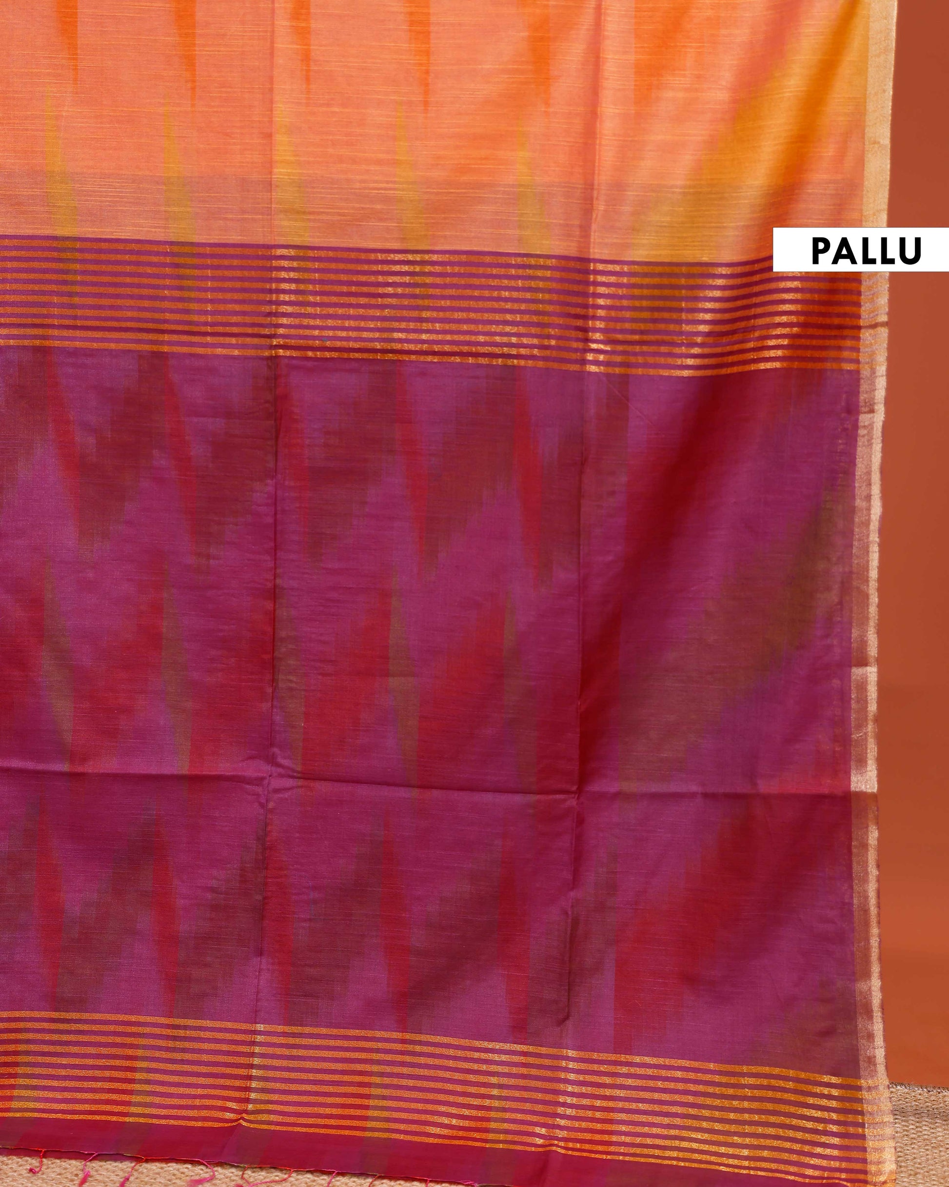 Elegant Handloom Semi Silk Saree with Zari Border and Striped Pallu - Orange