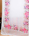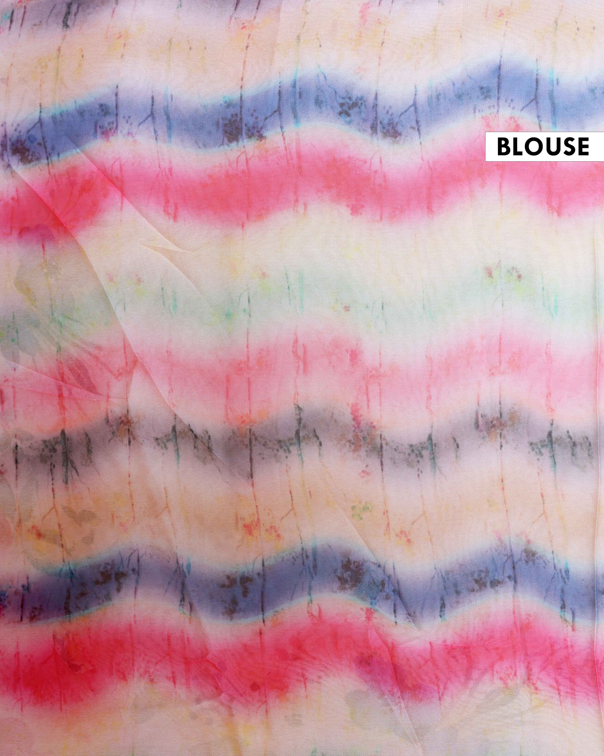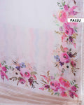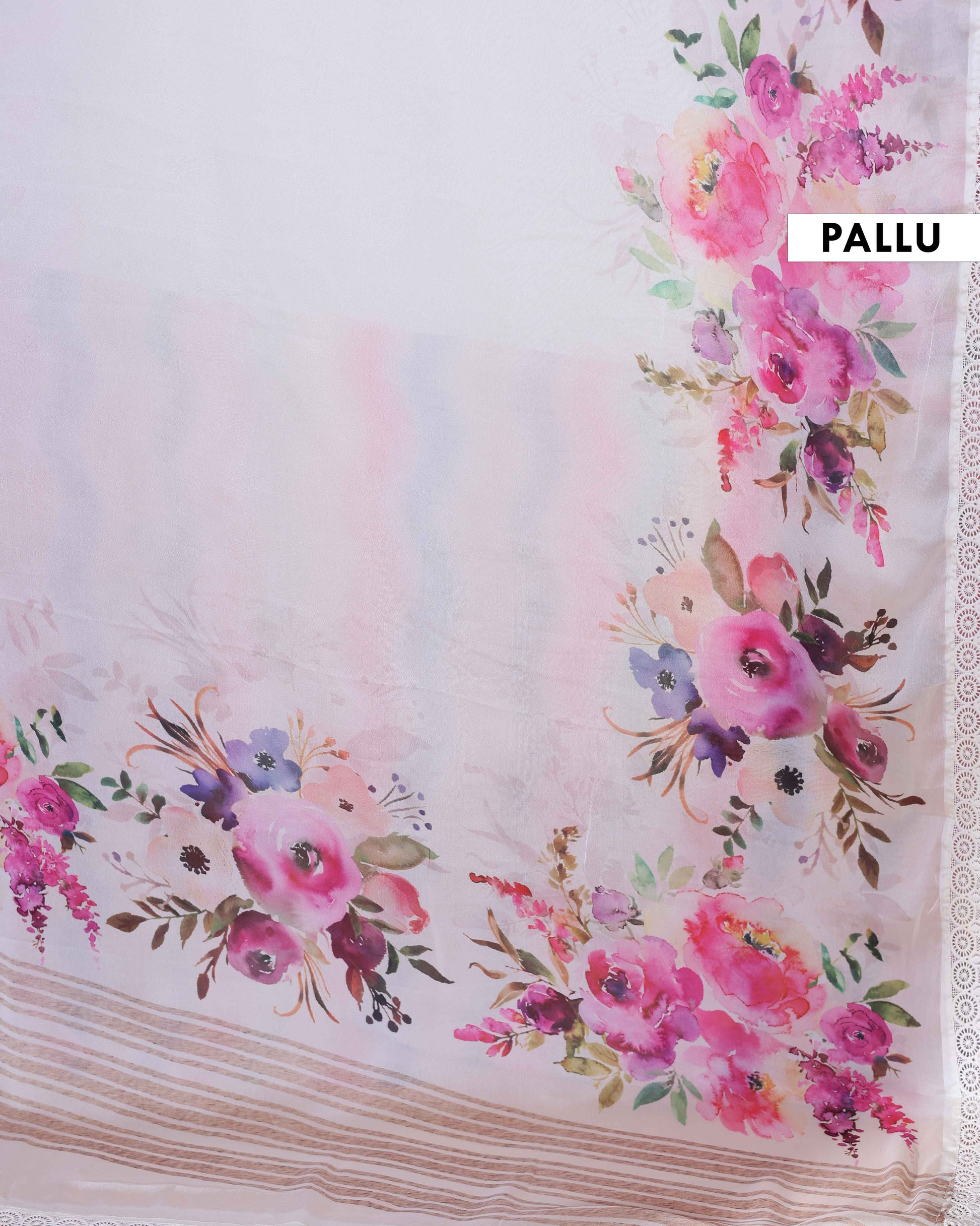 - This elegant Georgette saree a vibrant floral print with delicate lace edging, perfect for a graceful look