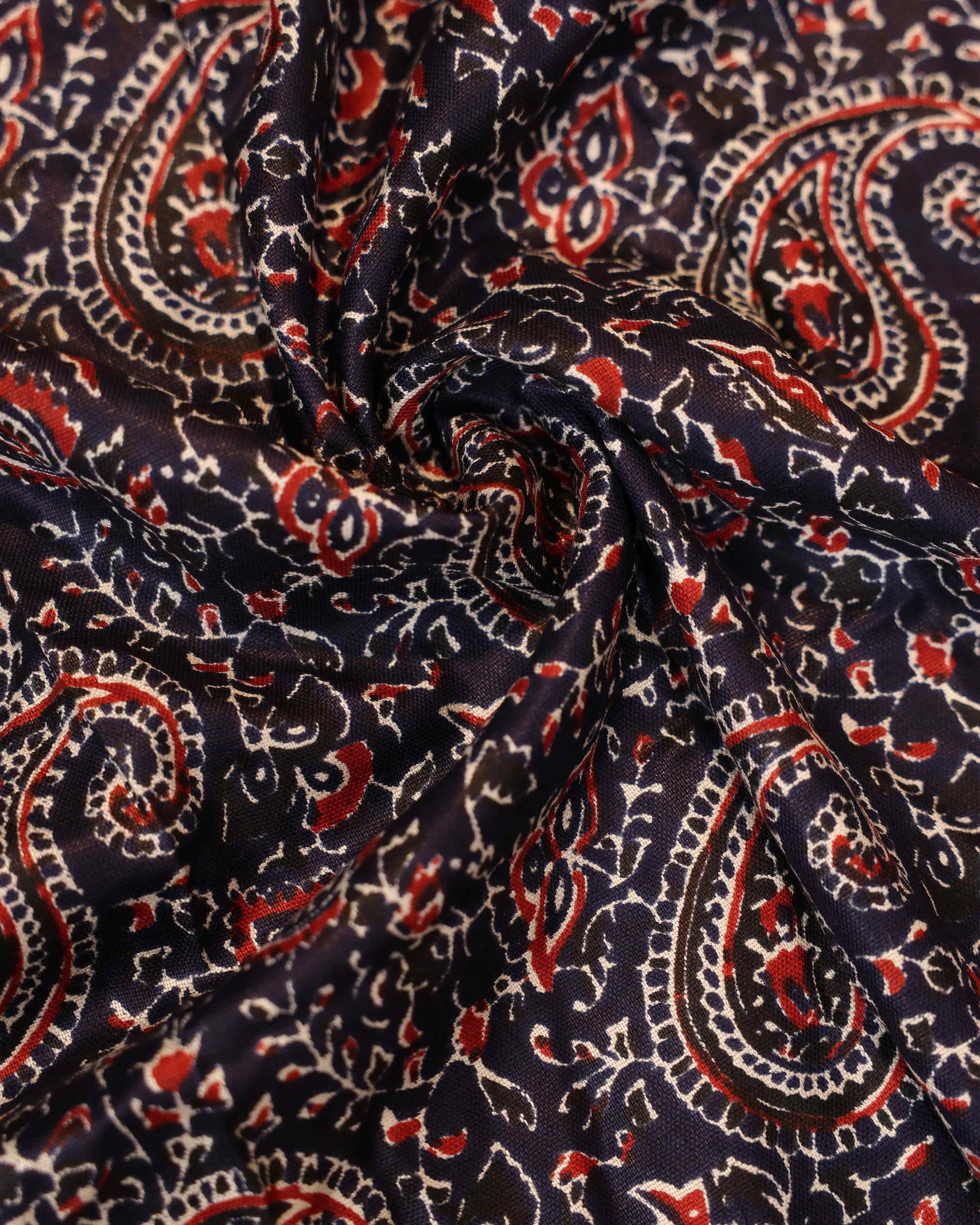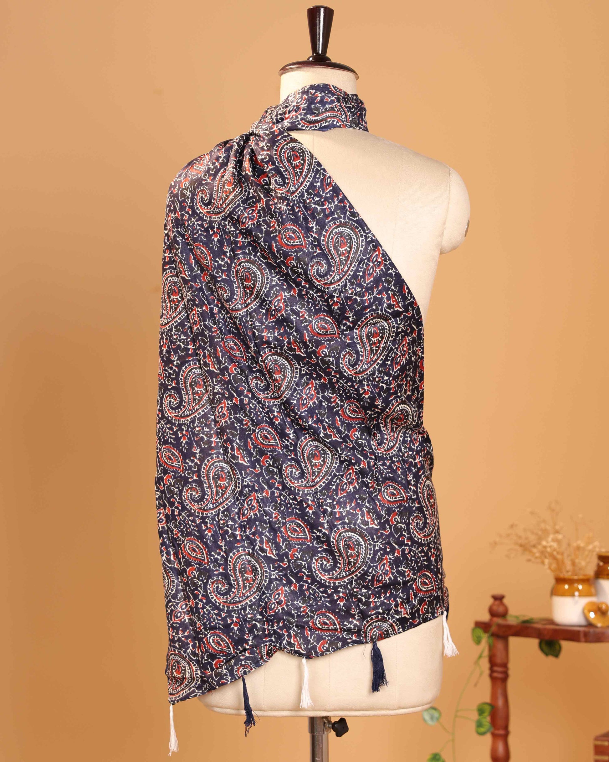 Elegant Women’s Dupatta with All Over Paisley Print Intricate Traditional Motifs and Decorative Tasselled Ends - Navy Blue