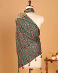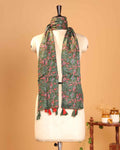 Elegant Women’s Dupatta with Floral Vine Motifs and Decorative Tasselled Ends - Green