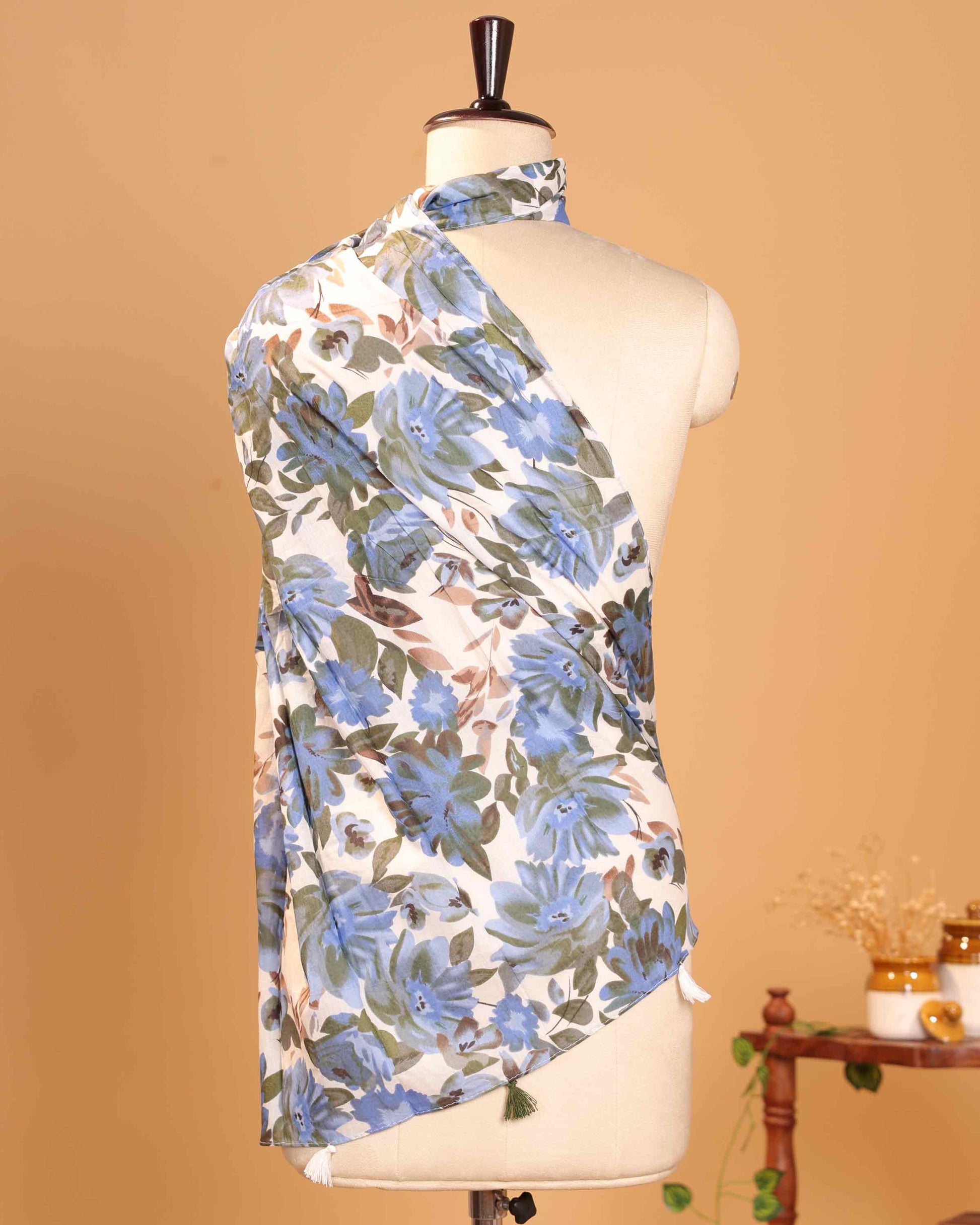 Elegant Women’s Floral Printed Dupatta with Soft Lightweight and Decorative Tassel Finish - Off White