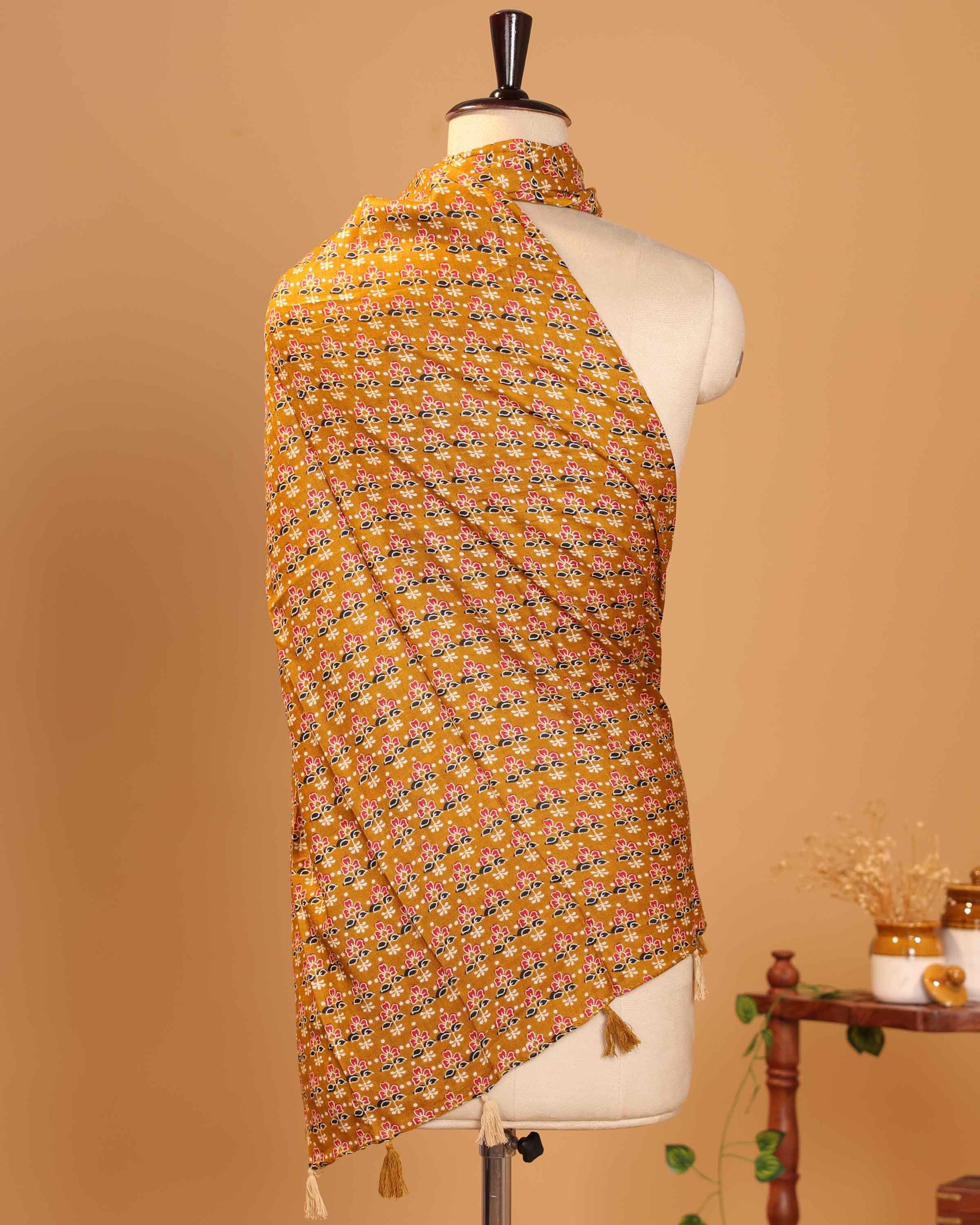 Add charm to your ethnic and fusion wardrobe with this women’s floral printed dupatta, designed with traditional motifs and elegant tassel accents