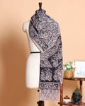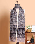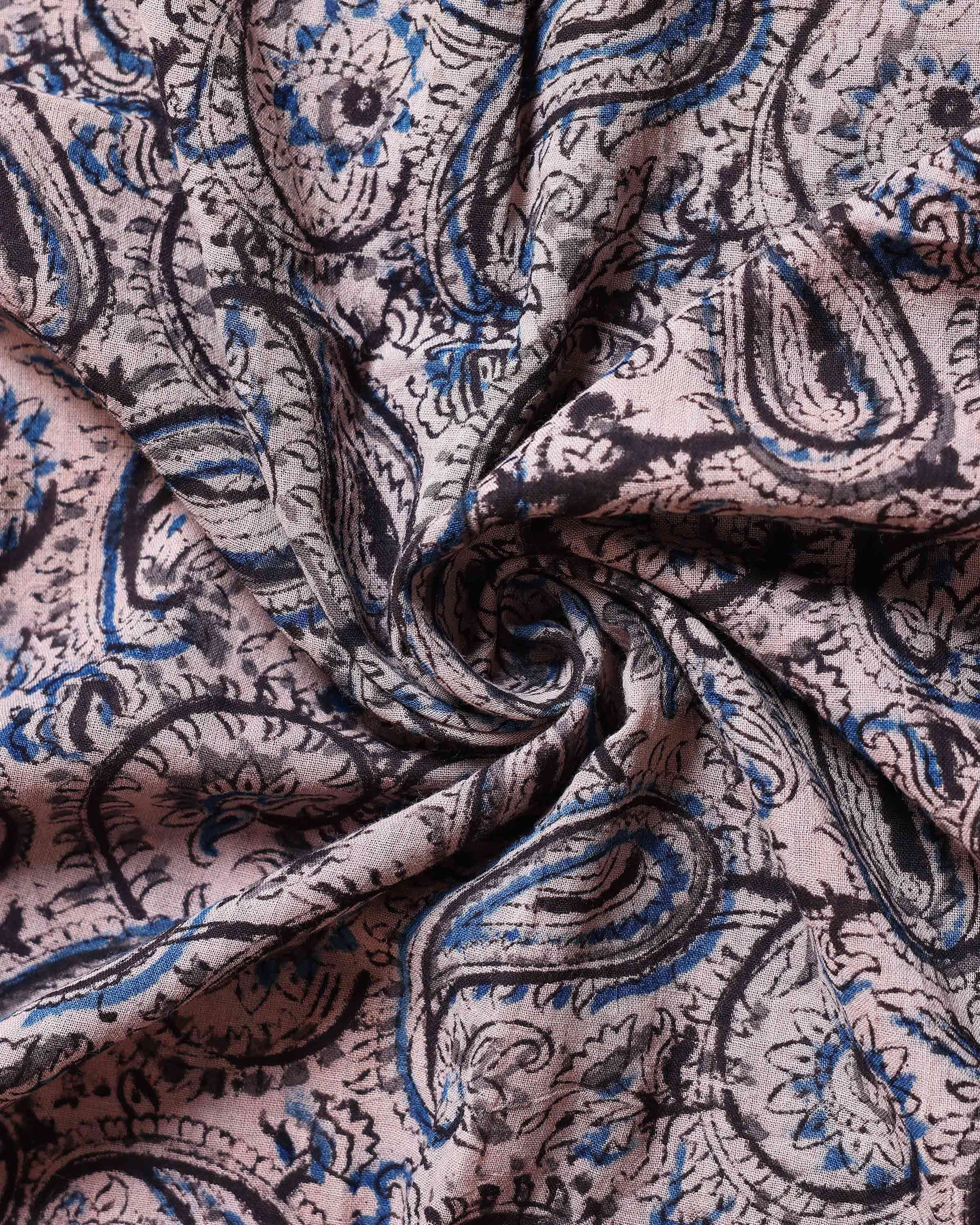 - This elegant women's dupatta a traditional black and blue paisley and peacock block print design on a light beige base.