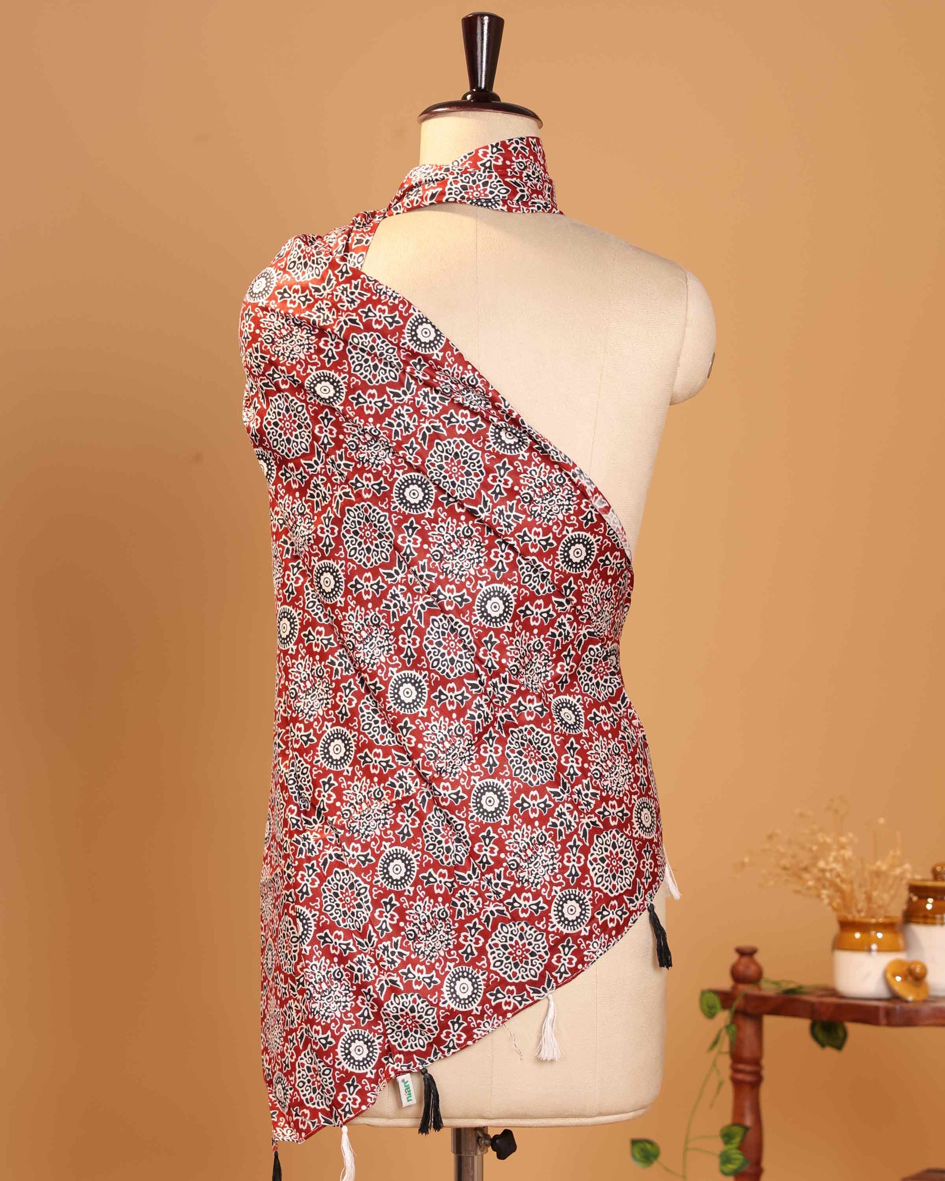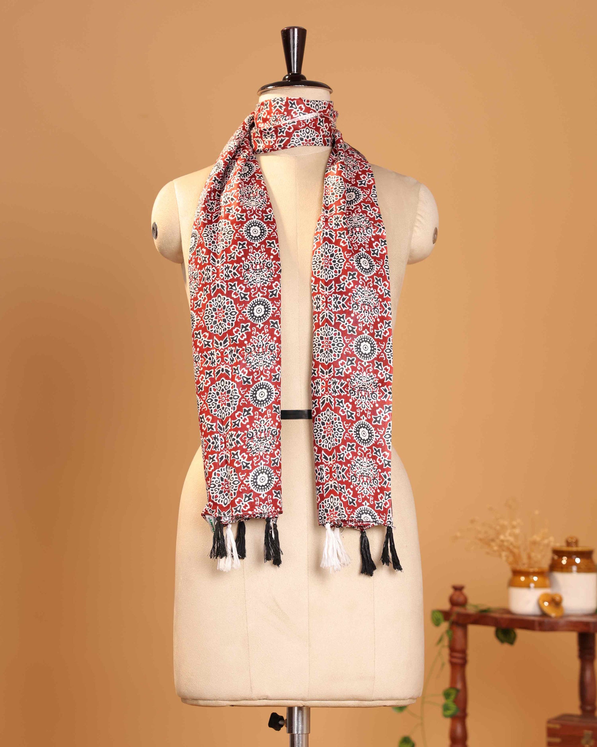 Elegant Women’s Printed Dupatta with Intricate Traditional Motifs and Floral Inspired Design - Red