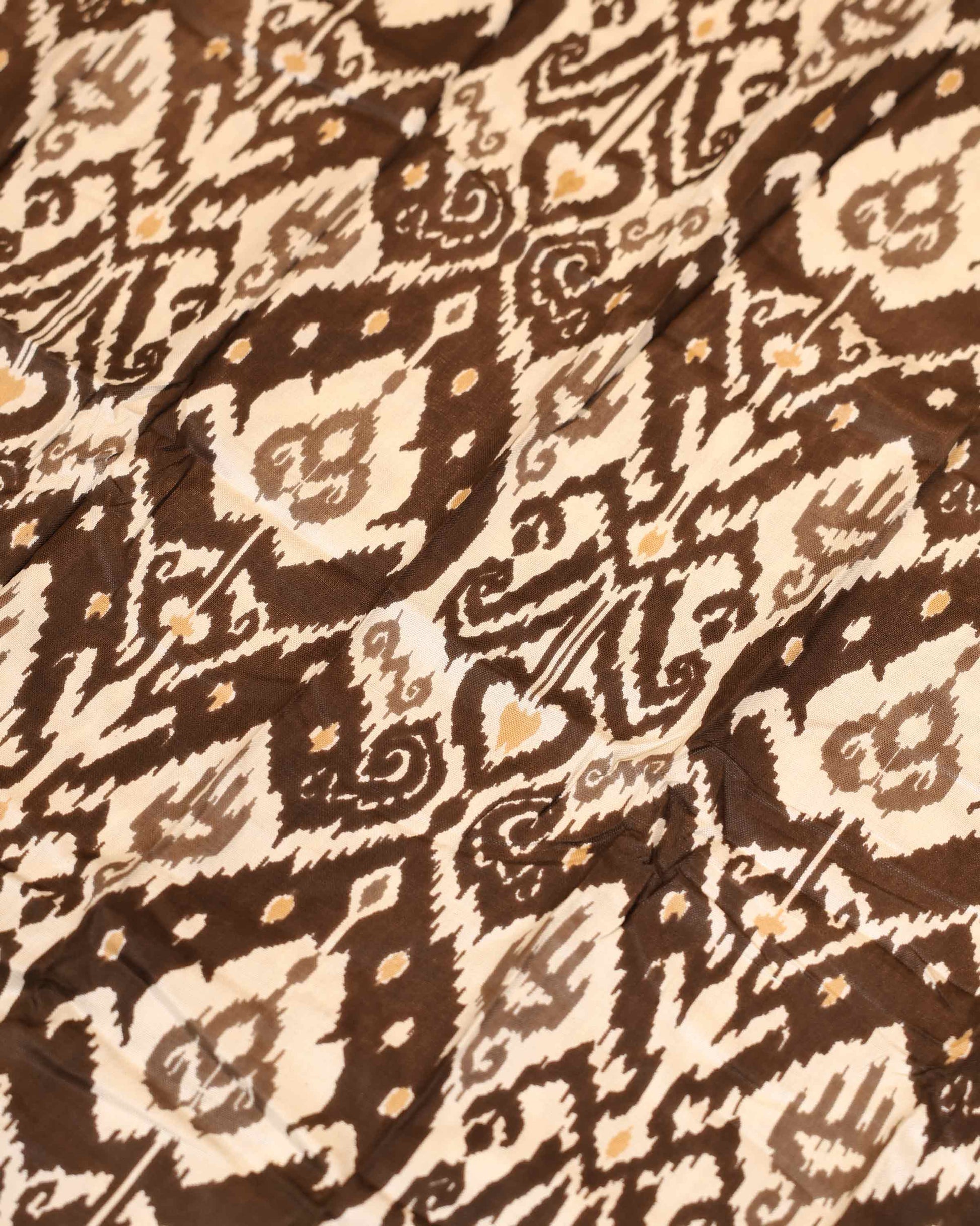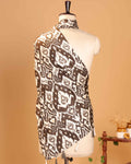Elegant Women’s Printed Dupatta with Traditional Ikkat Inspired Motifs and Tassel Detailing - Dark Brown