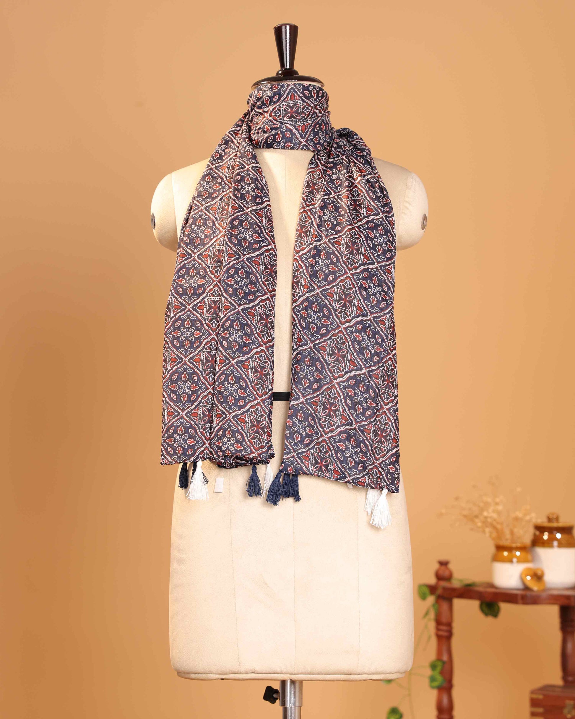 Elegant Women’s Traditional Print Dupatta with Intricate Geometric Motifs and Tassel Finish - Multi