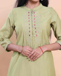 Elegant Women's Ethnic Kurta with Yoke Embroidery and Straight Pants - Green