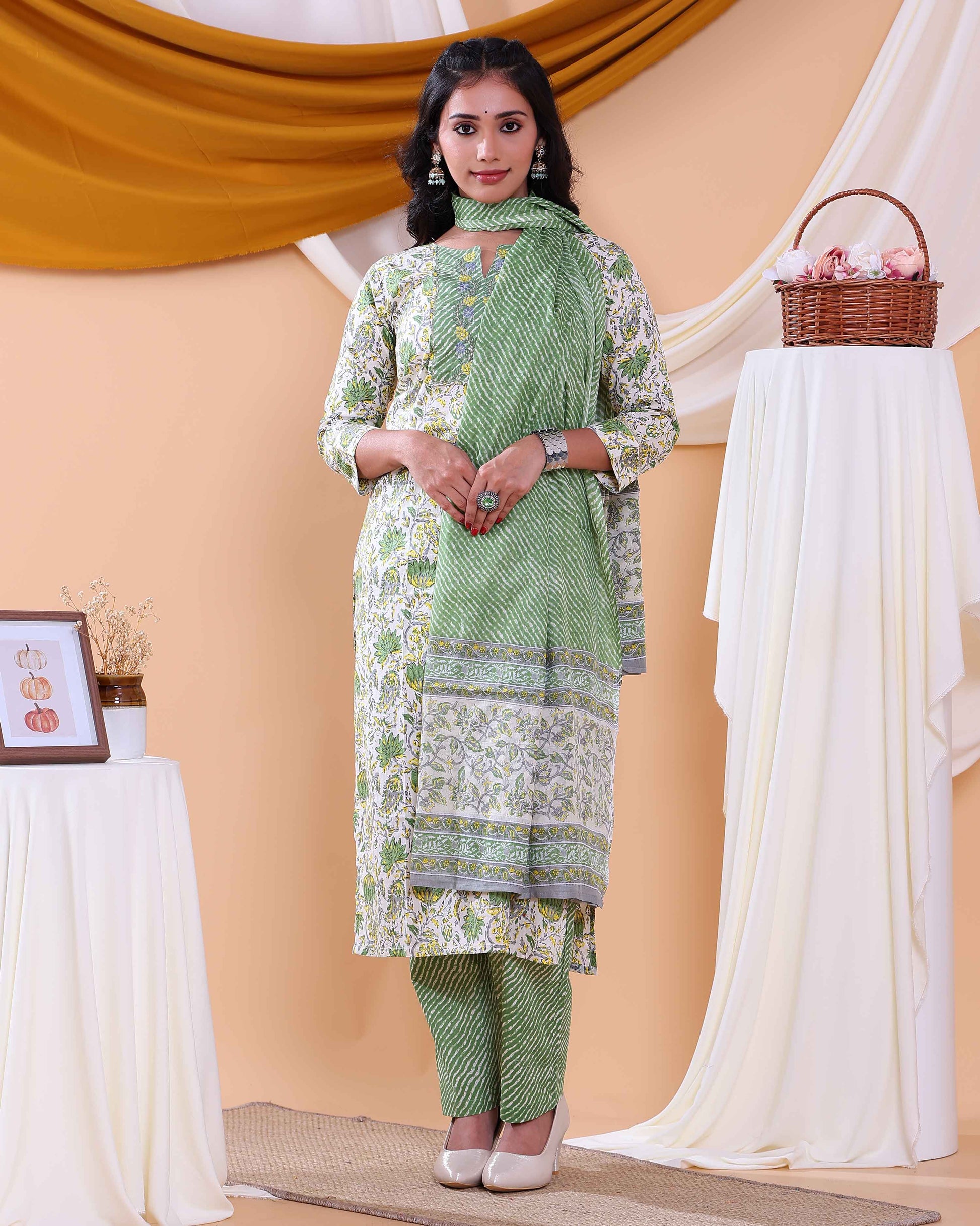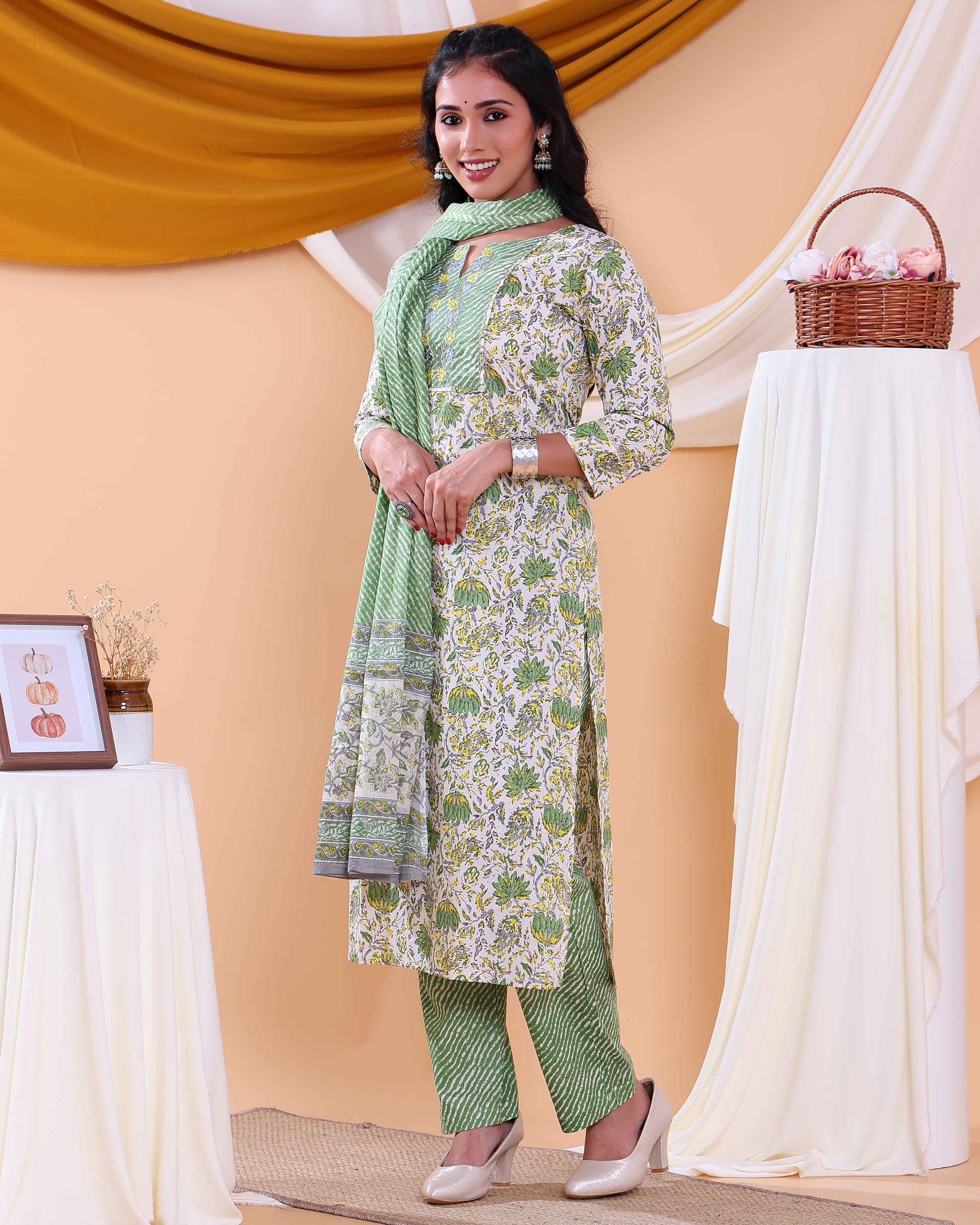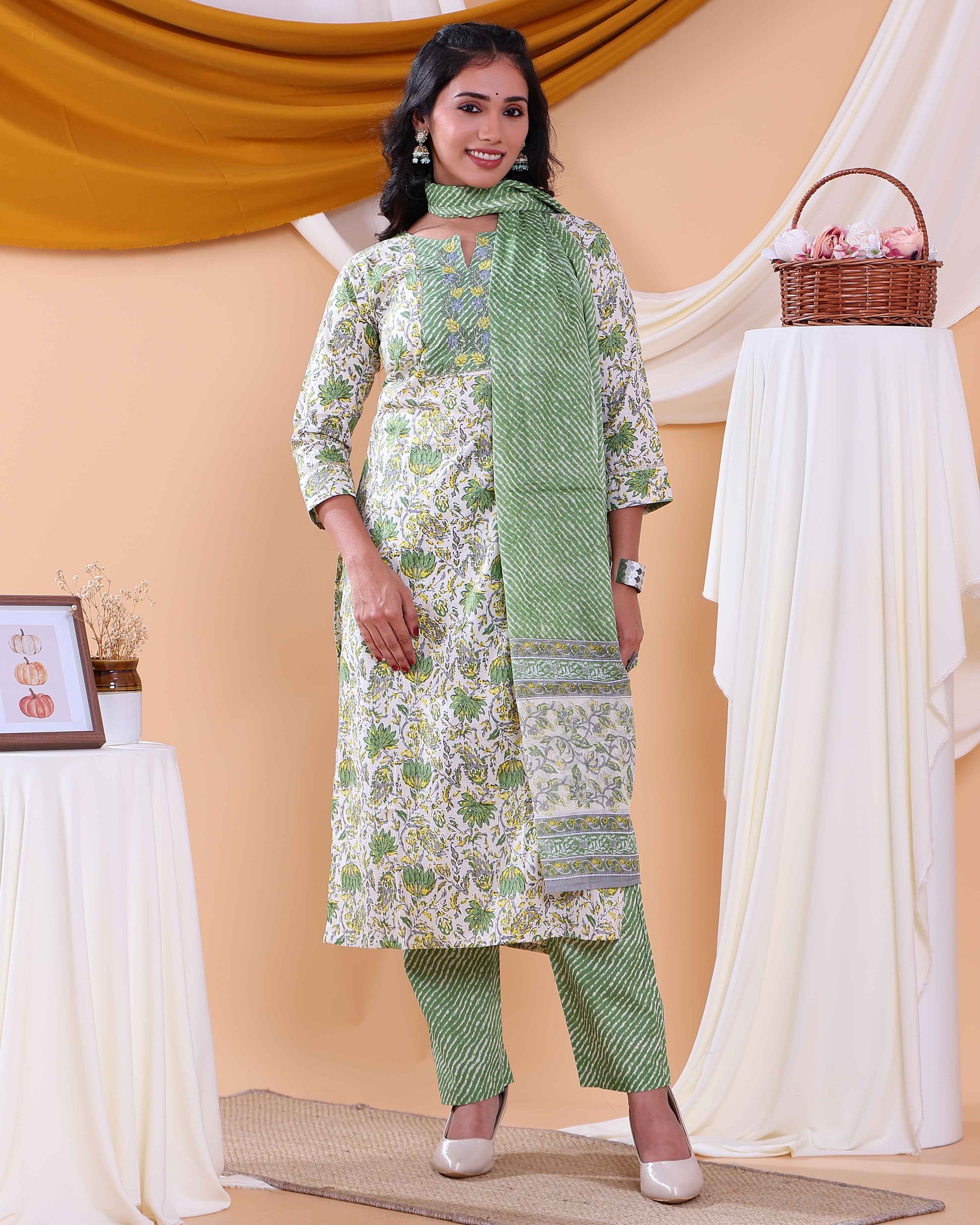 Elegant Women's Floral Printed Design Readymade Salwar Set - Off White