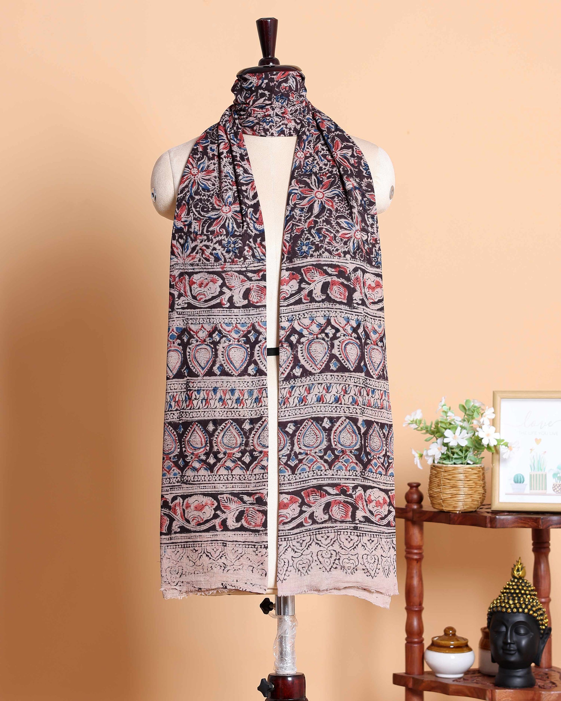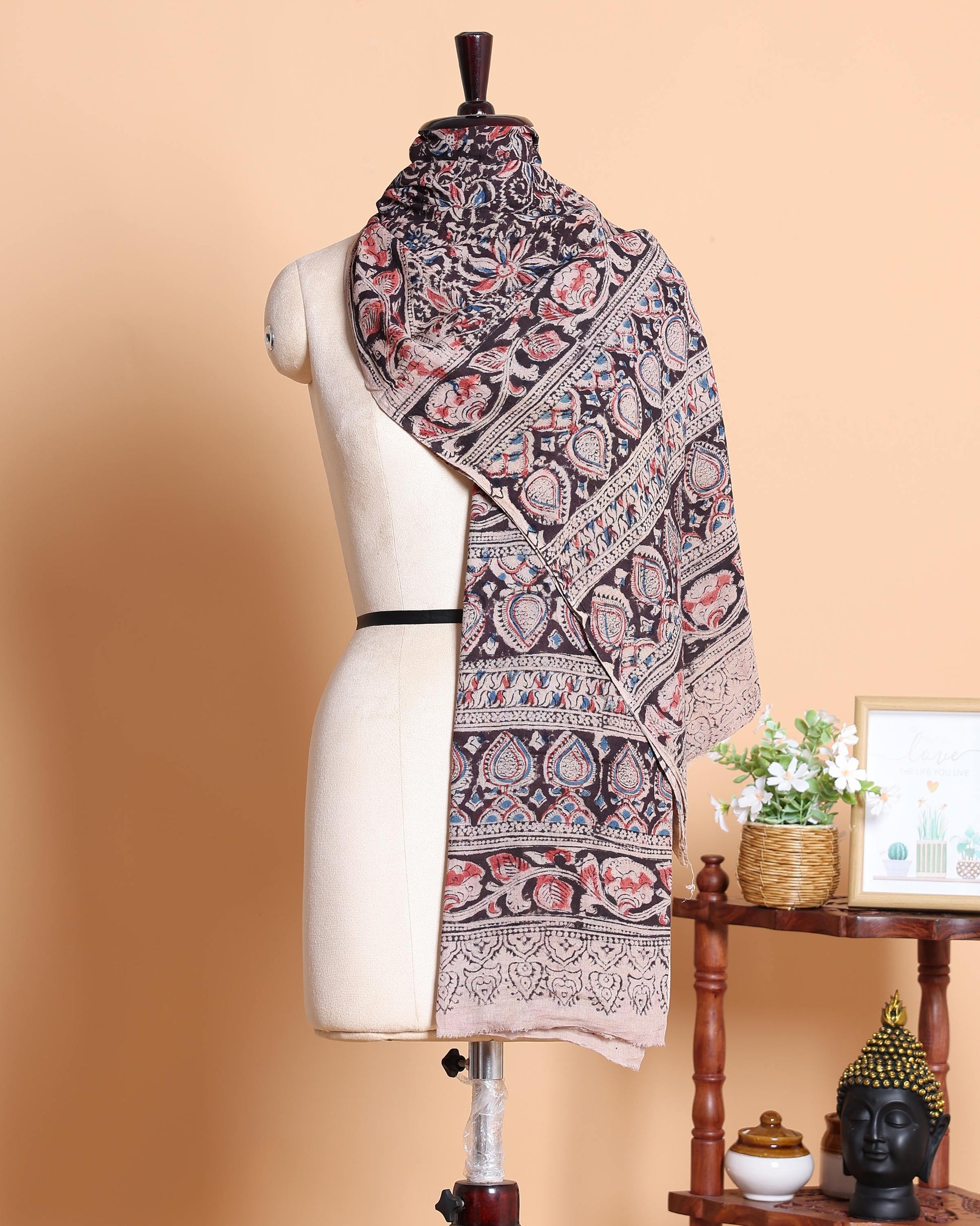 Elegant Women's Kalamkari Printed Cotton Dupatta with Traditional Motifs - Multi