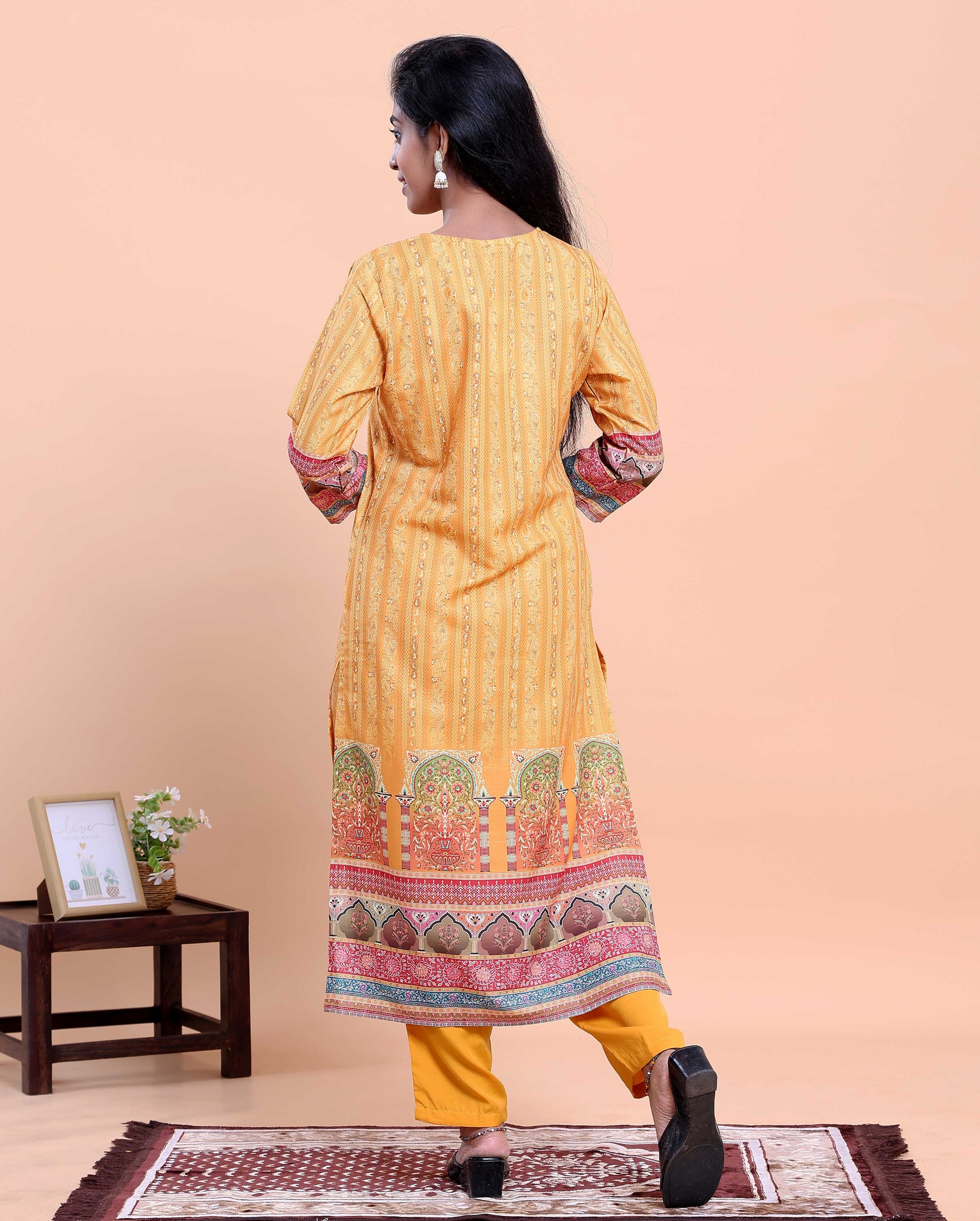 Elegant Women's Printed Straight Salwar Suit Set with Dupatta - Yellow