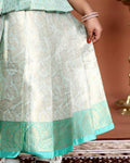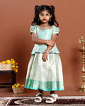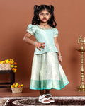 Elegant Woven Kids Readymade Pattu Pavadai with Brocade Blouse and Zari Border Skirt - Green