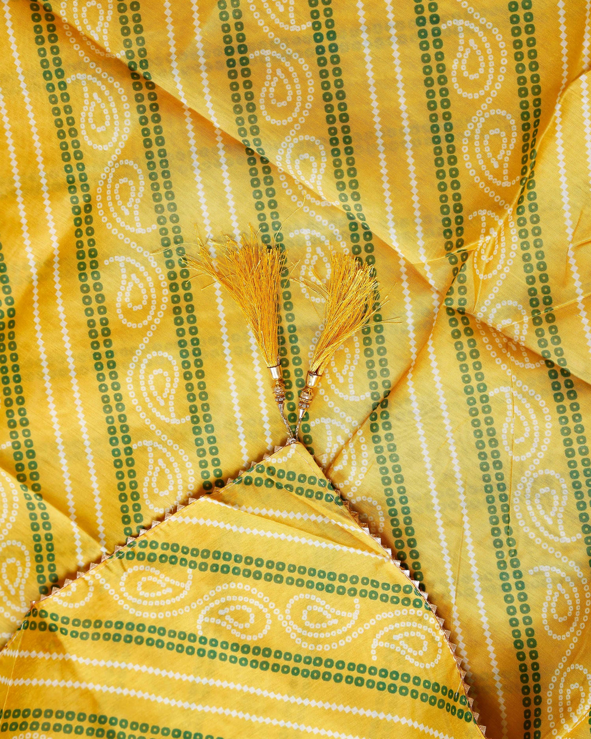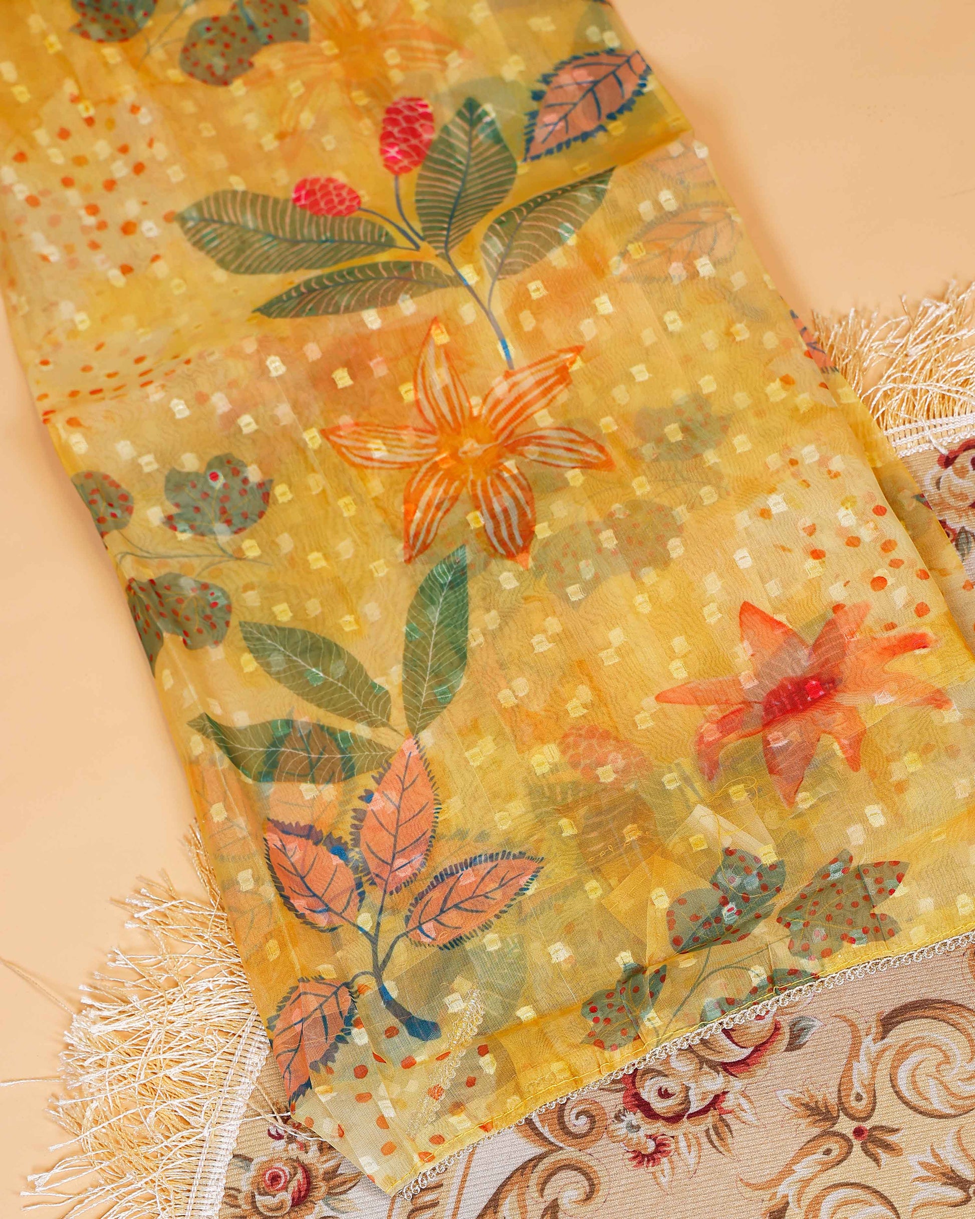 Women's Elegant Floral & Paisley Print Salwar Suit Material with Intricate Neck Embroidery - Yellow