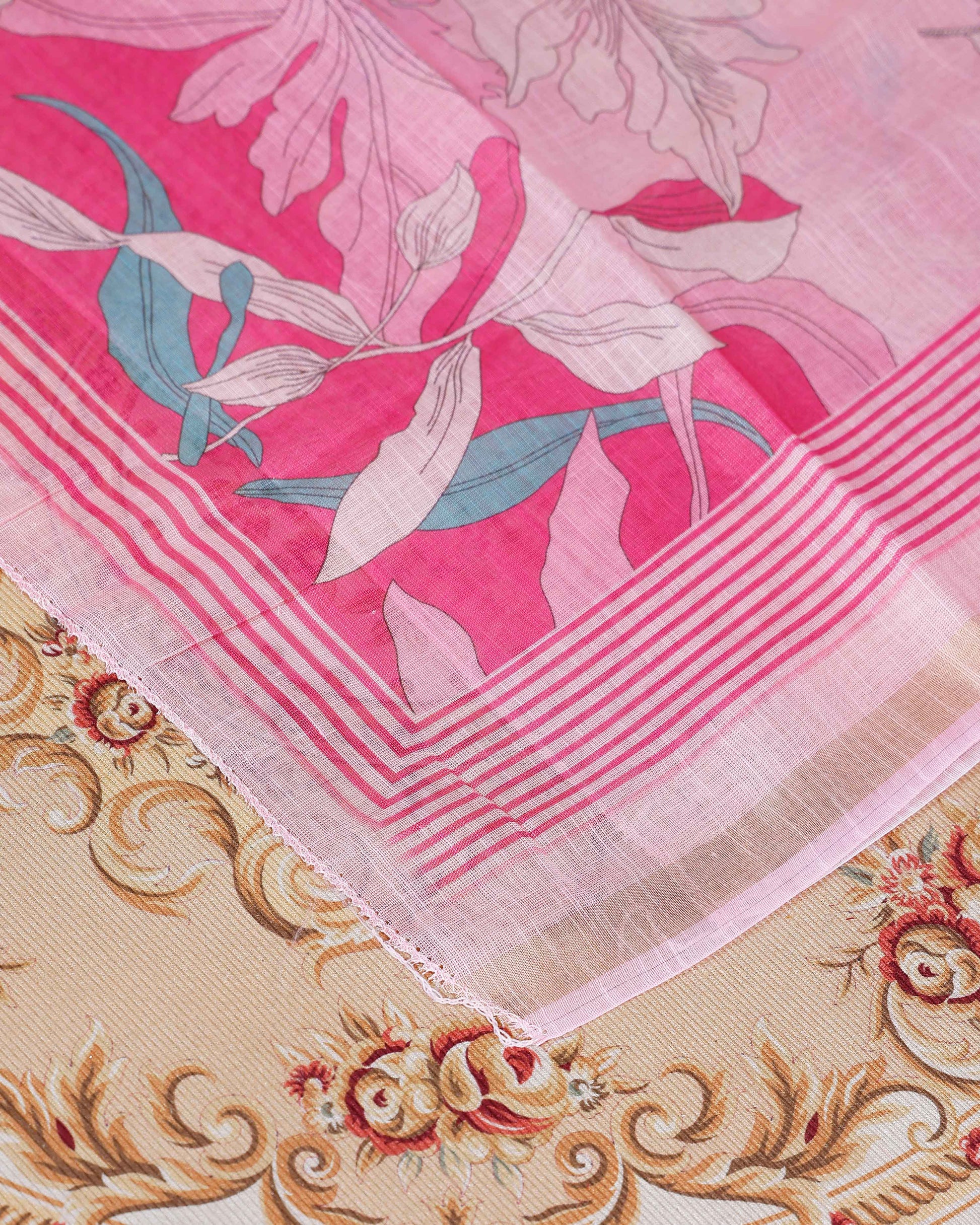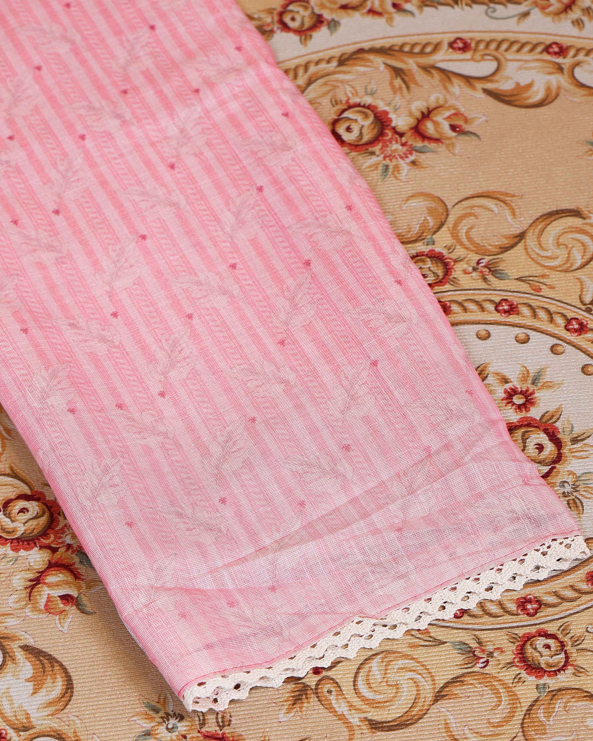 Women's Embroidered Neckline Unstitched Salwar Suit Material with Dupatta - Pink