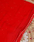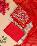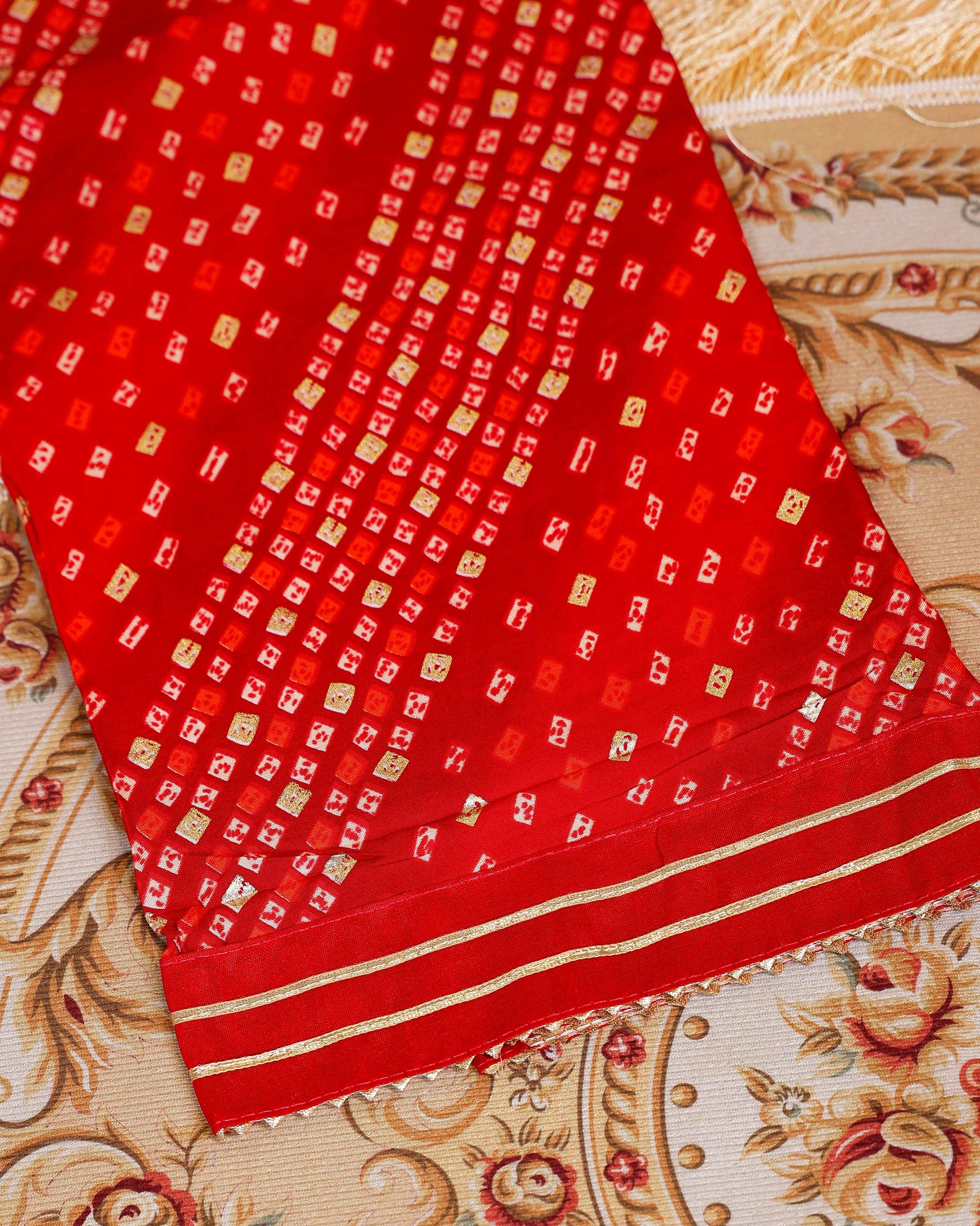 Embroidered Bandhani Print Salwar Suit Material with Zari and Floral Embellishments - Red