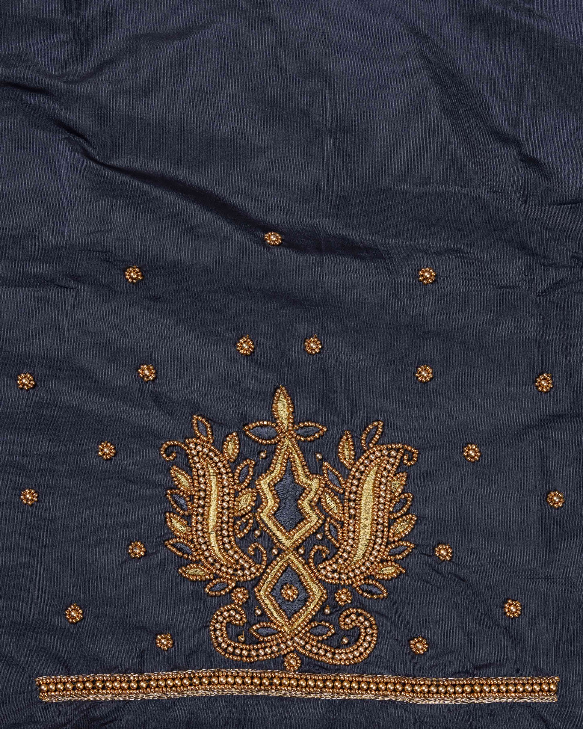 Hand Embroidered Unstitched Blouse Piece with Floral Design - Black