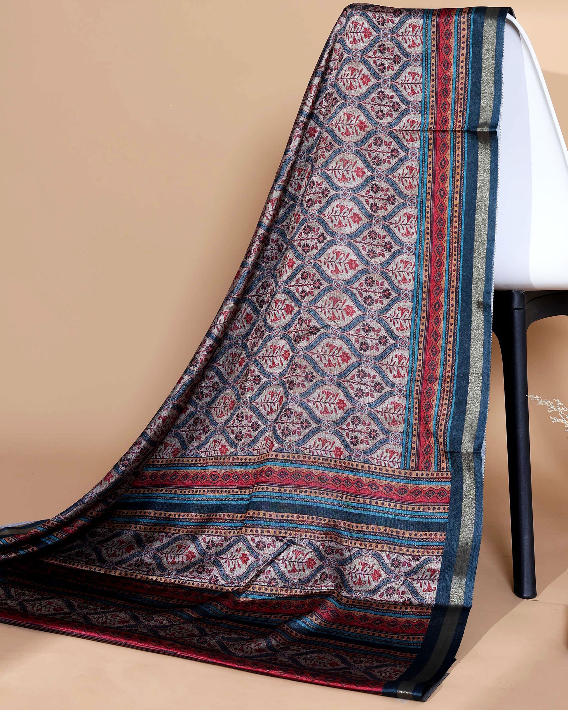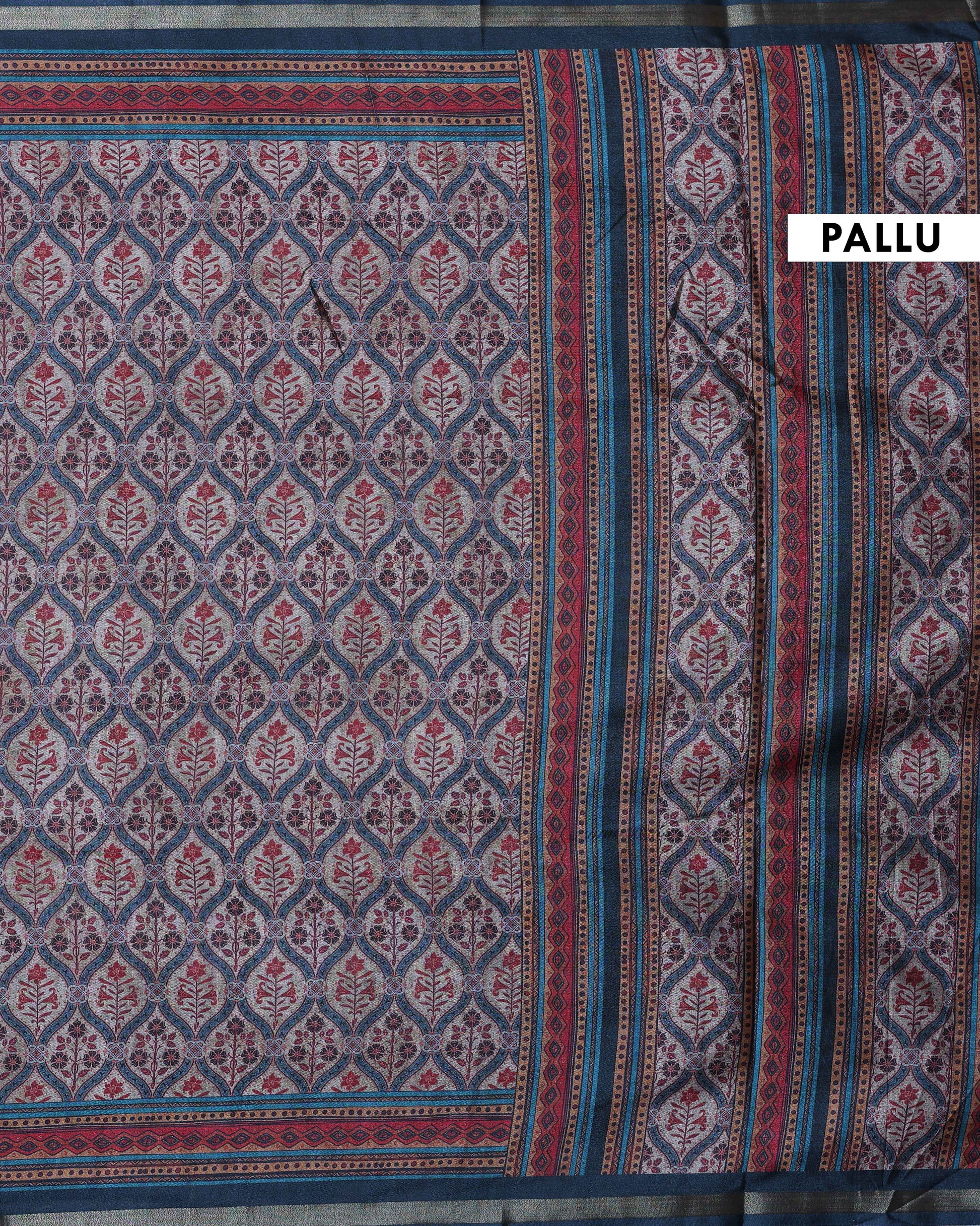 Ethnic Blue Semi Chanderi saree with Multi-color Paisley and Floral Design