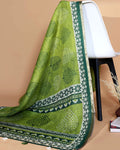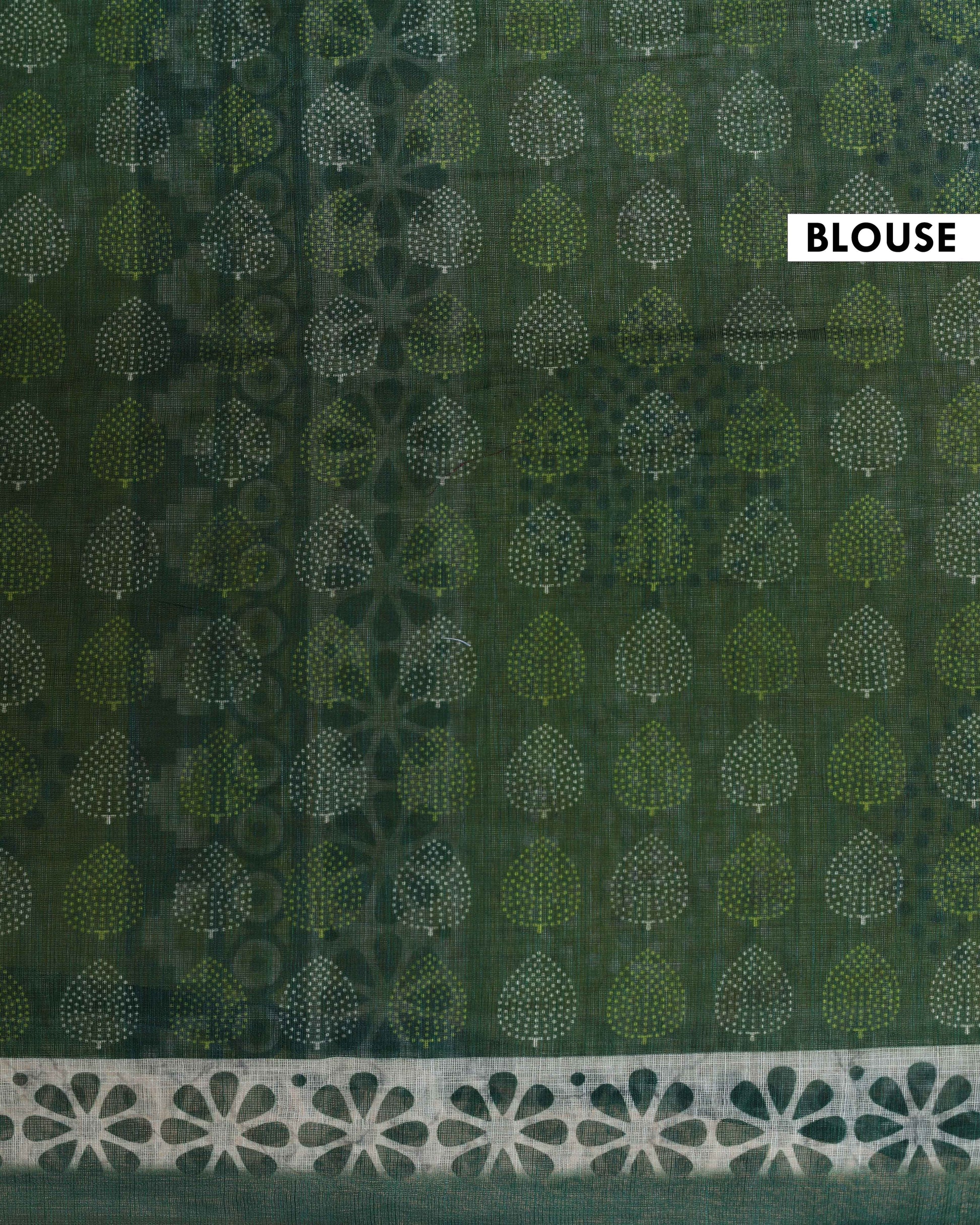 Ethnic Green Linen saree with Multi-color Paisley and Floral Design