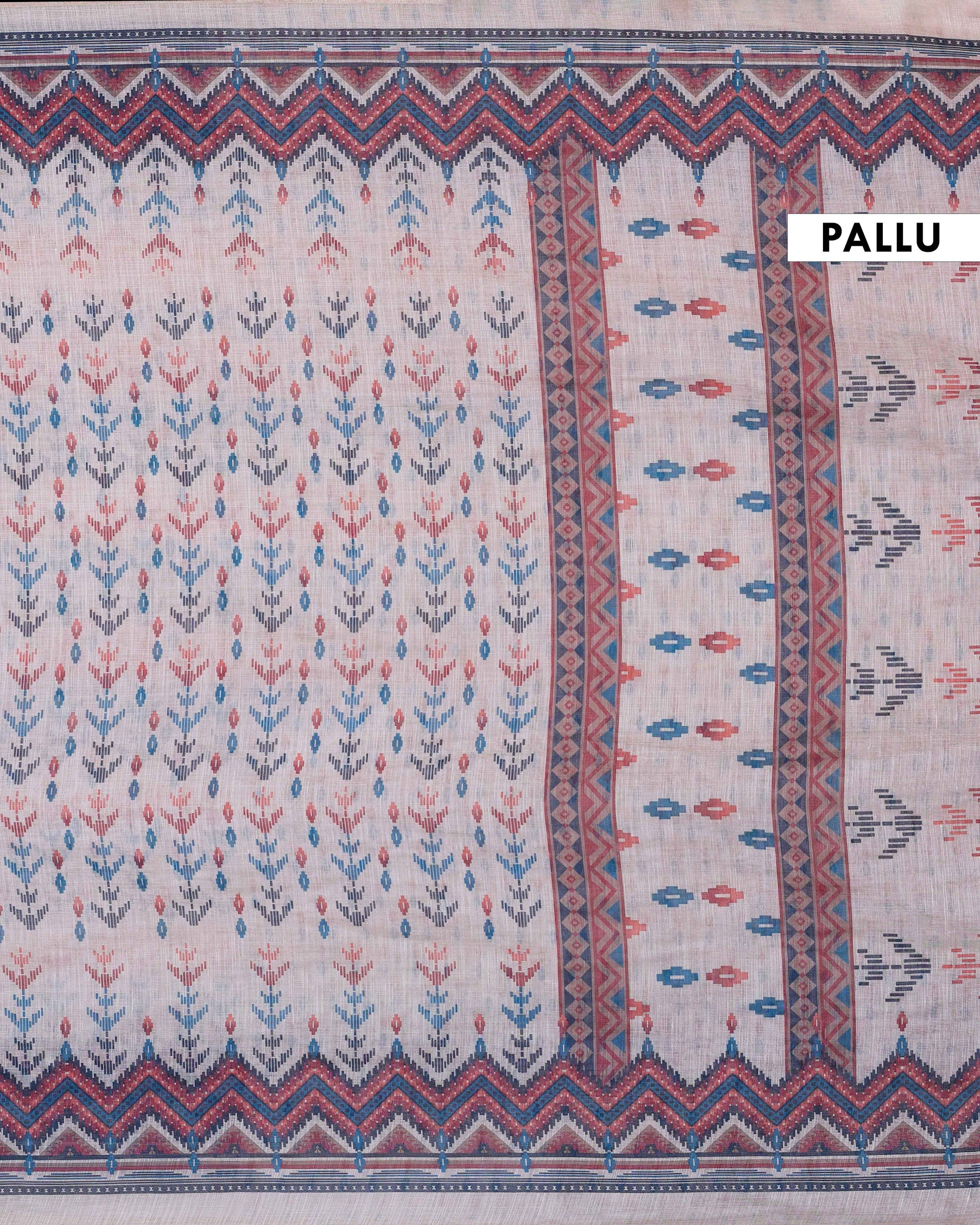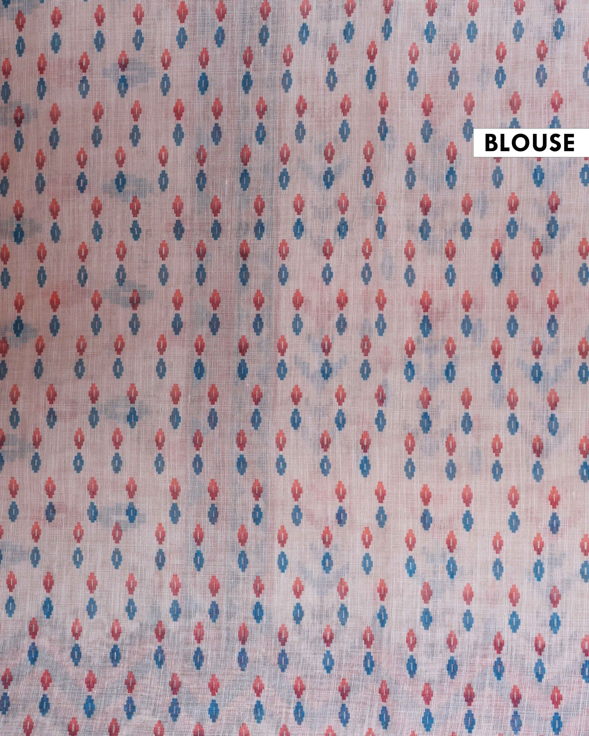 - Embrace a blend of traditional and modern style with this handloom linen cotton saree, a vibrant geometric and tribal print in red and blue