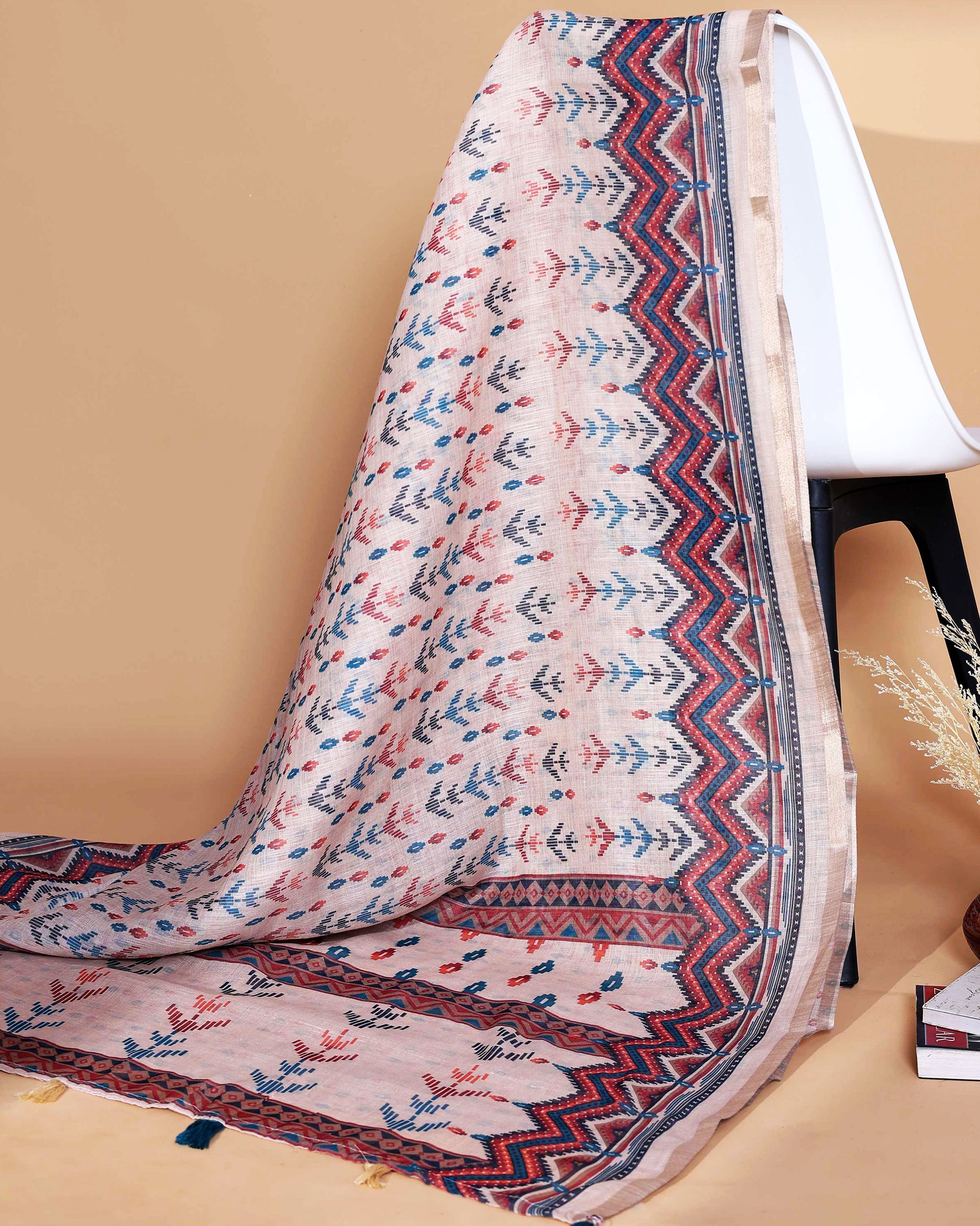 Ethnic Sandal Linen saree with Multi-color Paisley and Floral Design
