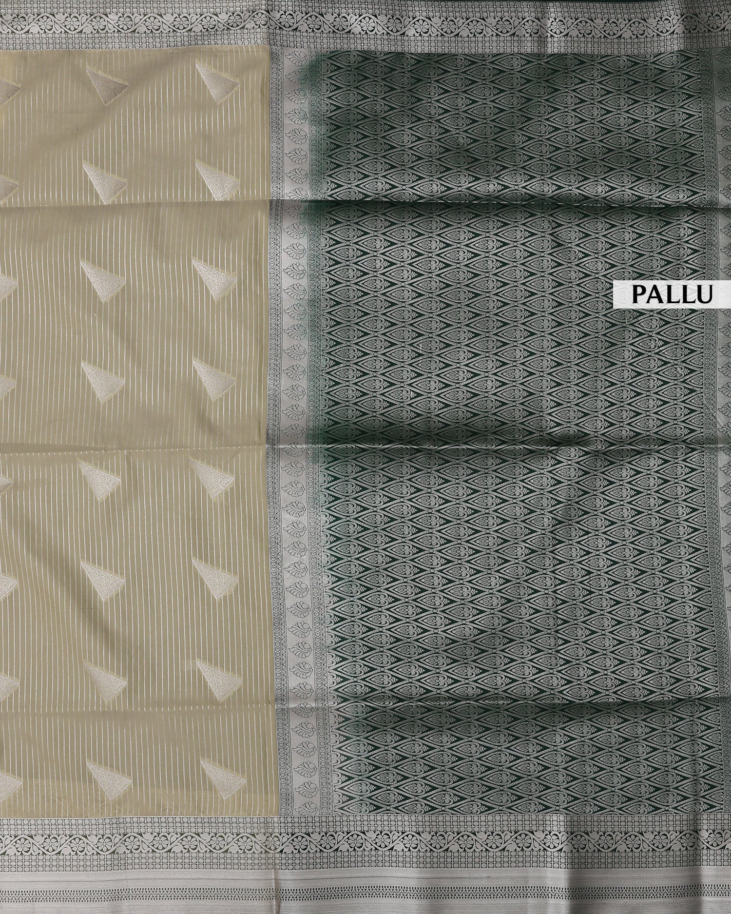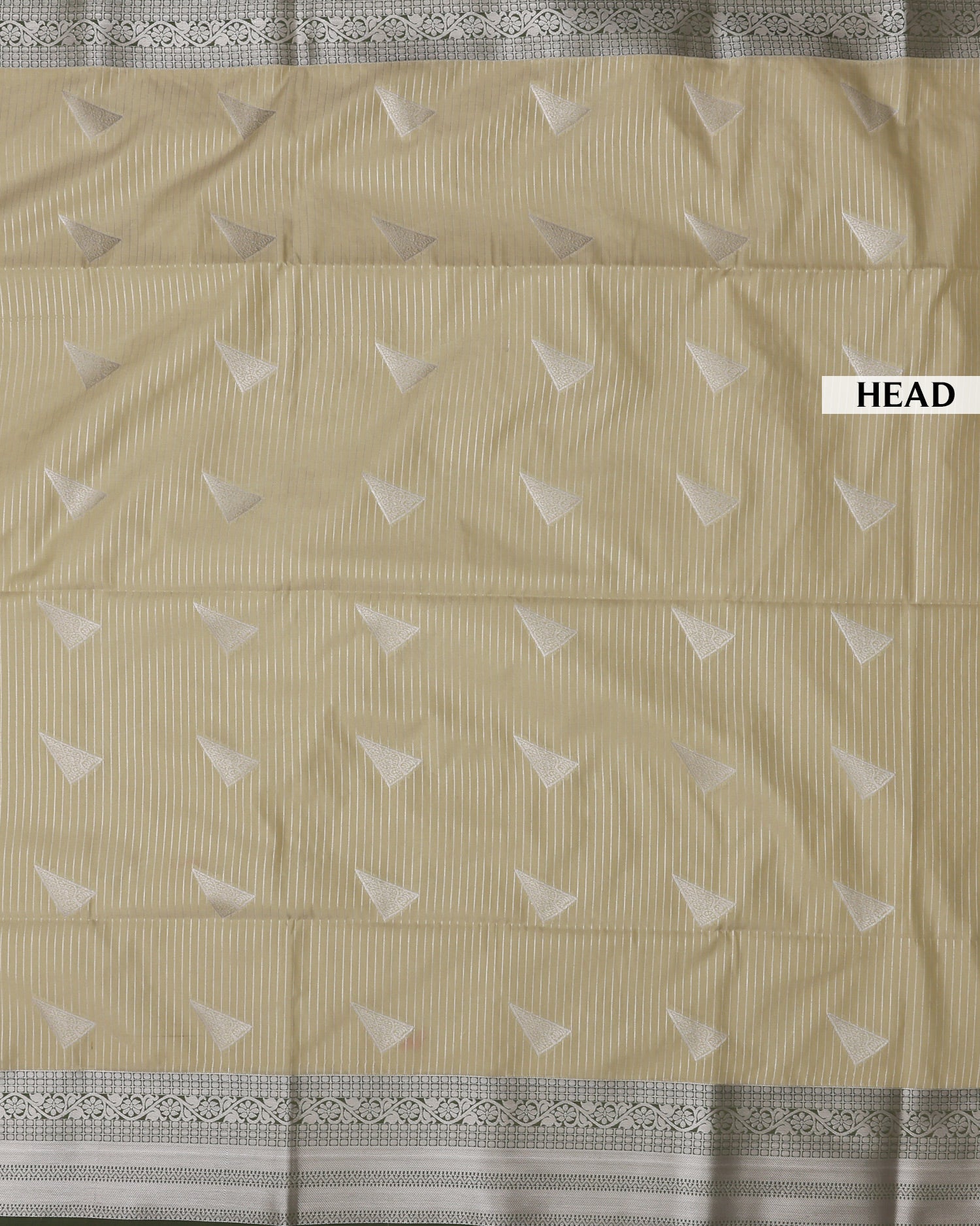 - Drape yourself in the timeless elegance of this soft sage green silk saree, a delicate self-weave geometric pattern.