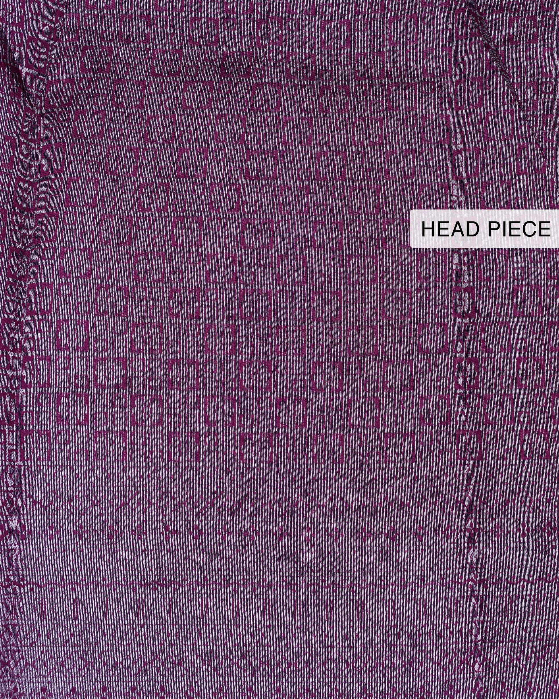 - This beautiful purple litchi silk saree intricate silver zari weaving throughout the body and a detailed patterned border, perfect for a festive or party wear look