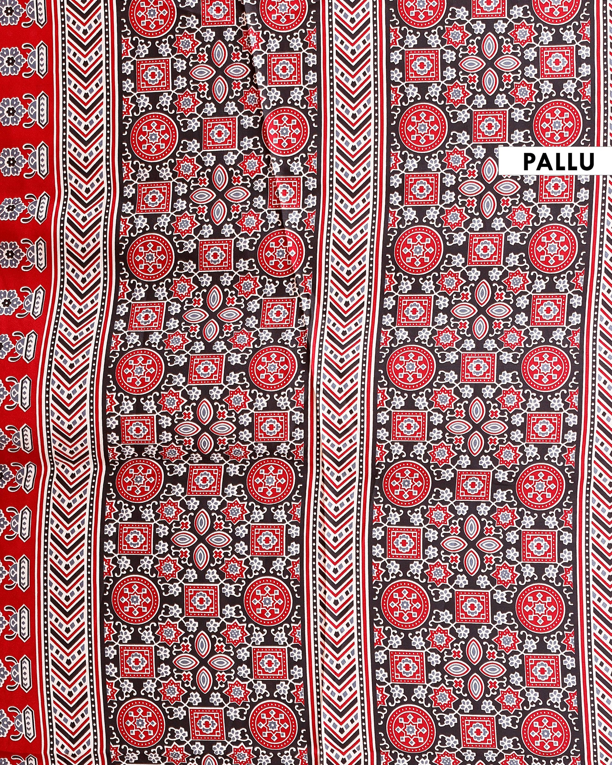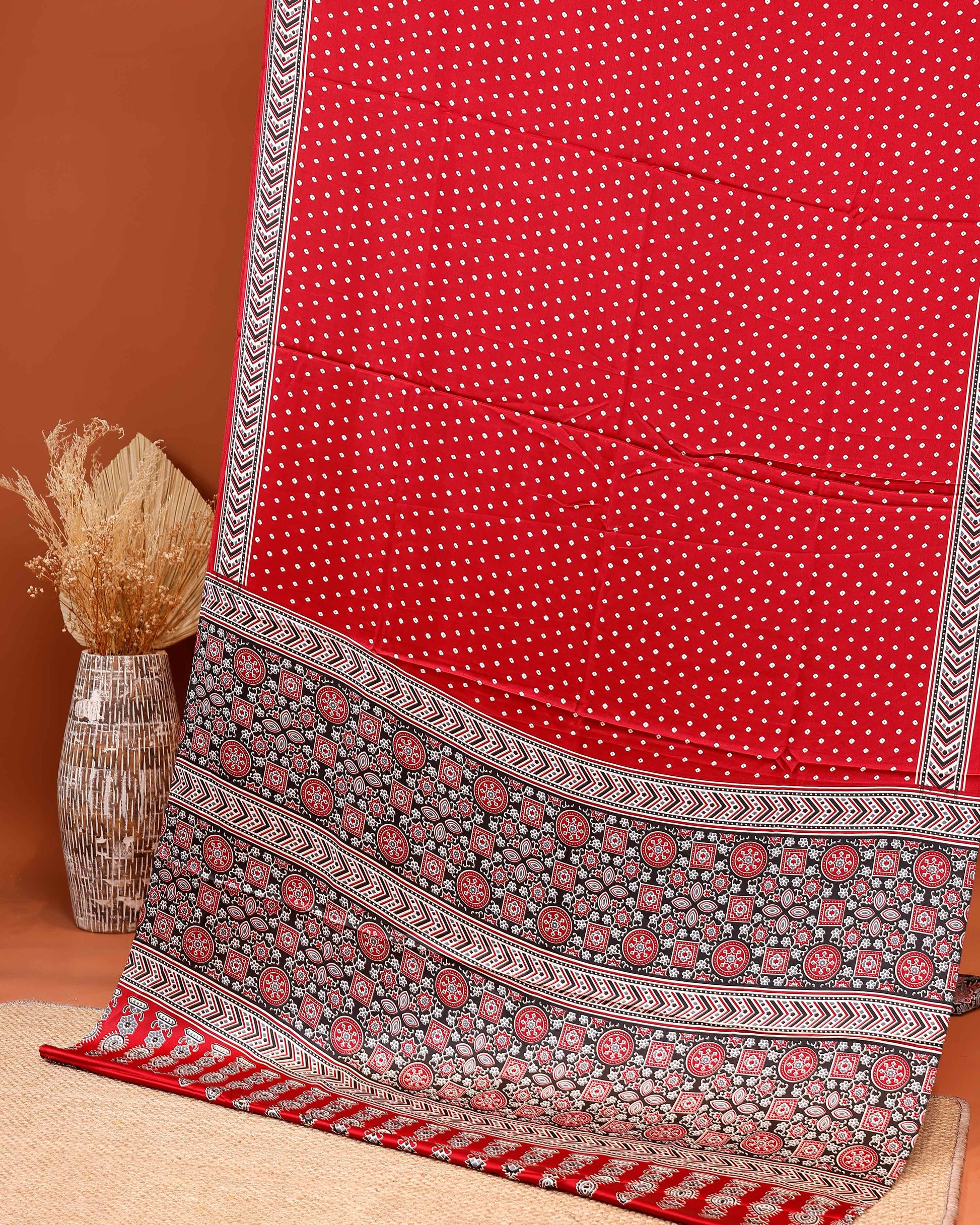 Elegant Modal Satin Saree with Intricate Buti Pattern and Contrasting Border Design - Red
