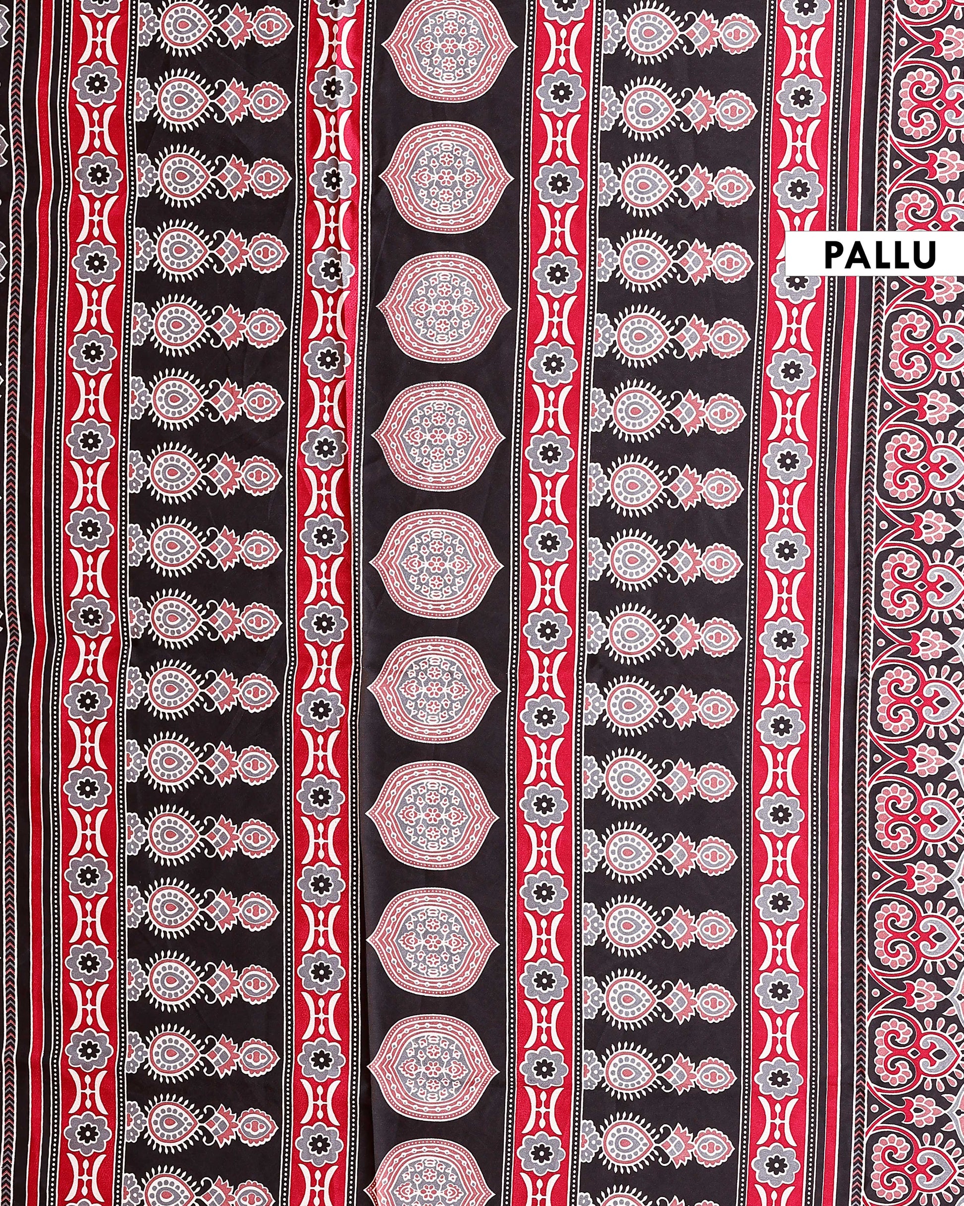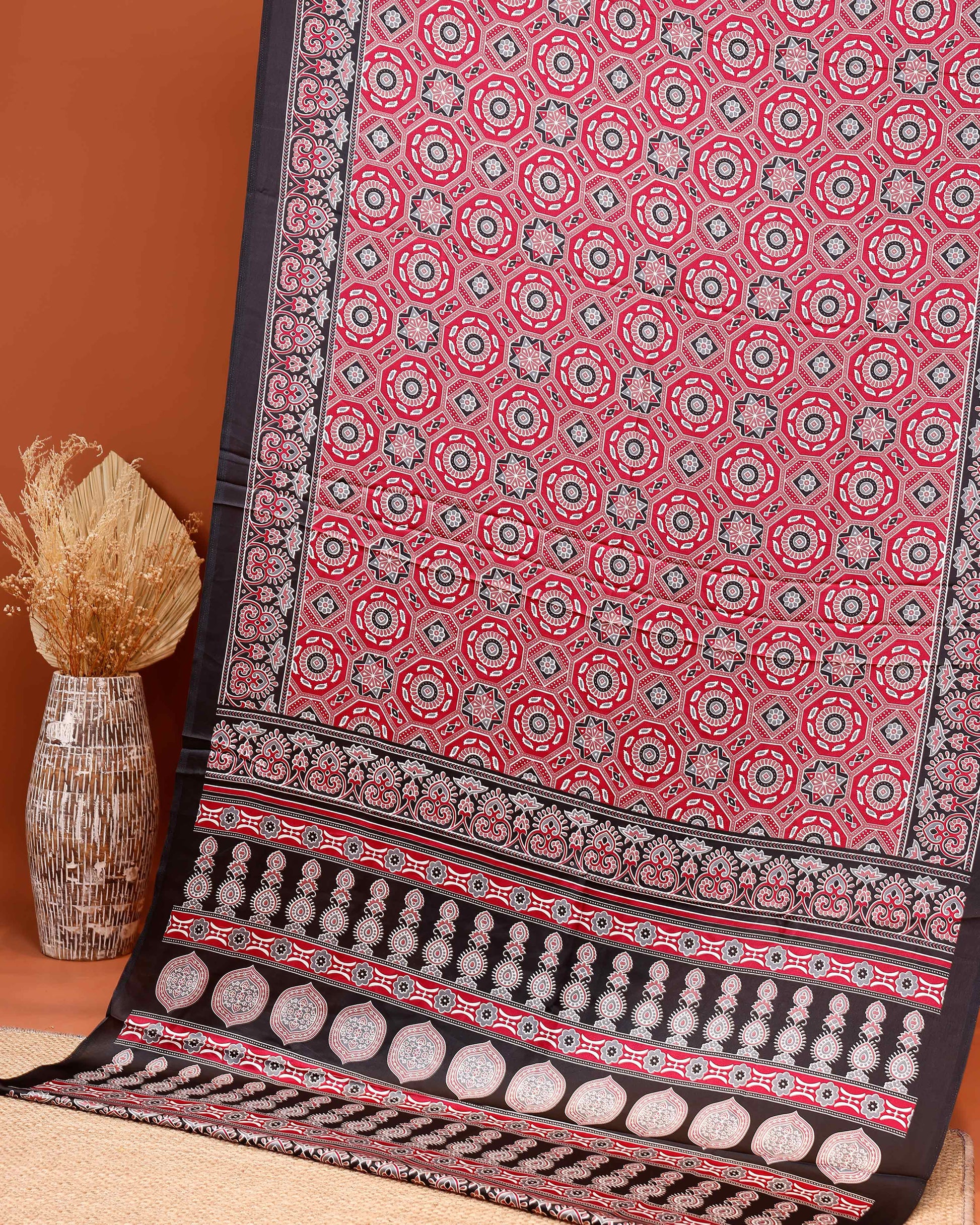 Handcrafted Ajrakh Block Print Modal Satin Saree with Traditional Motifs - Red